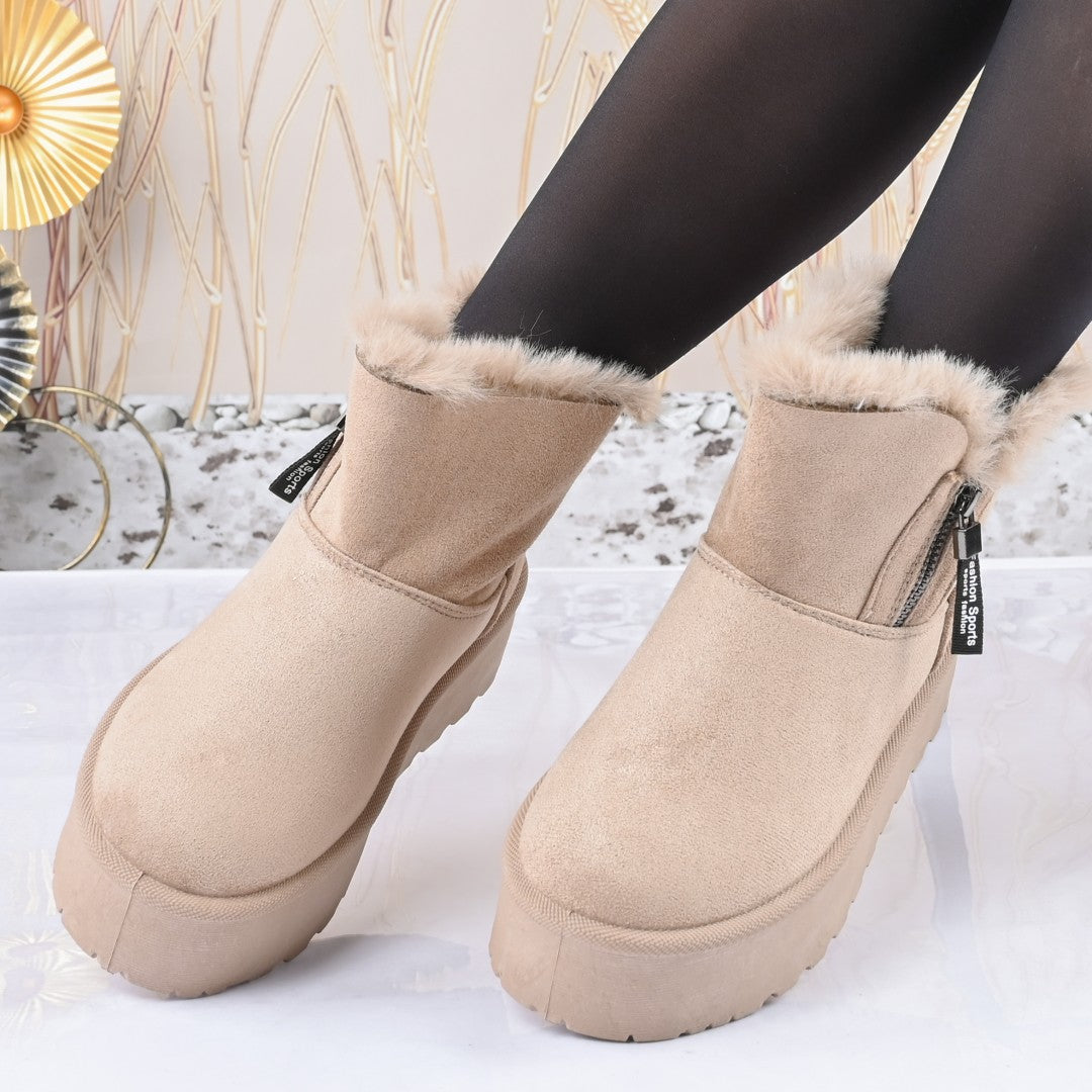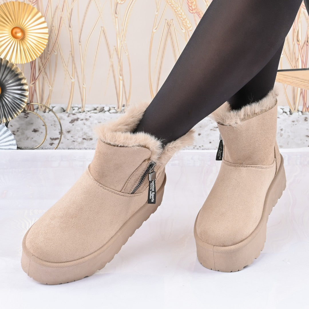 Cizme de dama,tip Ugg,Din piele ecologica intoarsa,imblanite,CD1038,Kaki