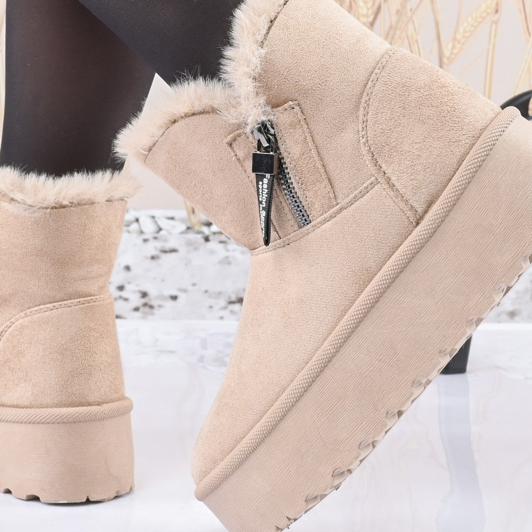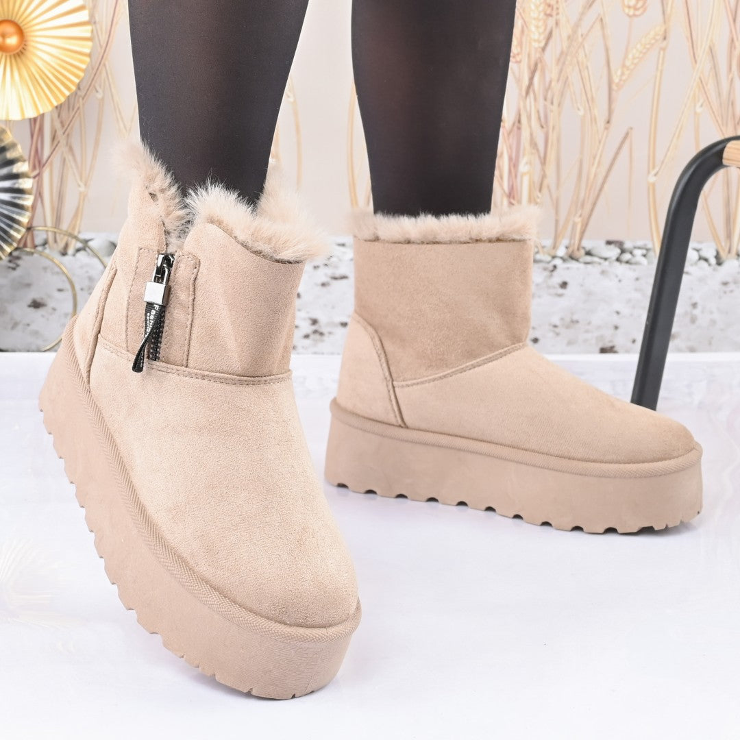 Cizmele de damă tip Ugg din piele întoarsă, de culoare kaki, sunt imblănite și perfecte pentru sezonul toamnă-iarna. Cu talpă...