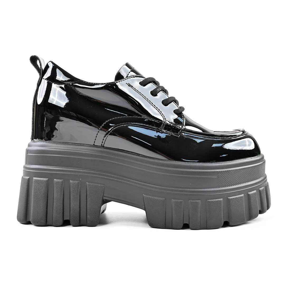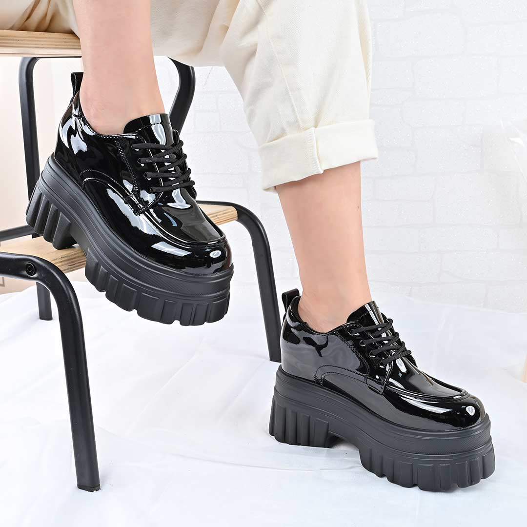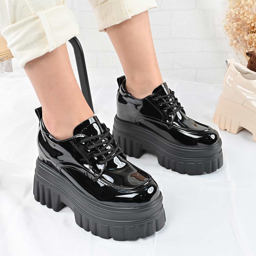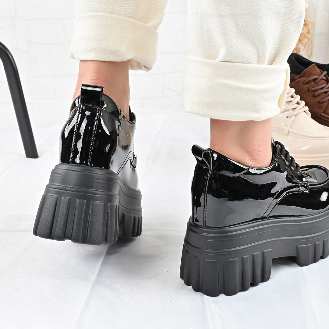 Pantofi casual de dama,Cu platforma,Din piele ecologica,P1301,Negru