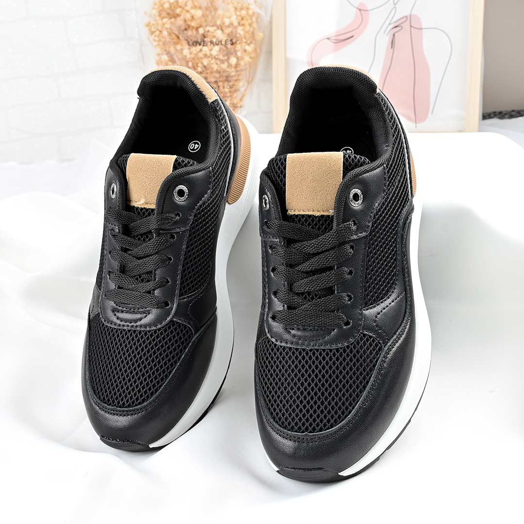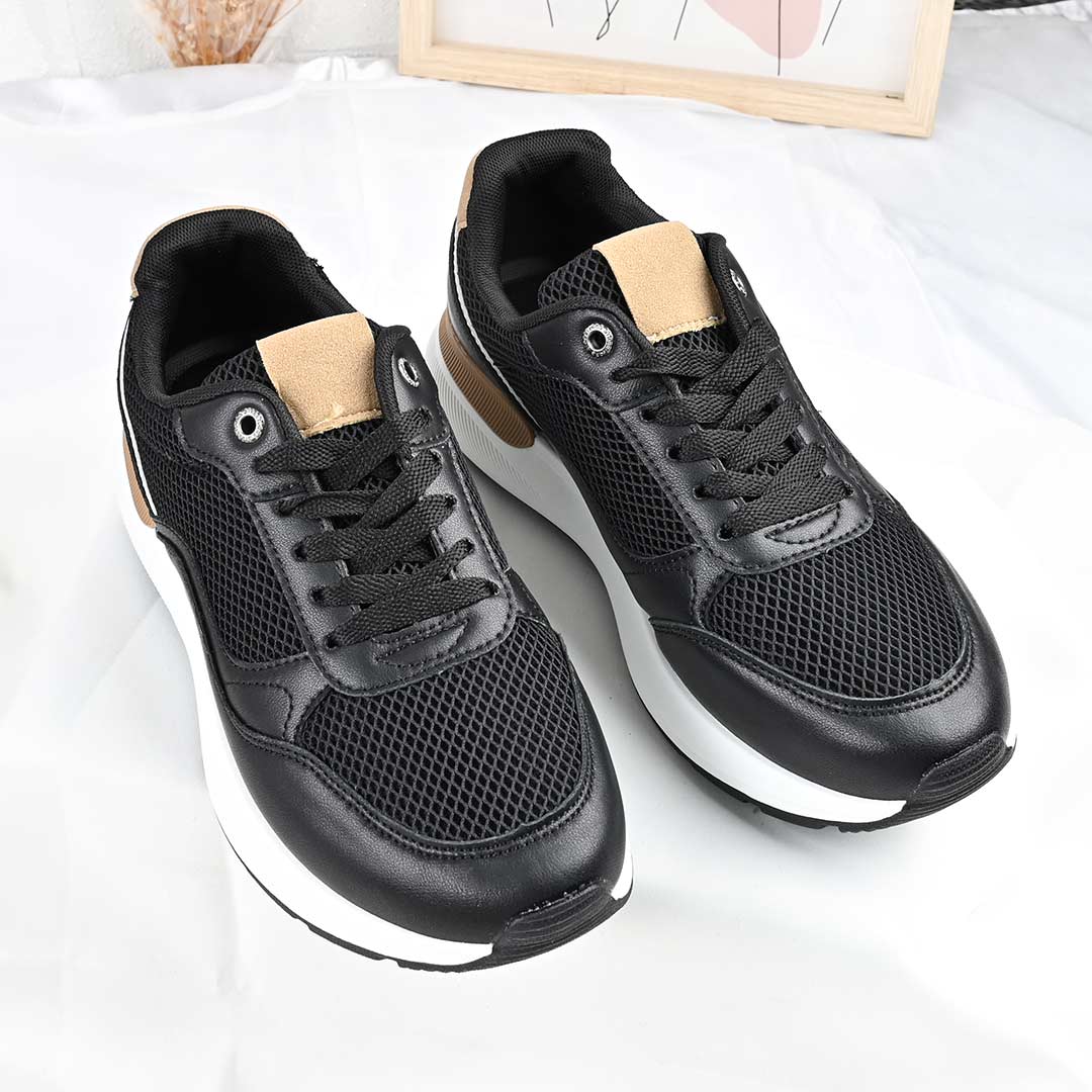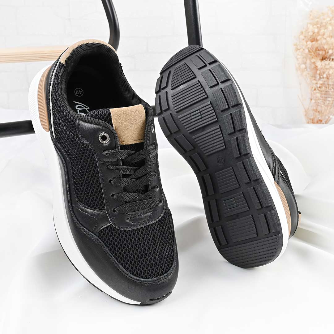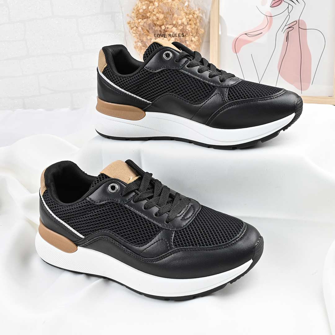 Pantofi sport bărbați negri, model B4054, din piele ecologică cu inserții din plasă. Interior textil, talpă TPU, șireturi. Confortabili și...