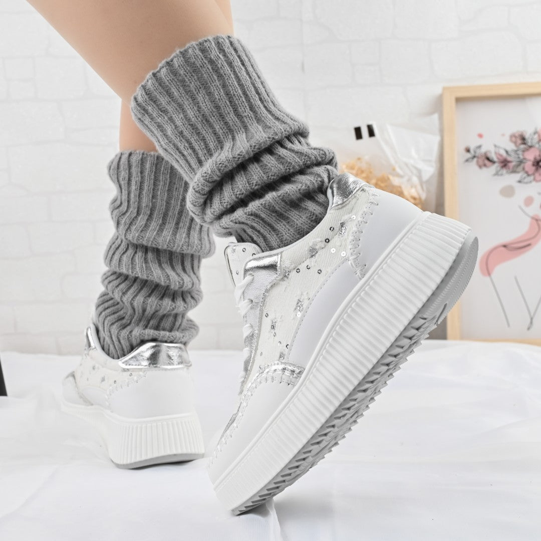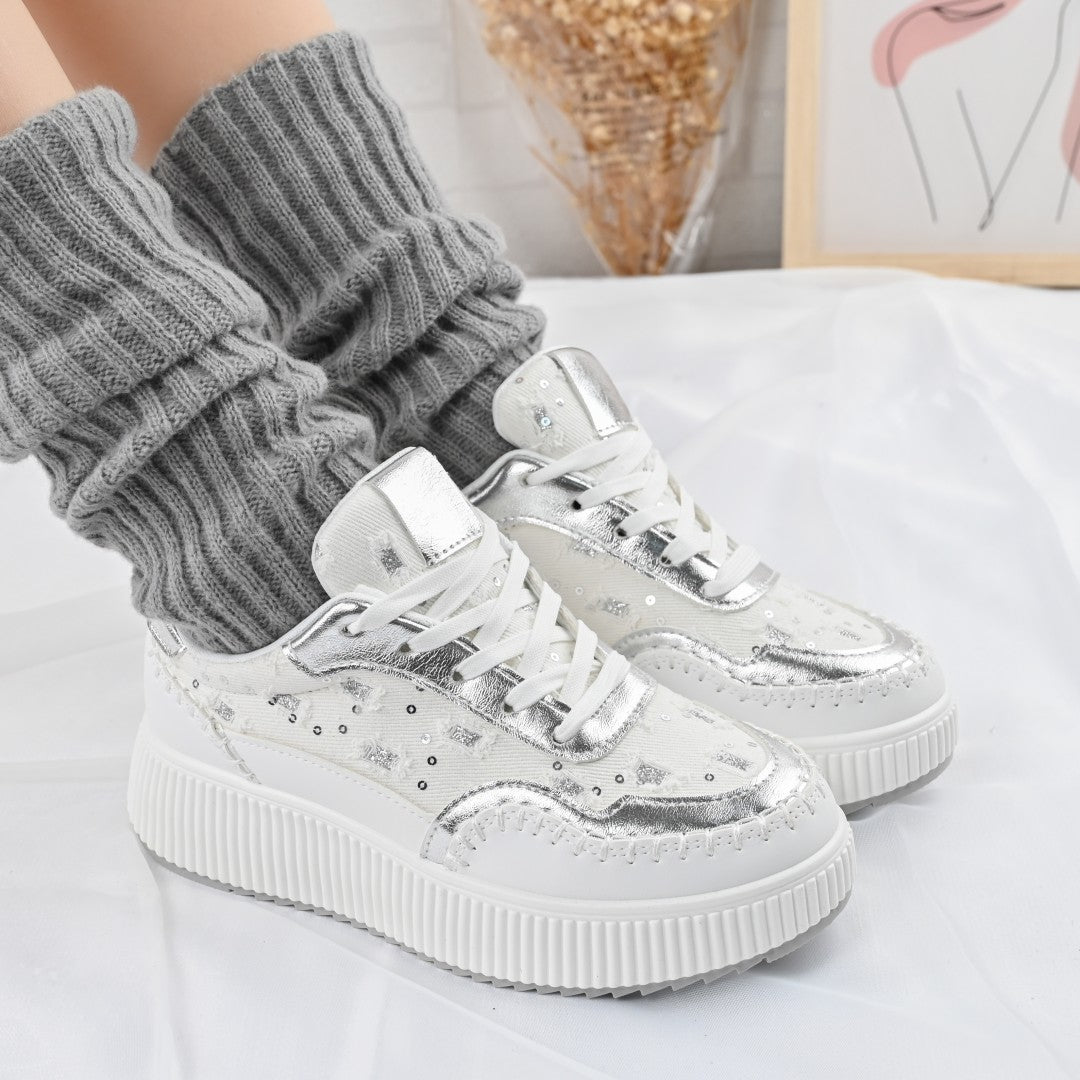 Дамски спортни обувки, С дънкови апликации, D1327, Бели