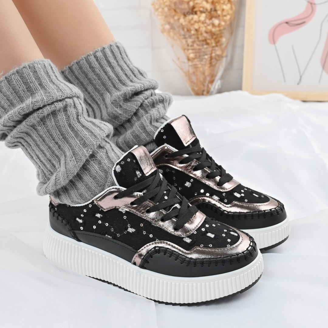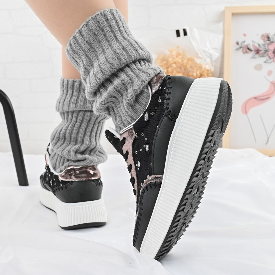 Дамски спортни обувки, С дънкови апликации, D1327, Черни