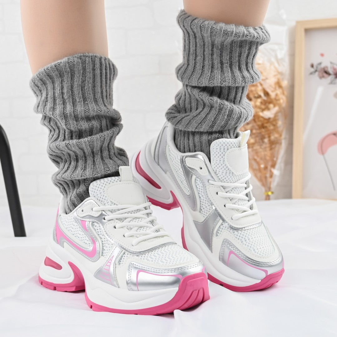 Открийте комфорт и стил с дамските маратонки D1407, в нюанси на розово и бяло. Конструкцията от еко кожа и текстил...