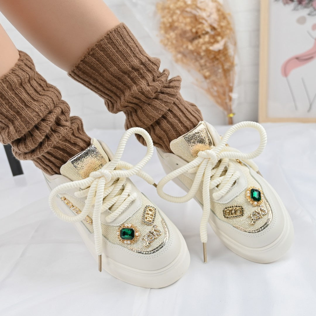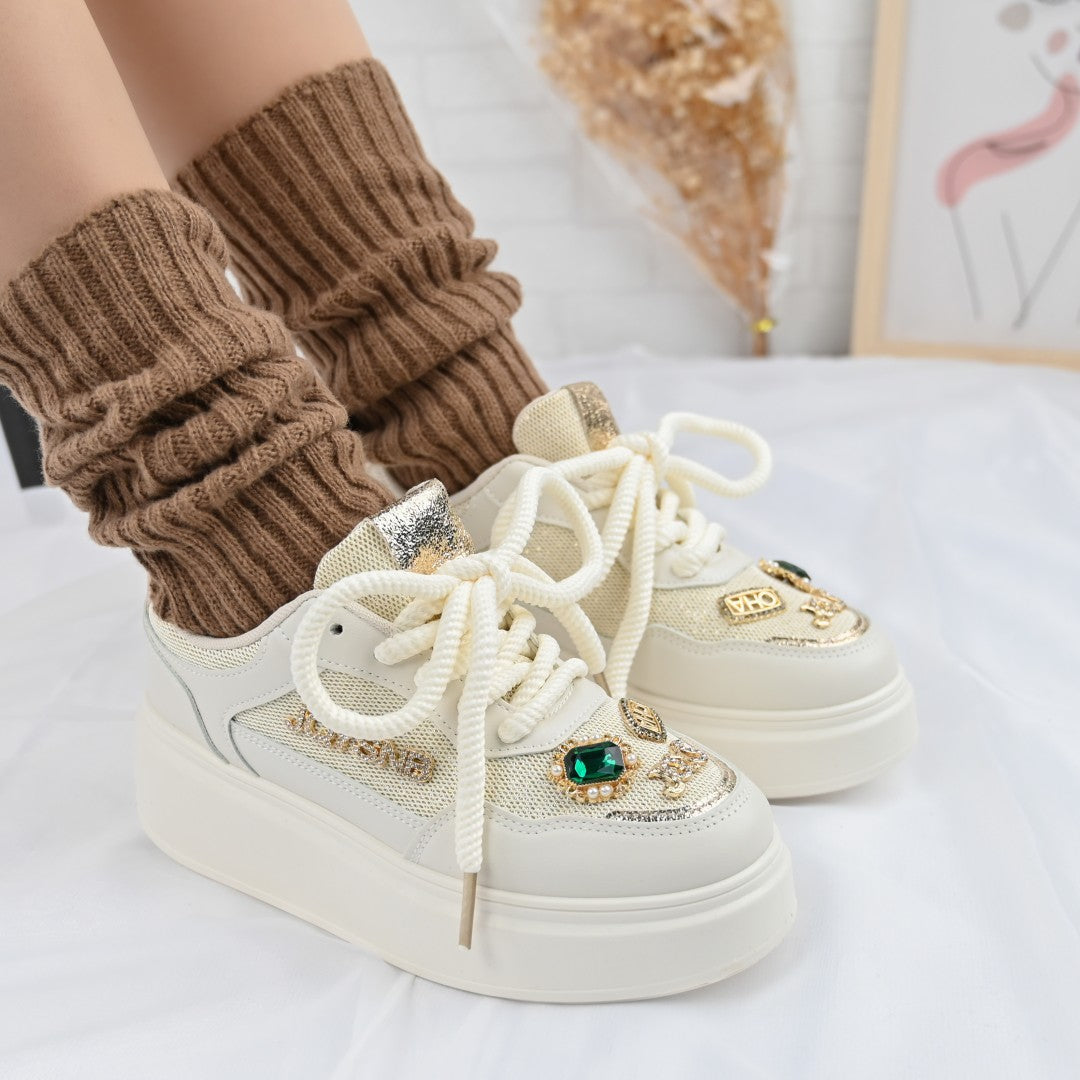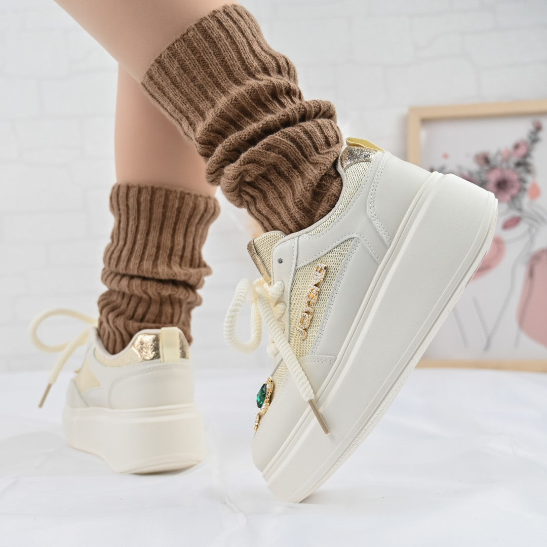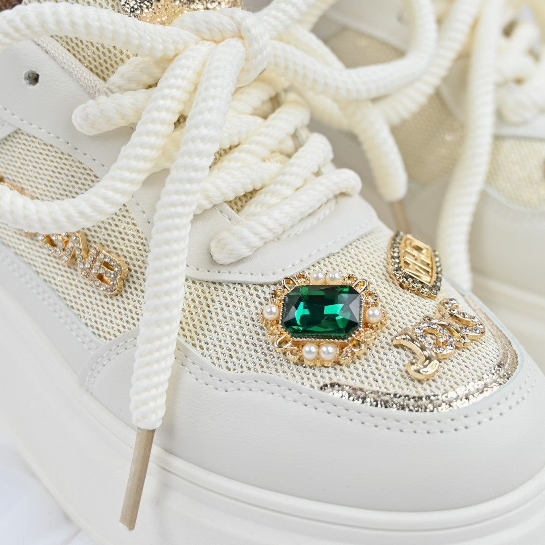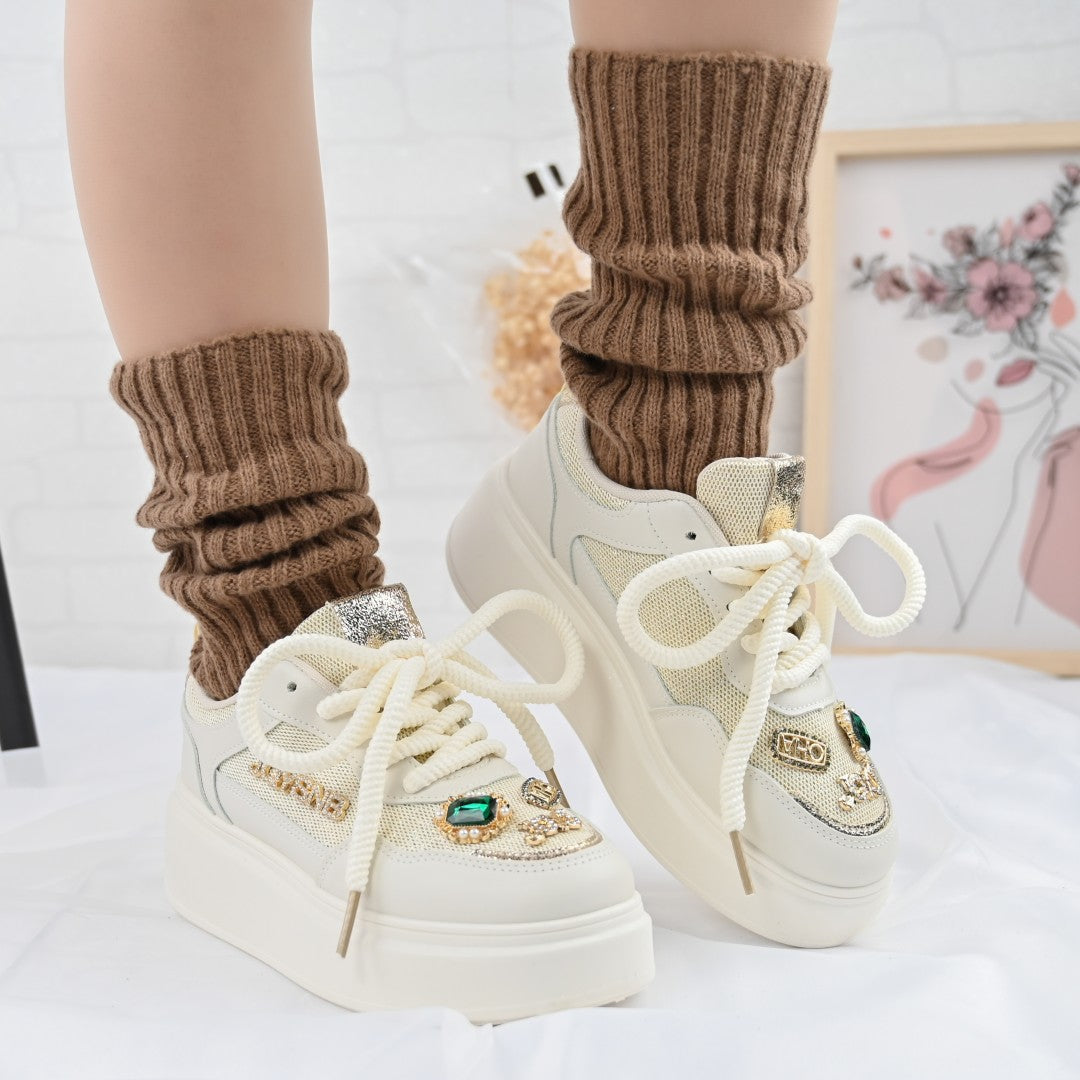 Дамски спортни обувки, с мрежести вложки, с камъни, D1375, Бежов