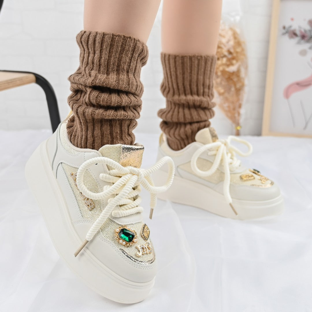 Открийте комфорт и стил с дамските маратонки D1375, в елегантен бежов цвят. С мрежести вложки и лъскави камъчета, тези обувки...