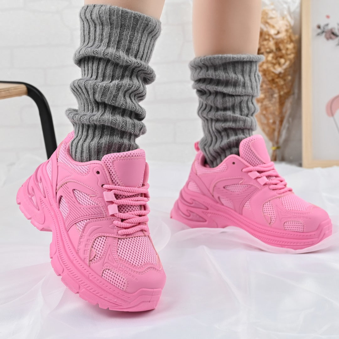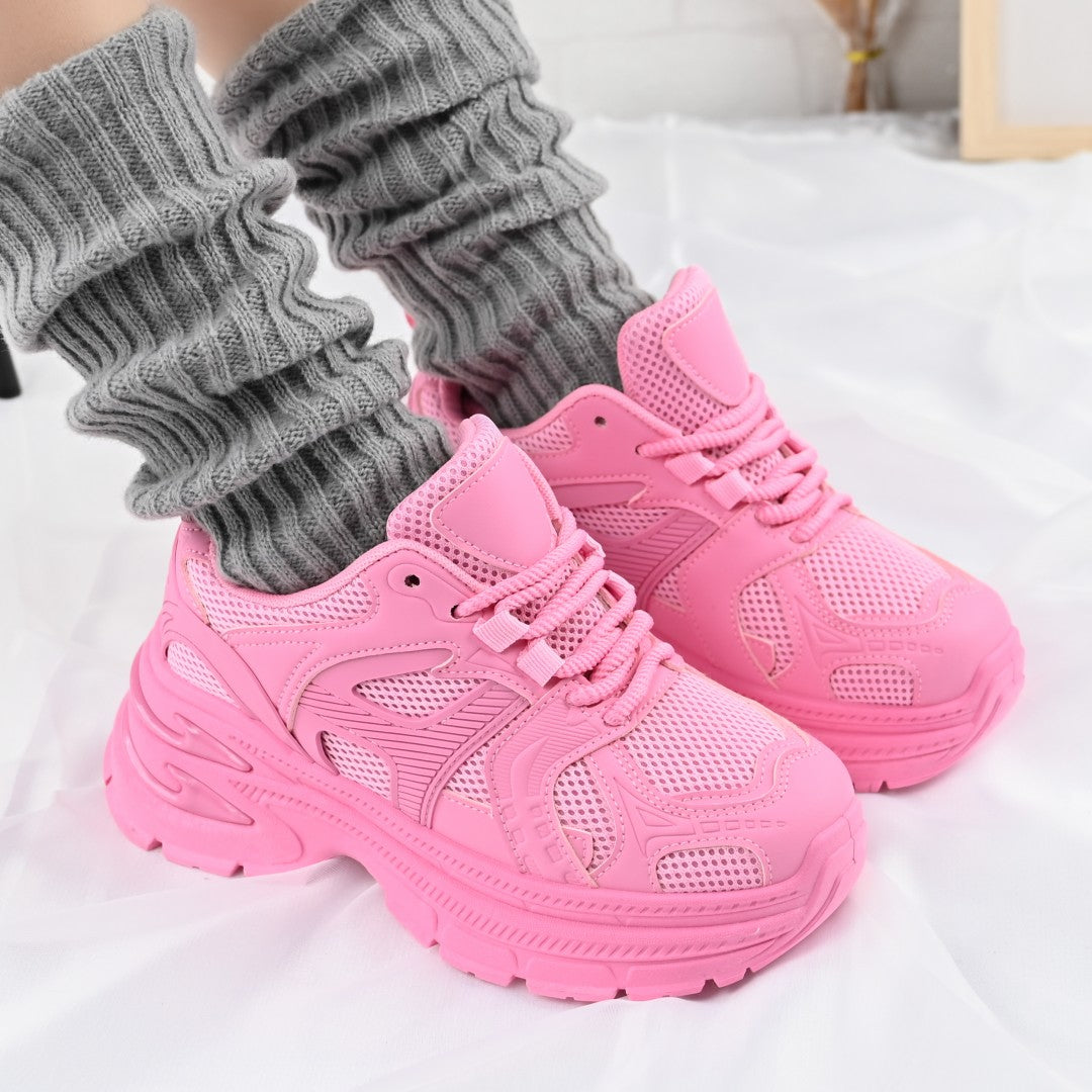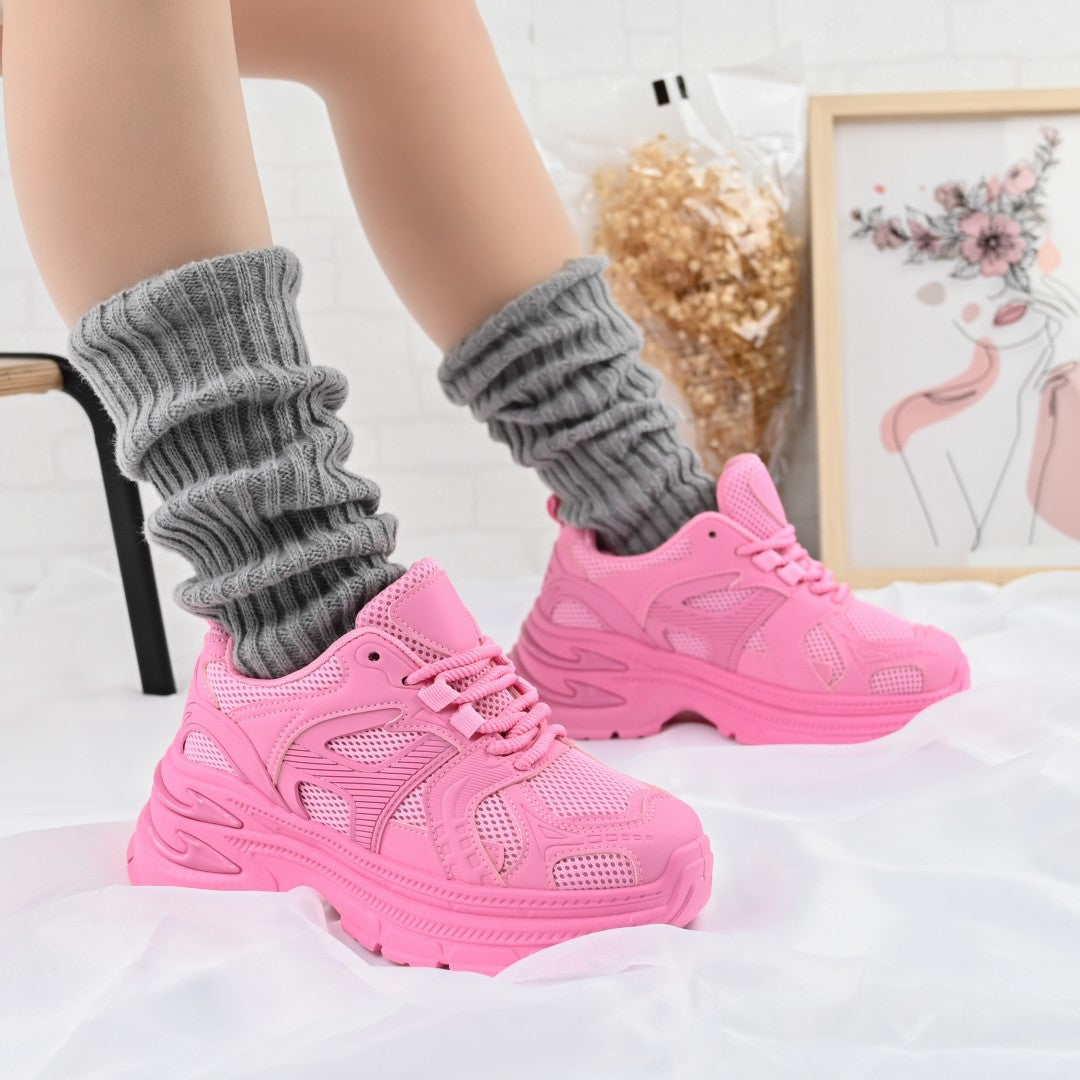 Дамски спортни обувки, с мрежести вложки, D1387, цвят фуксия
