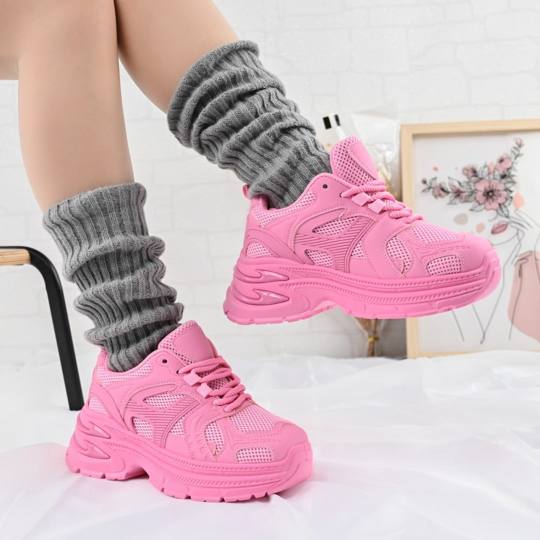 Дамските маратонки D1387 в цвят фуксия, с мрежести вложки, предлагат комфорт и стил. Изработени от еко кожа и текстил, те...