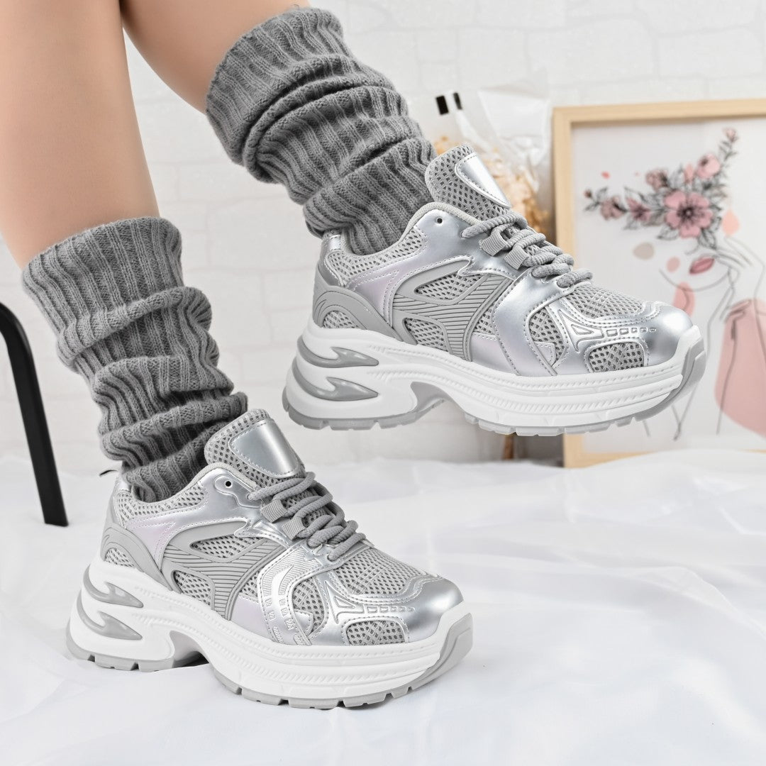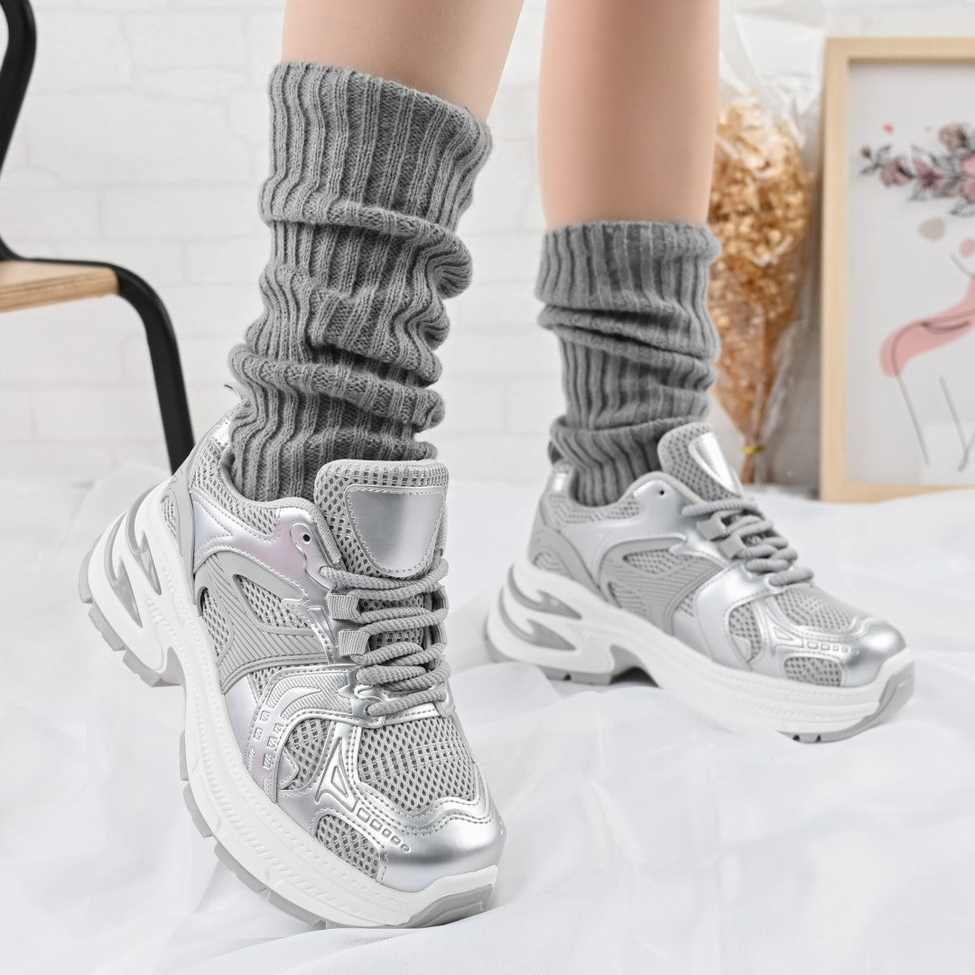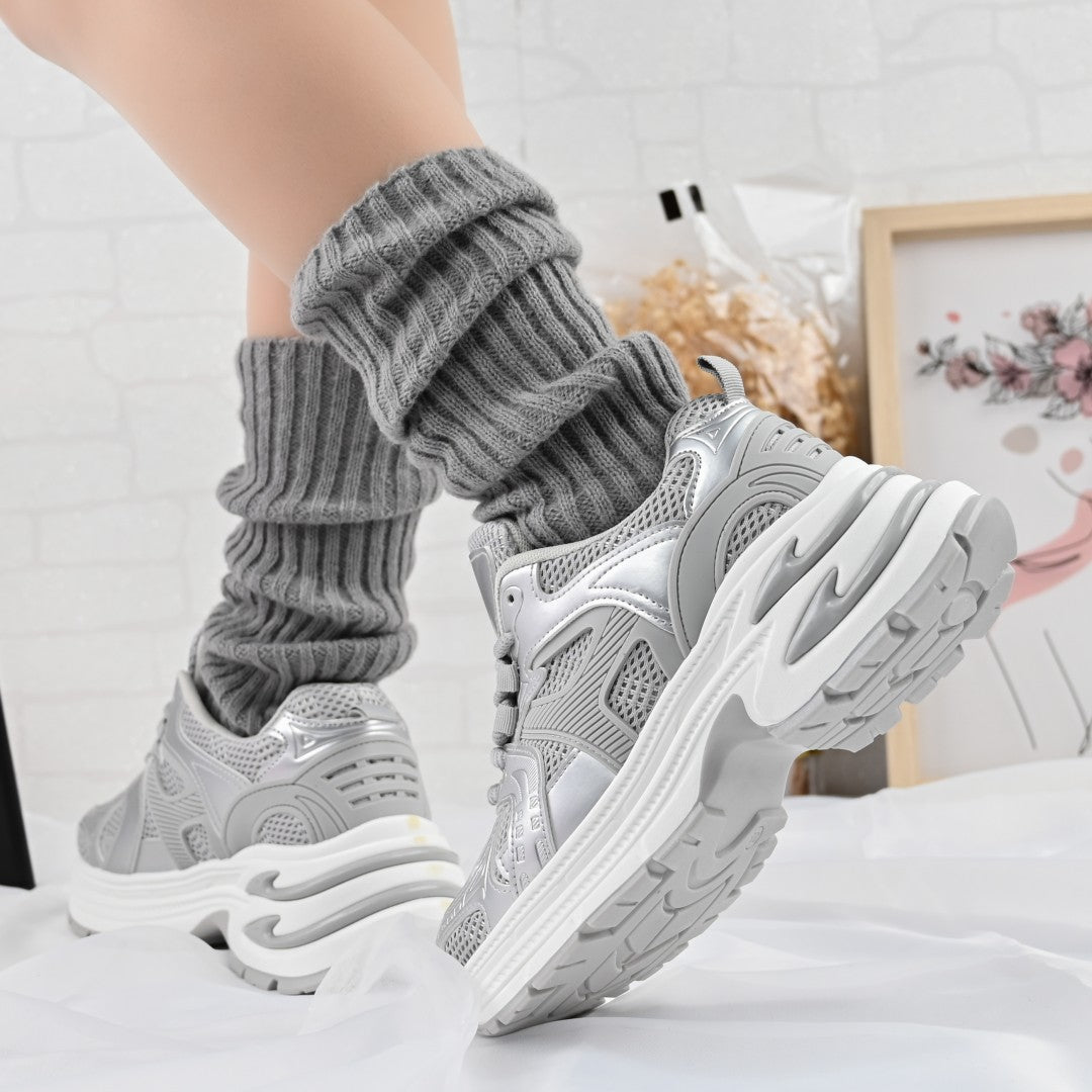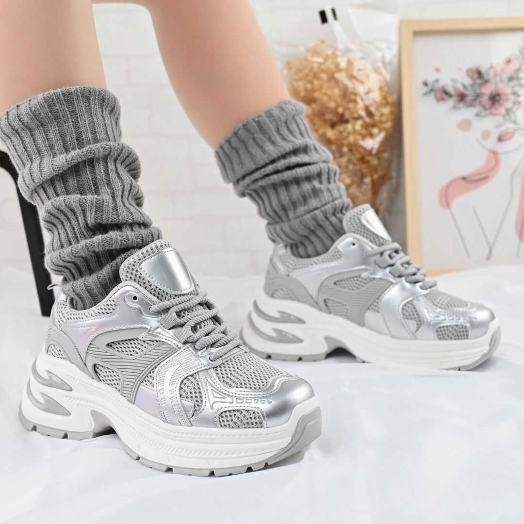 Дамски спортни обувки, с мрежести вложки, D1387, Сив