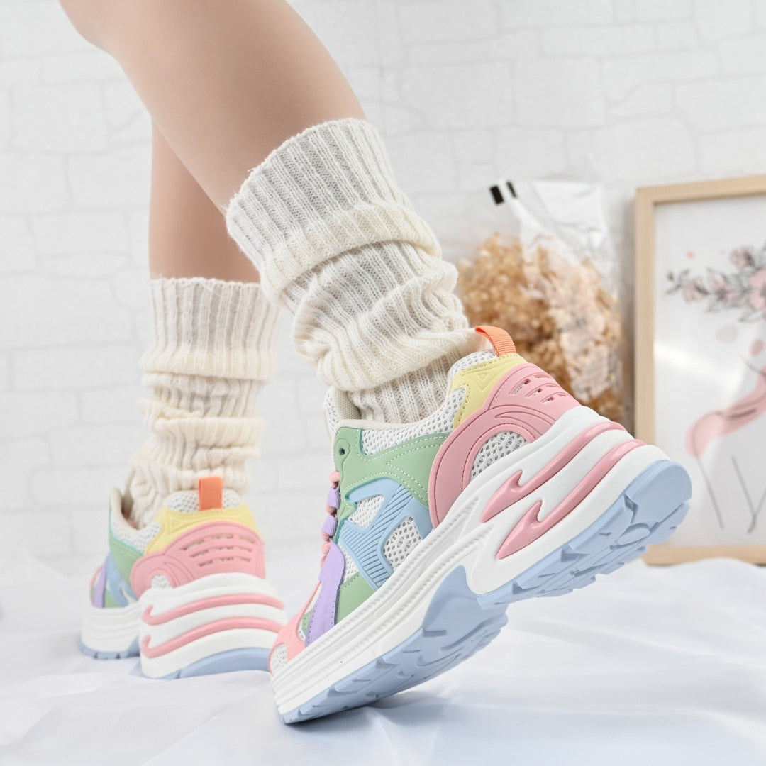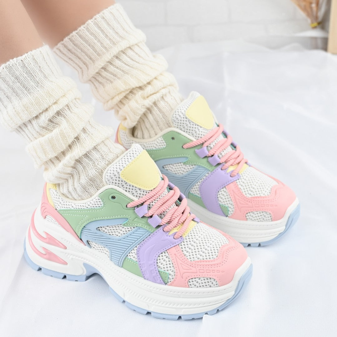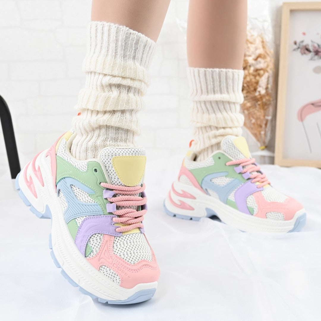 Дамски спортни обувки, с мрежести вложки, D1387, Многоцветни