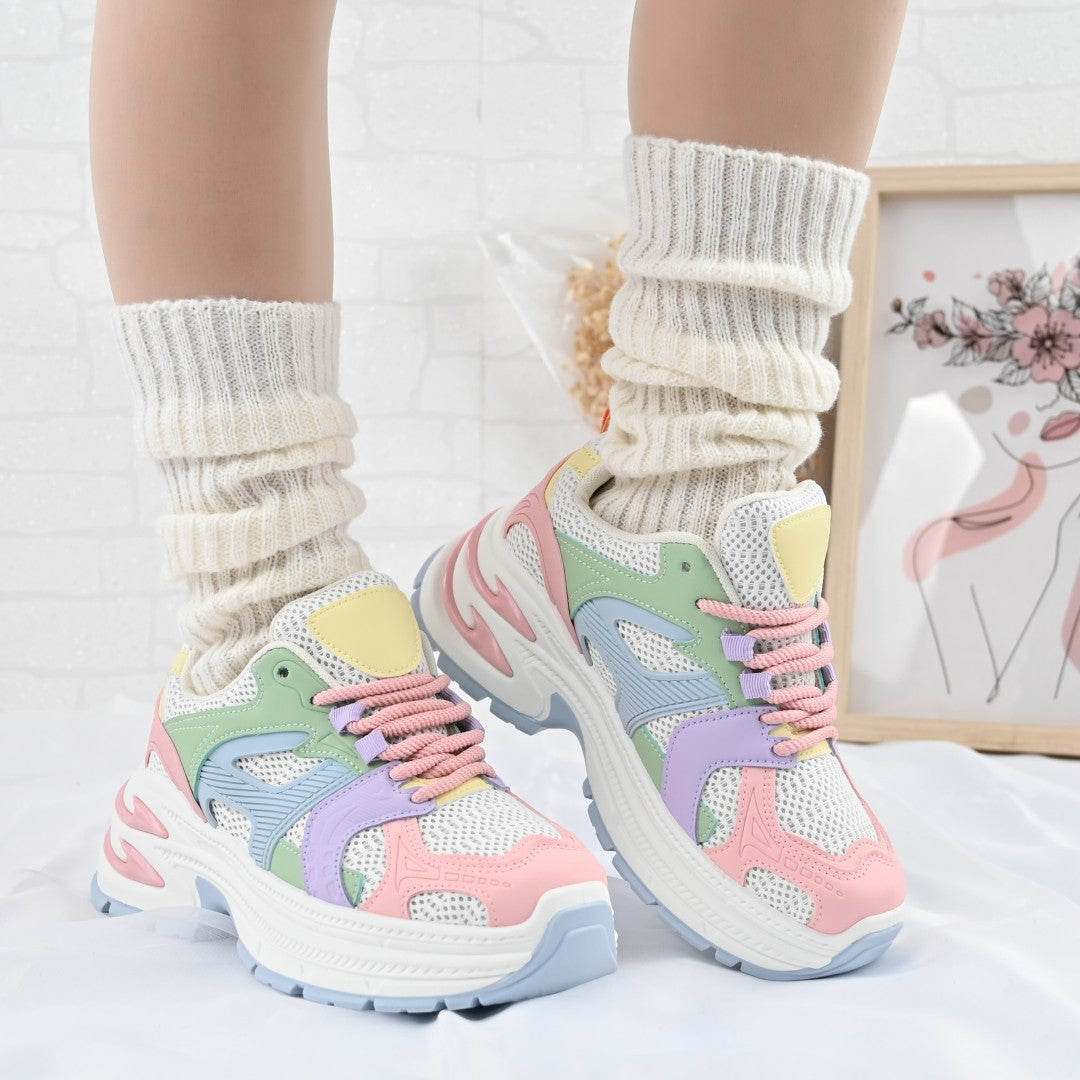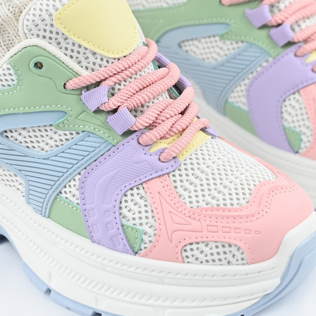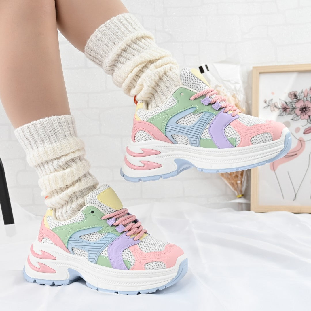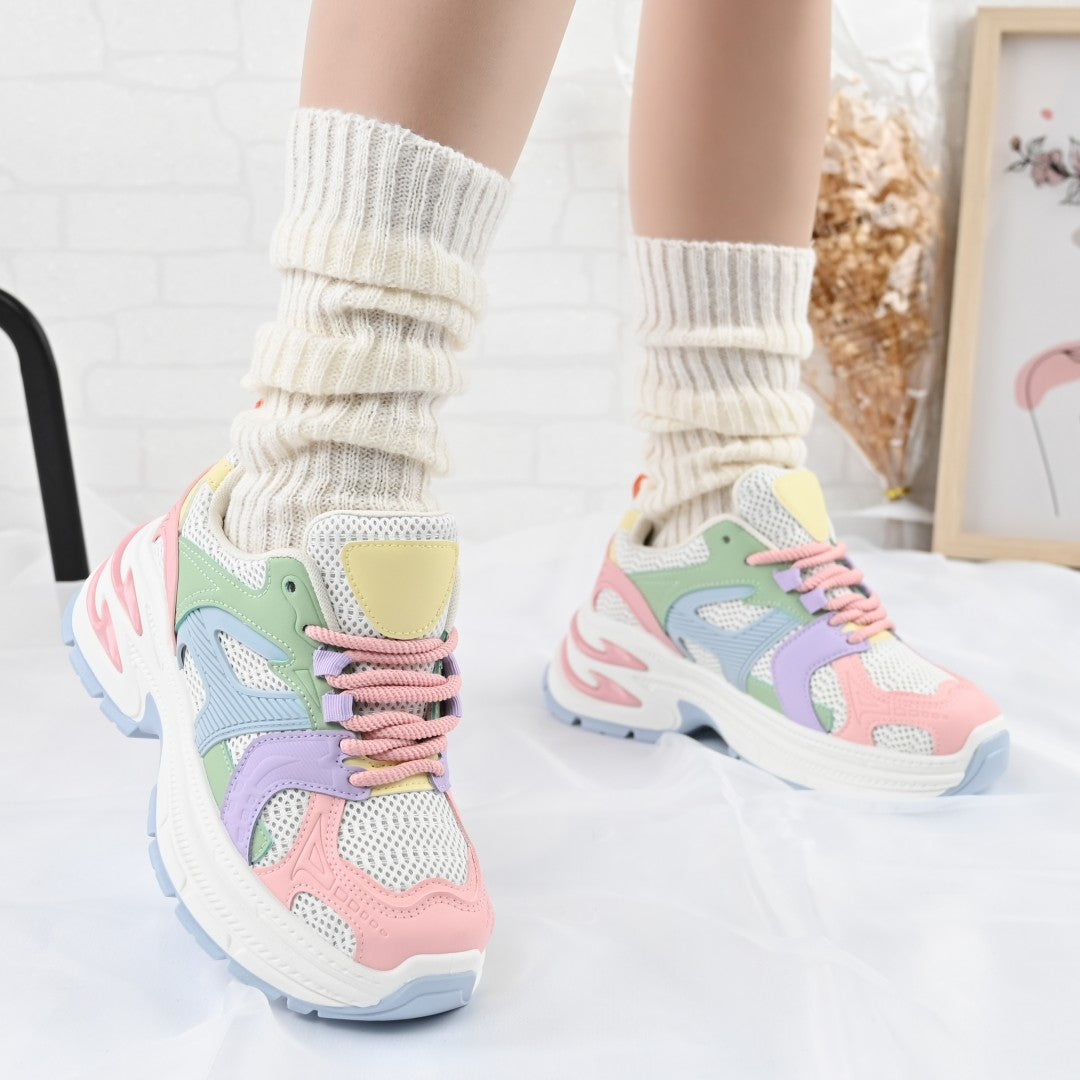 Открийте дамските маратонки D1387 с мрежести вложки, съчетаващи елегантността на многоцветния стил с комфорта на екокожата. Идеален за пролет, лято...