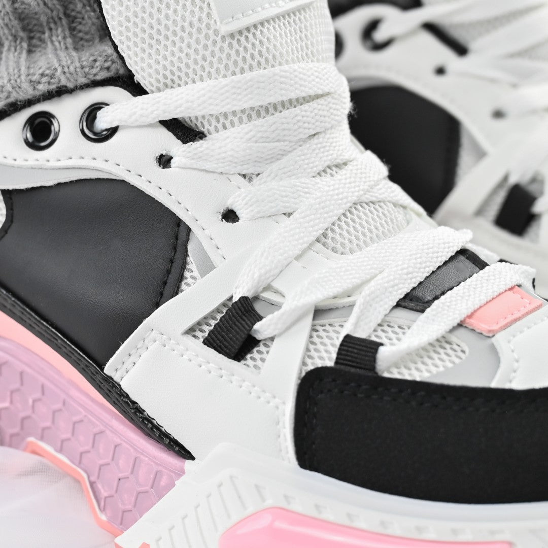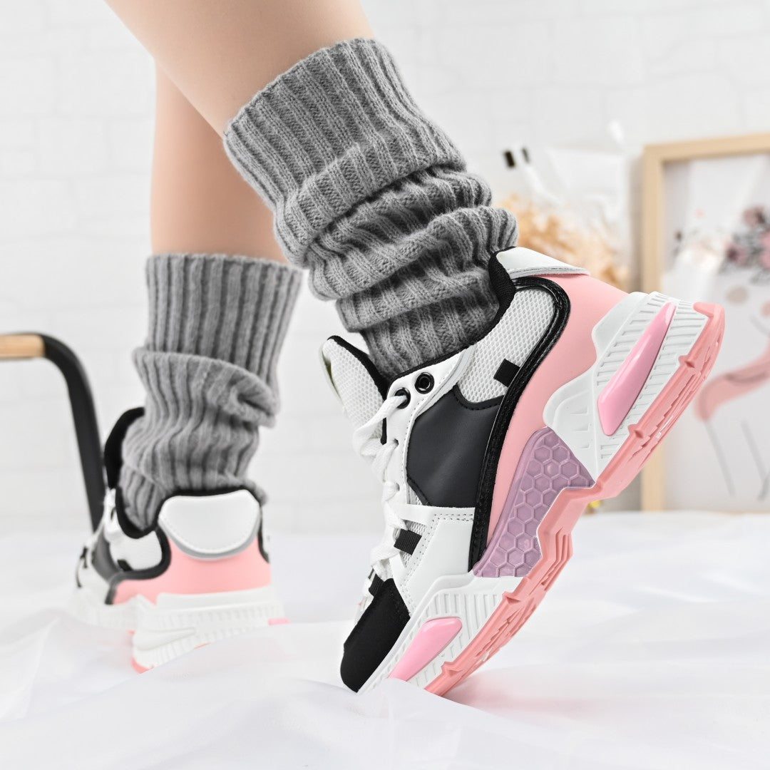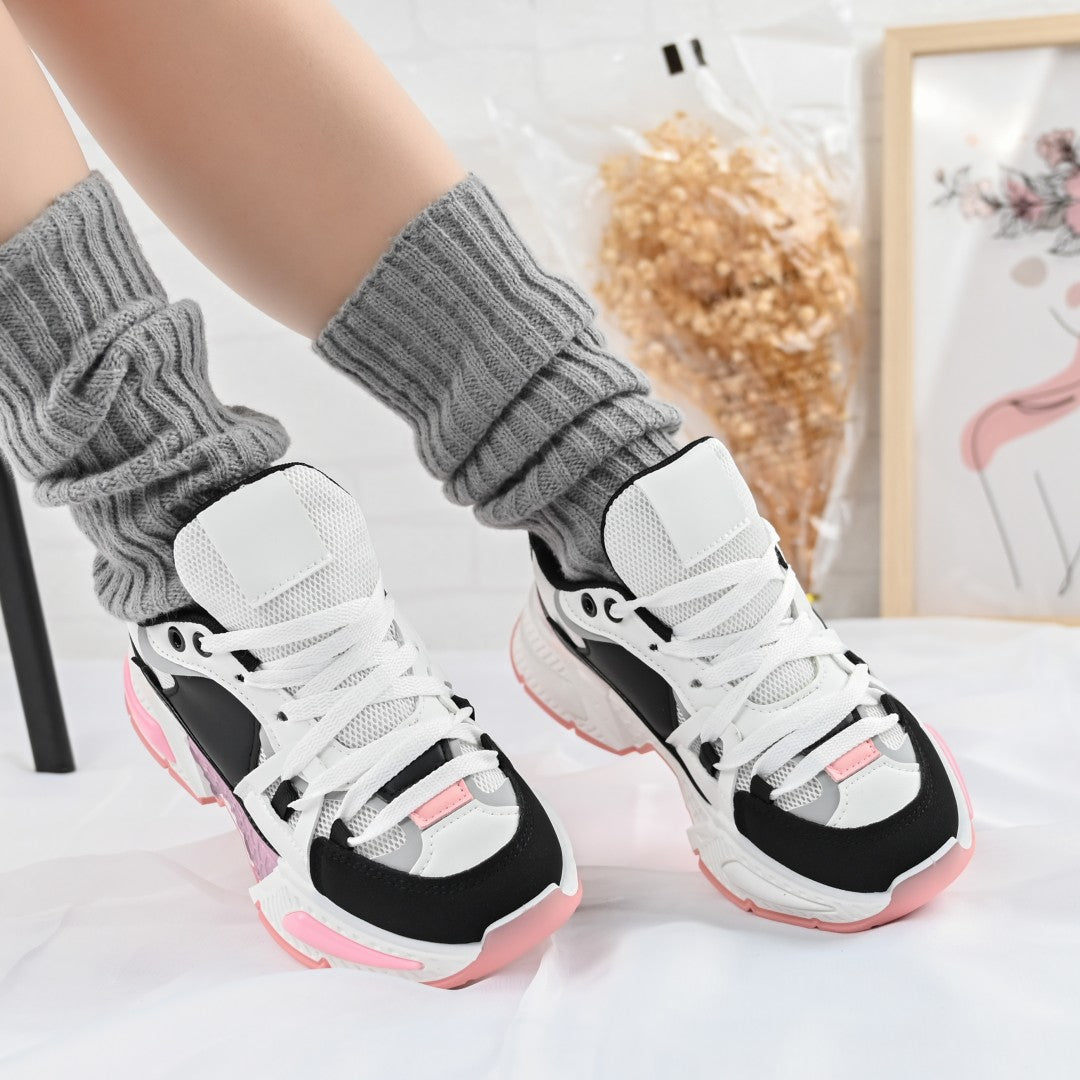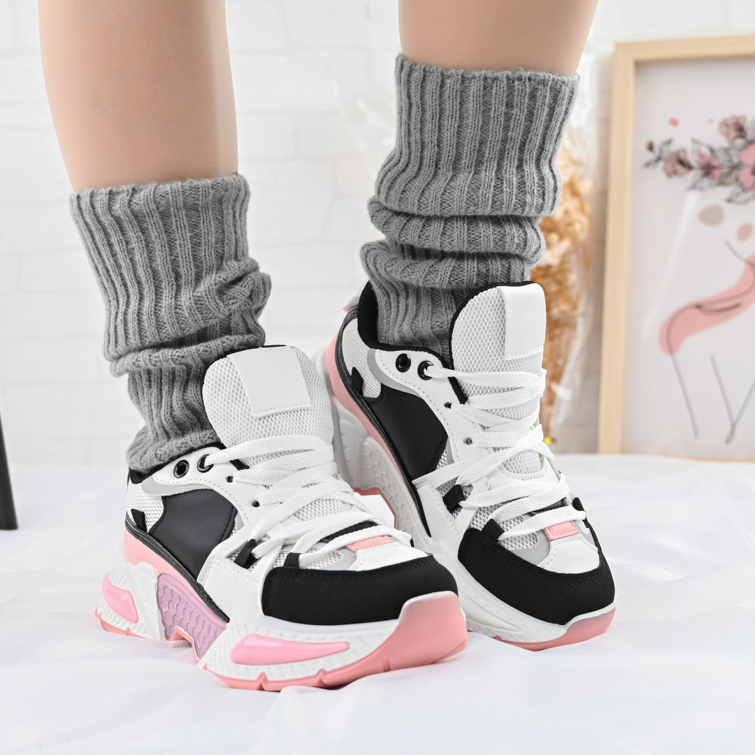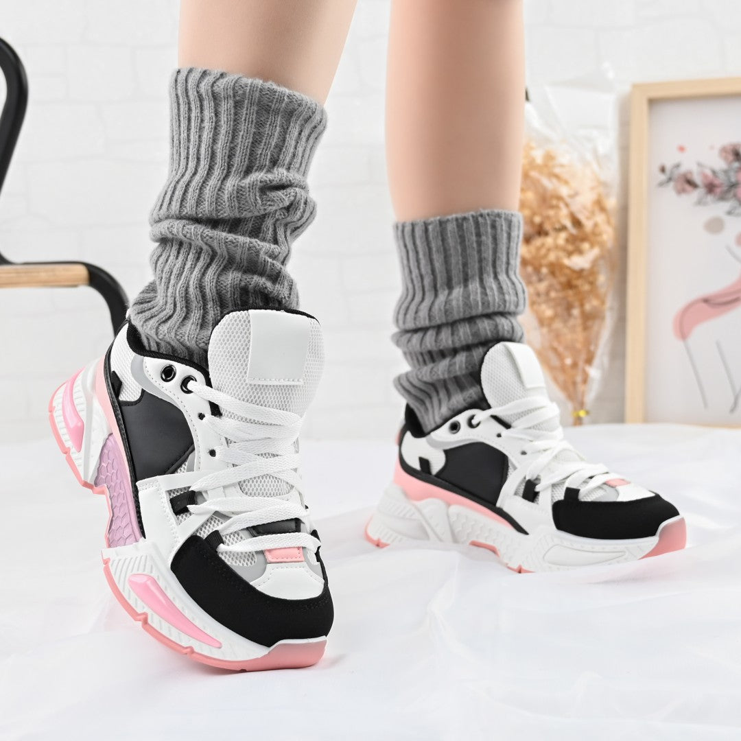 Дамски спортни обувки D1388, елегантни комбинации от черно и розово, изработени от екокожа и текстил, предлагащи комфорт и стил за...