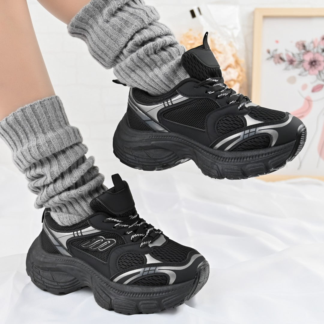 Дамски спортни обувки, с мрежести вложки, D1391, Черни