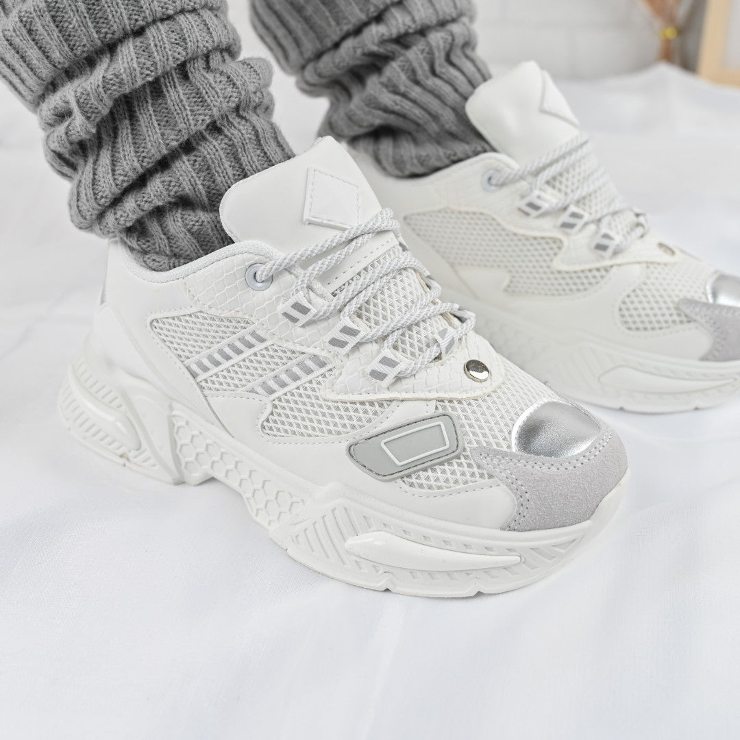 Дамски спортни обувки, с мрежести вложки, D1394, бял
