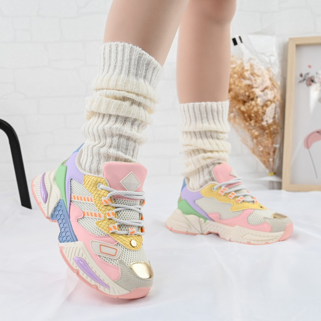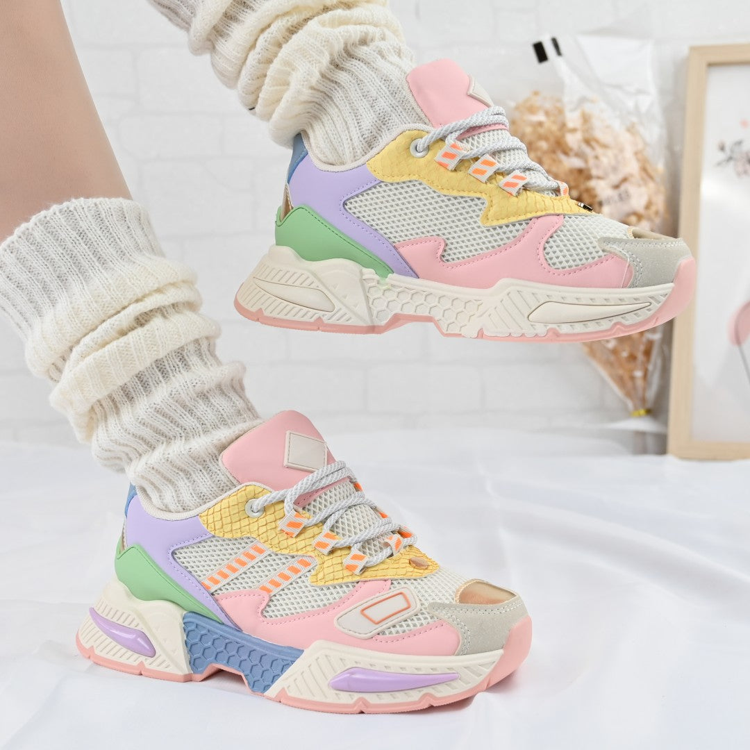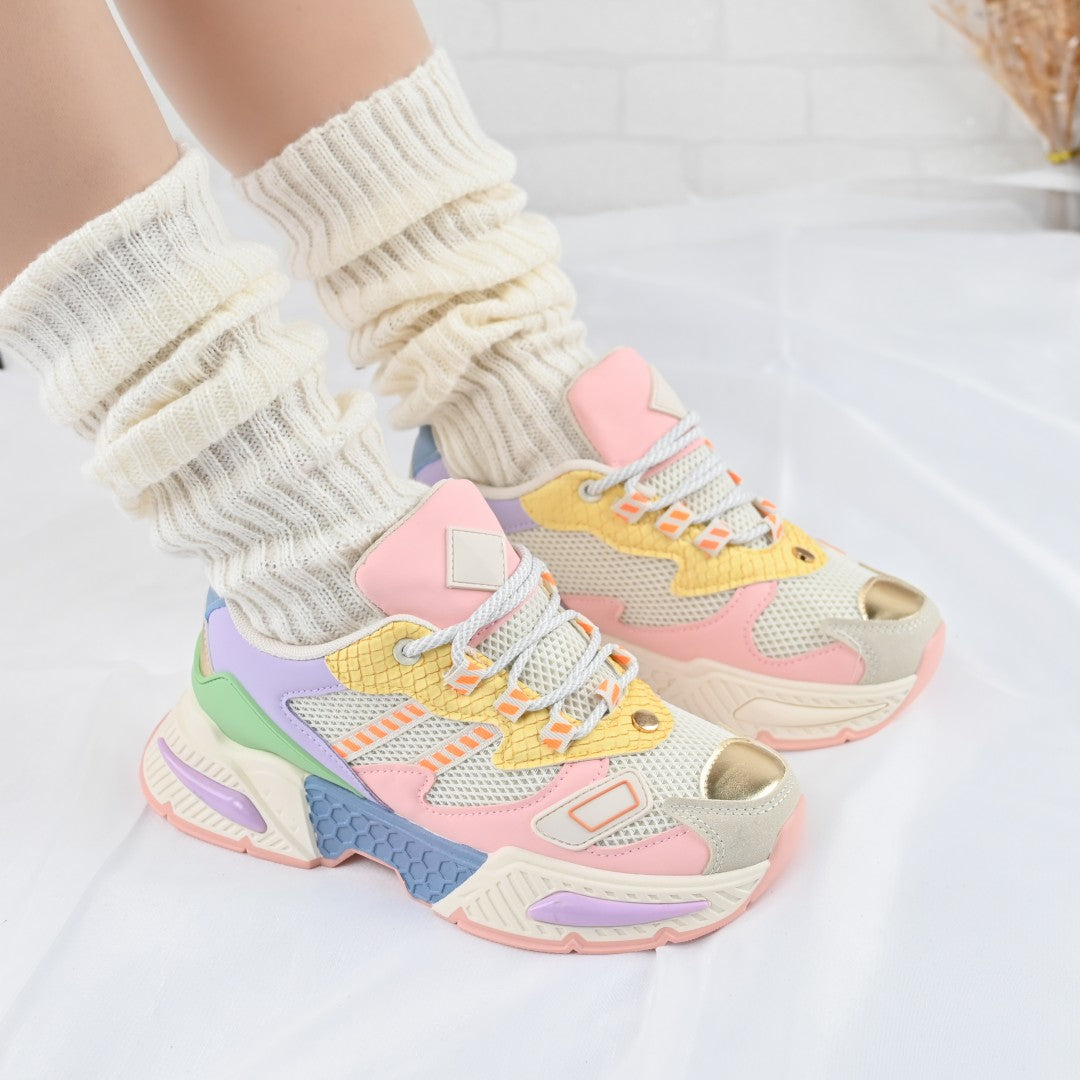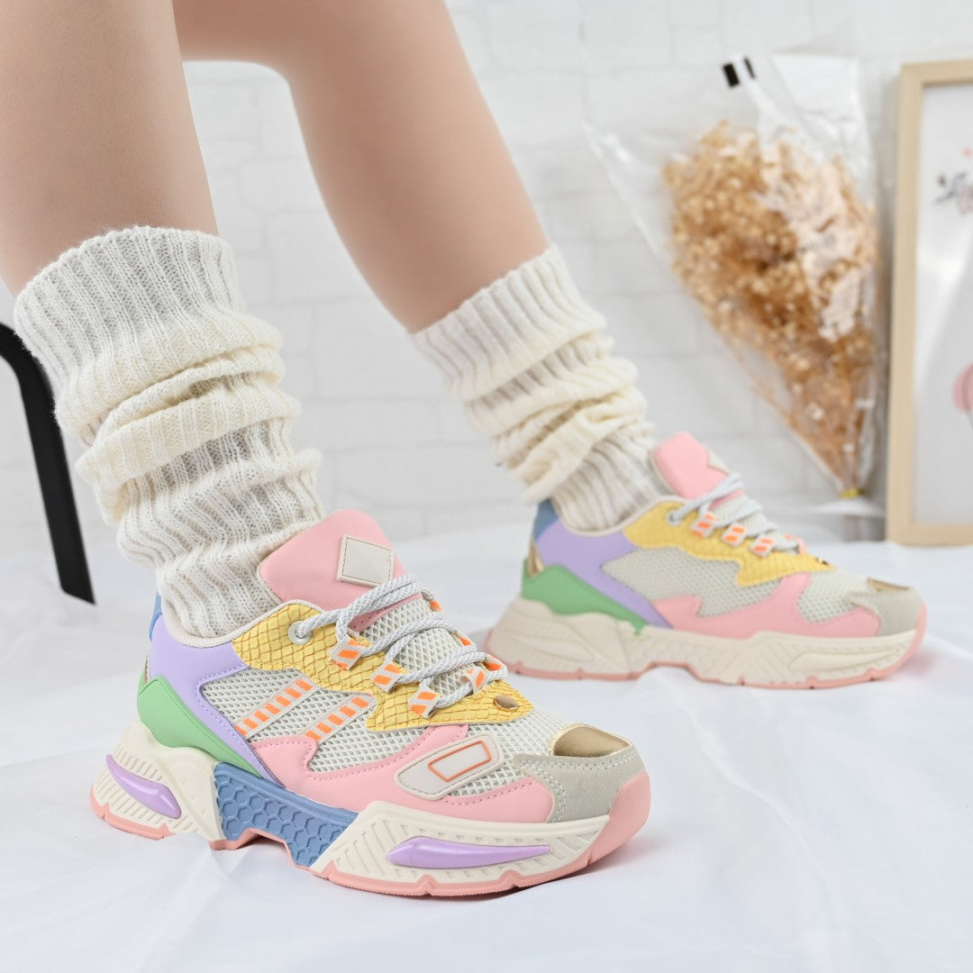 Дамски спортни обувки D1394, розови, с мрежести вложки, предлагат комфорт и стил. Изработени от текстилен материал, те имат TPU подметка...