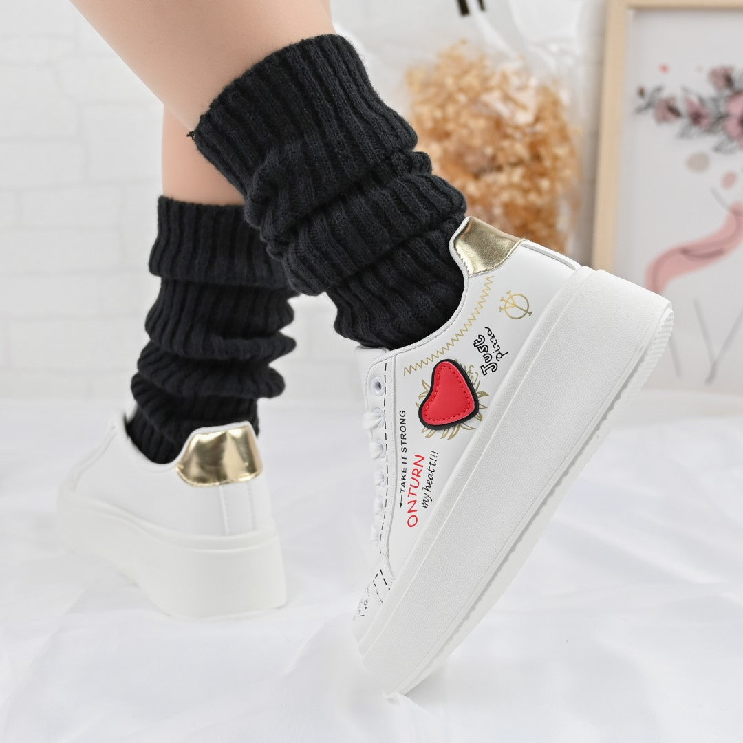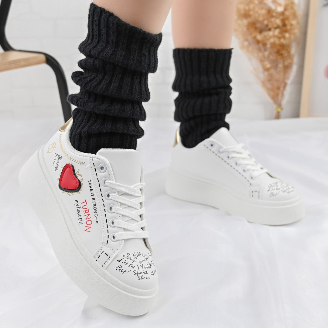 Дамски спортни обувки, С екологична кожа, D1362, Бели