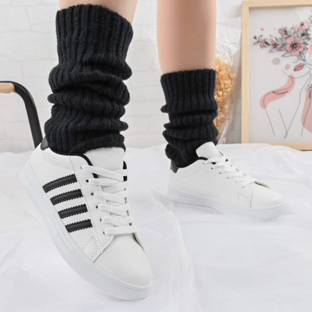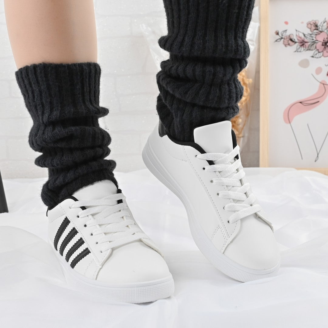 Дамските маратонки D1310 са изработени от бяла и черна екокожа, предлагащи комфорт и стил. Плоската подметка с височина 2,5 см...