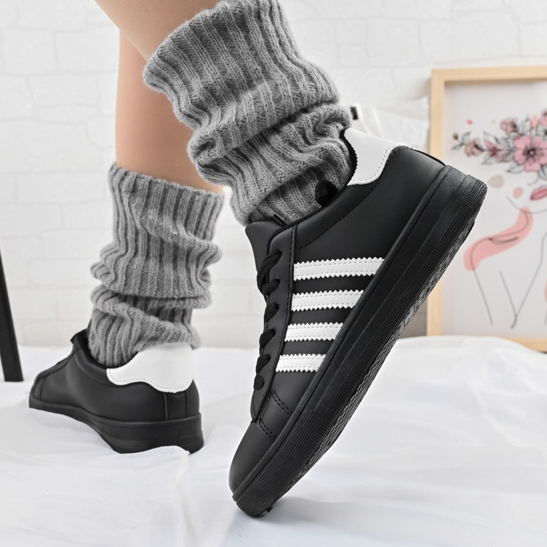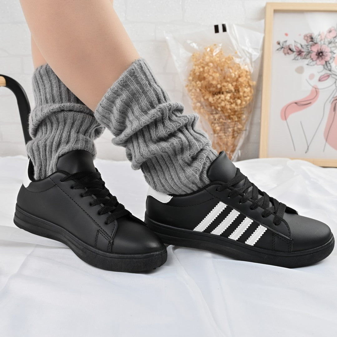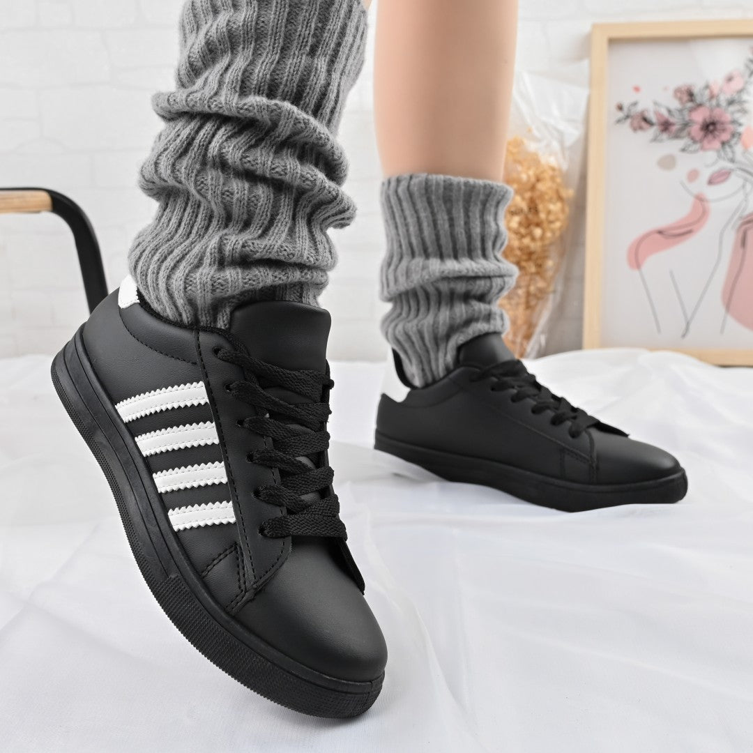 Дамски спортни обувки, D1310, Изработени от екологична кожа, Черни и бели