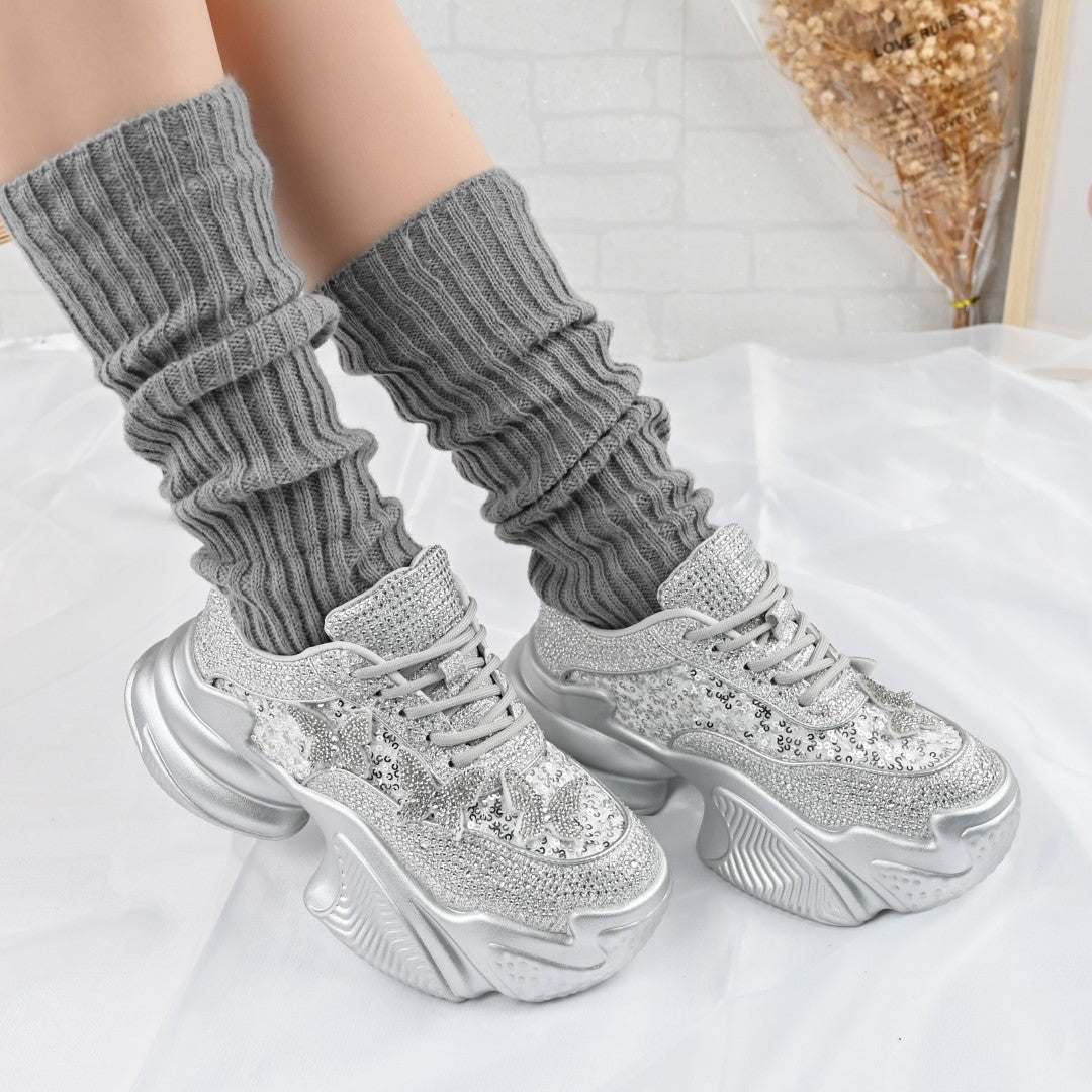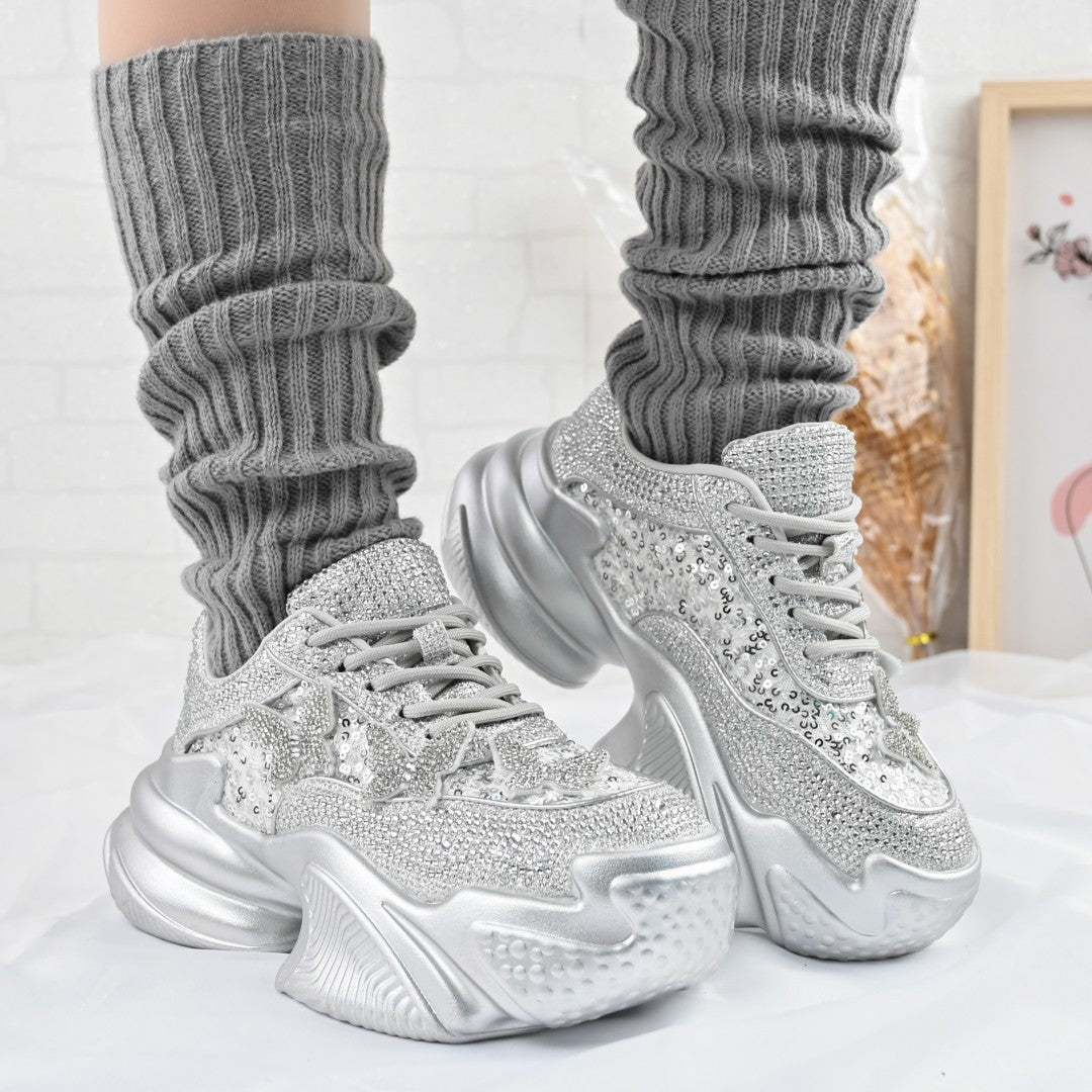 Дамските сребърни велурени маратонки съчетават комфорт със стил. С 5-сантиметрова клиновидна подметка, те са идеални за пролет, лято и есен....