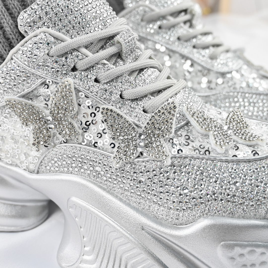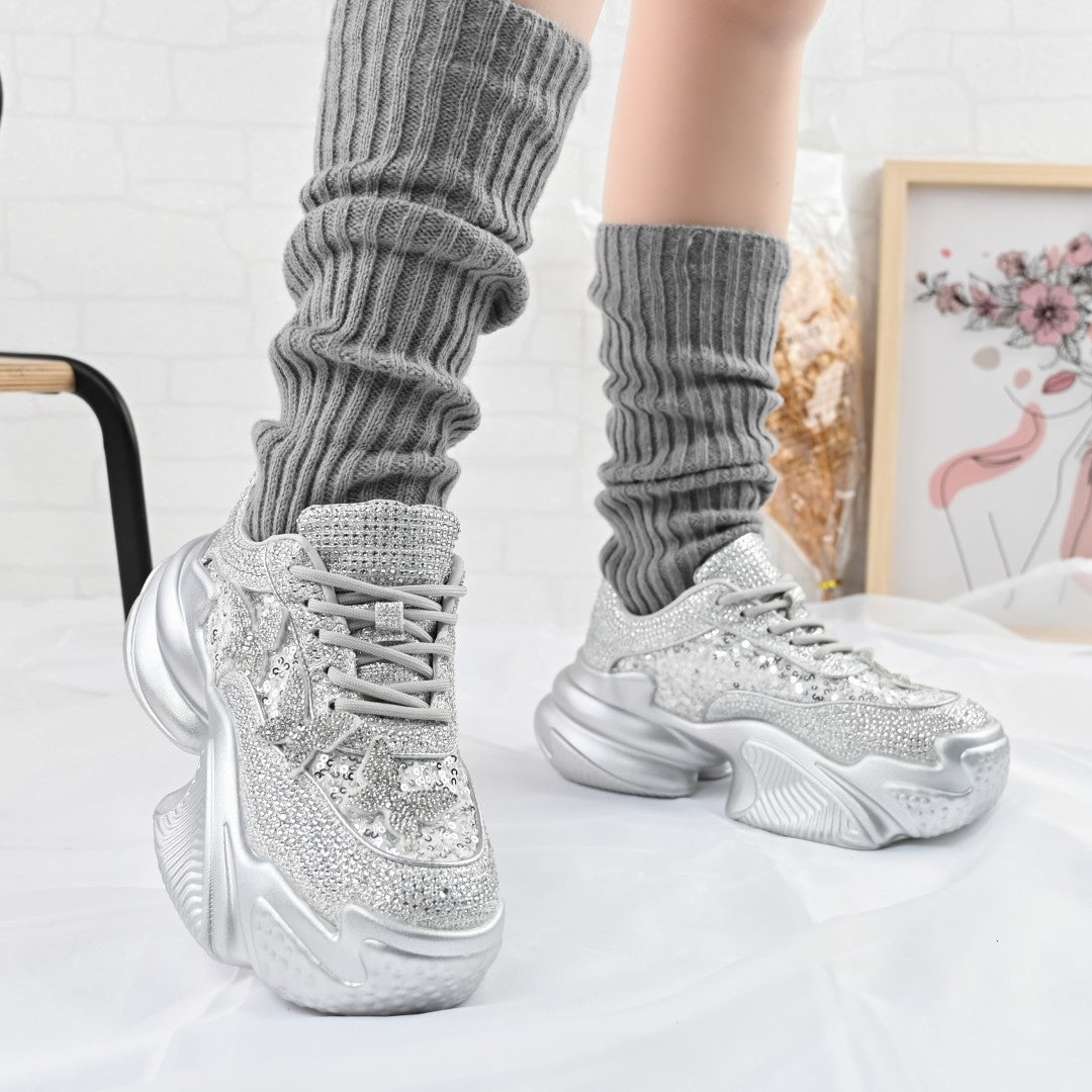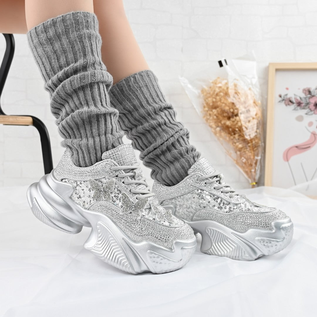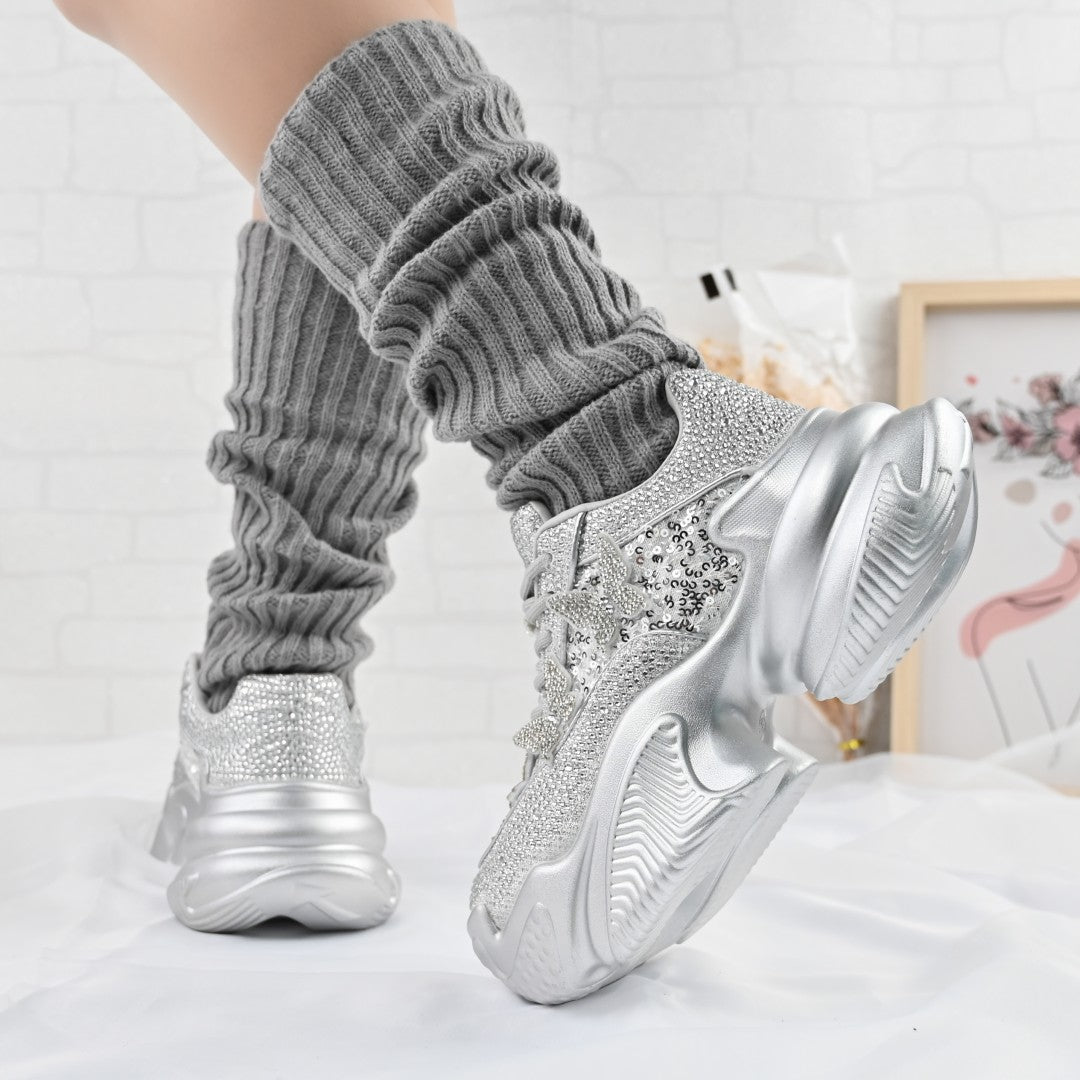 Дамски спортни обувки, изработени от велур, D1382, Сребрист