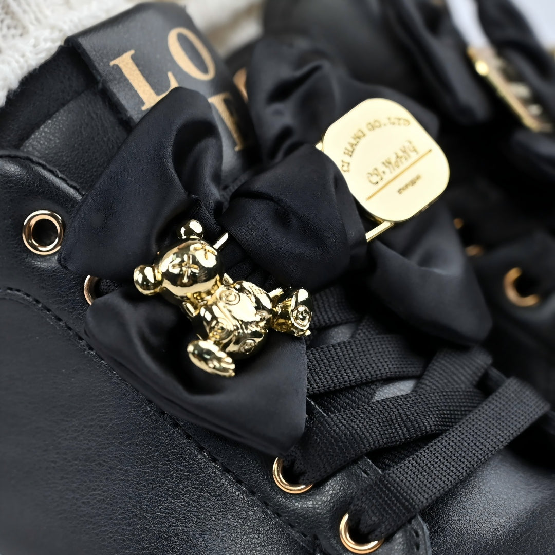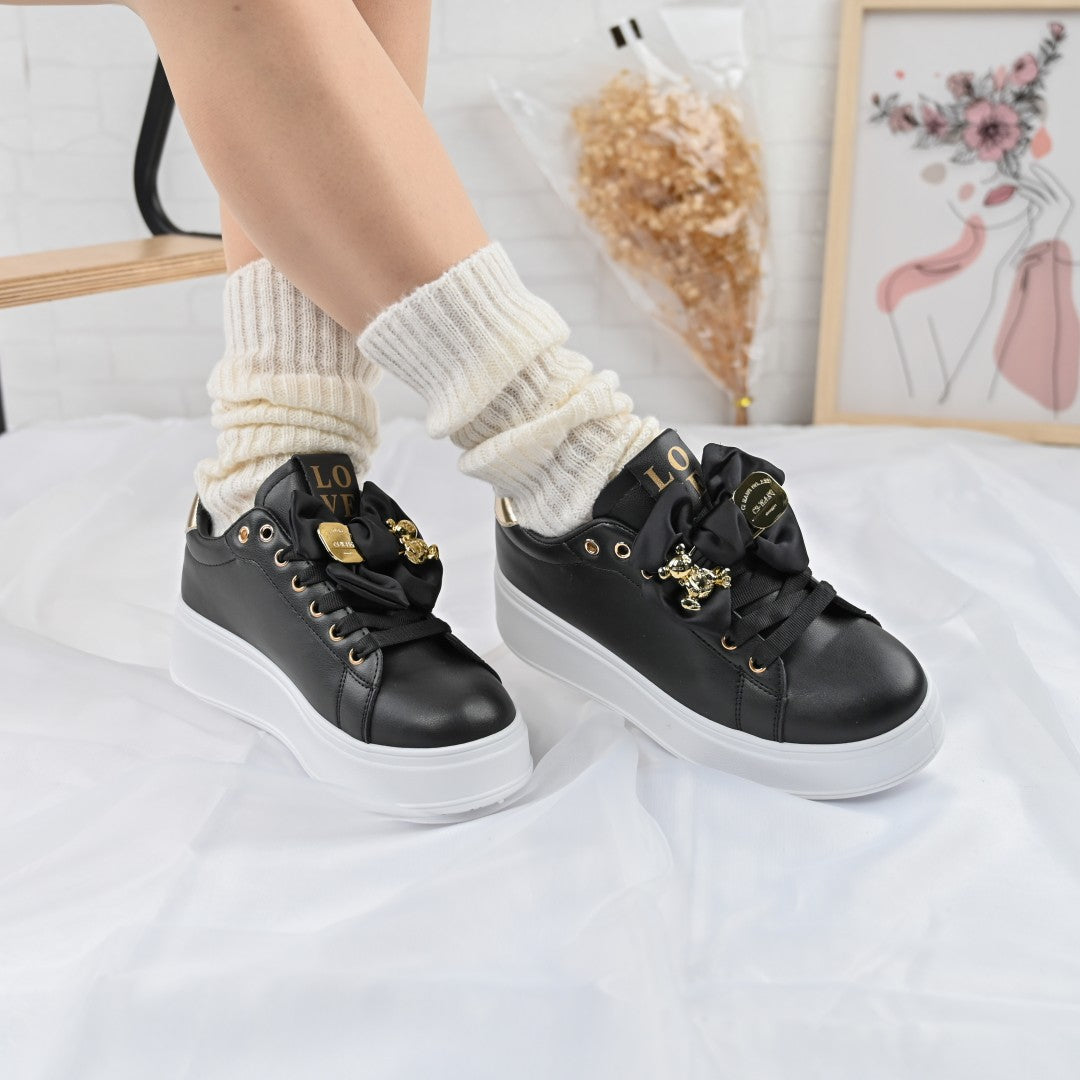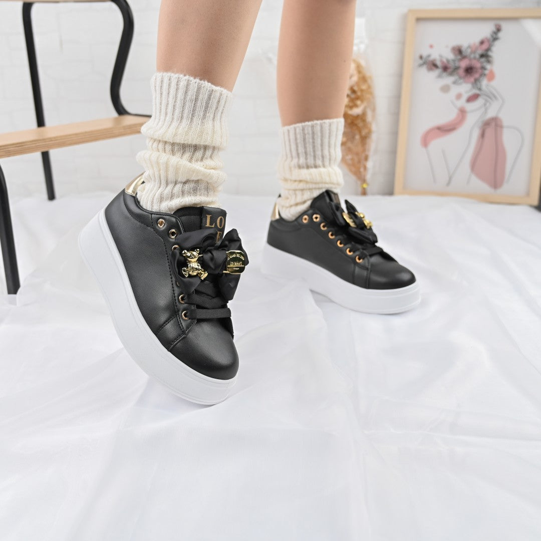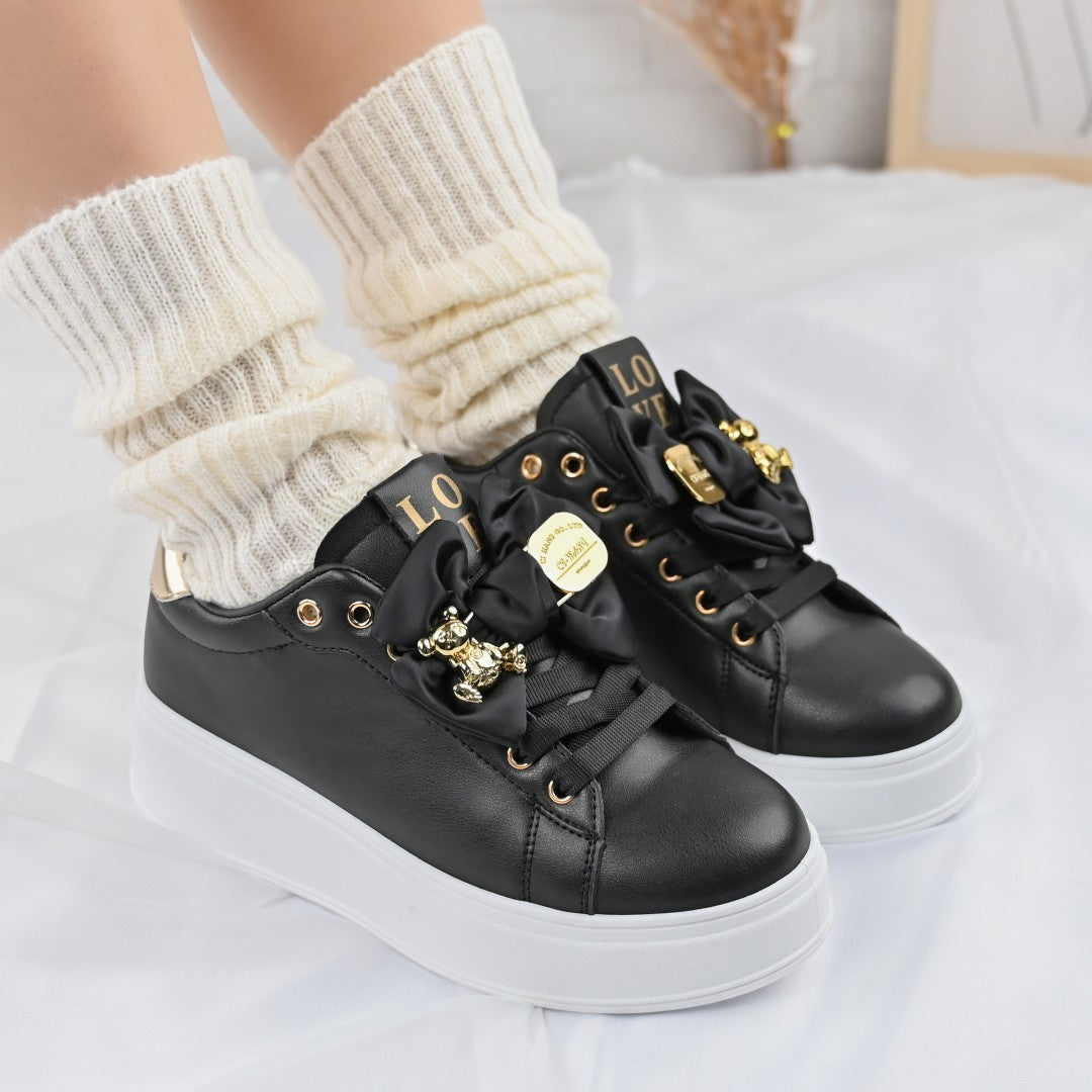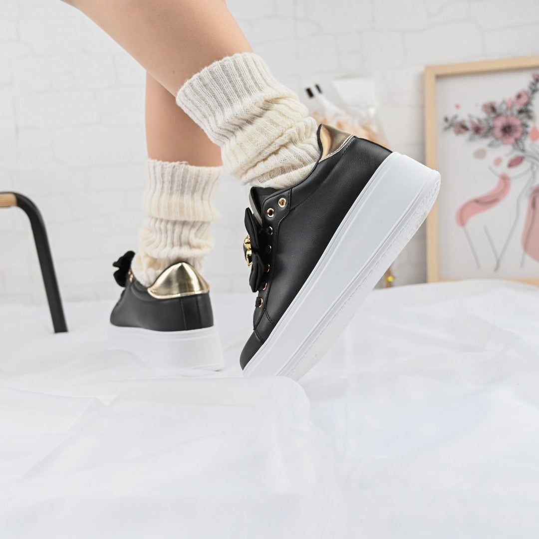 Дамски спортни обувки, изработени от екологична кожа, с панделка Mantarme, D1356, черни