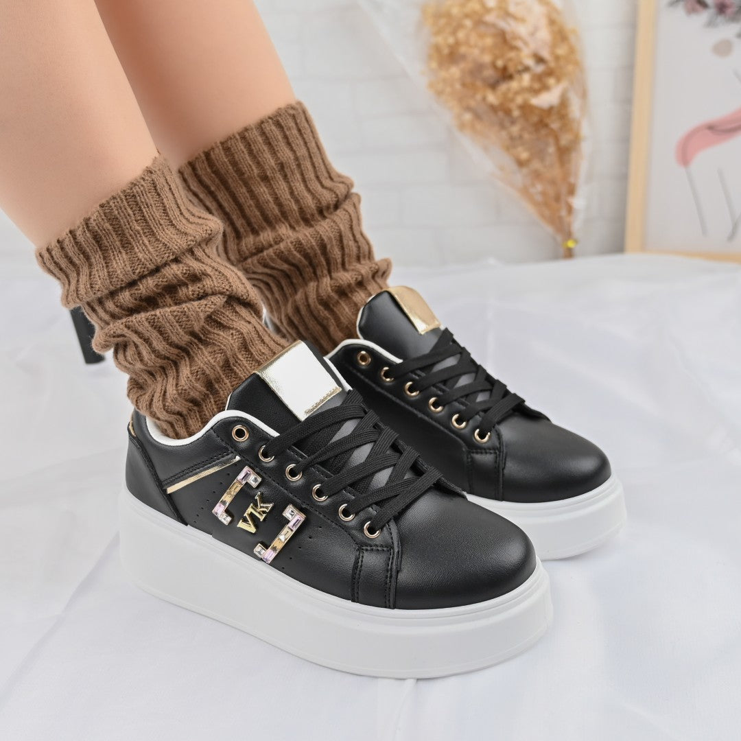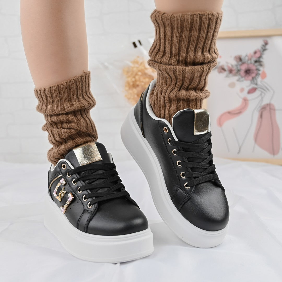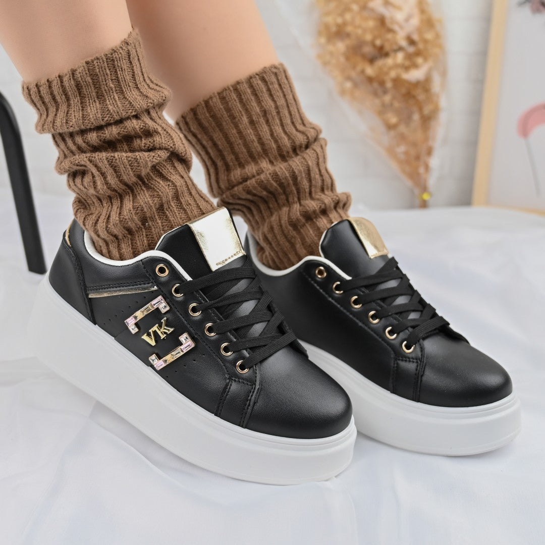 Дамски спортни обувки, изработени от екокожа, с камъни, D1368, черни