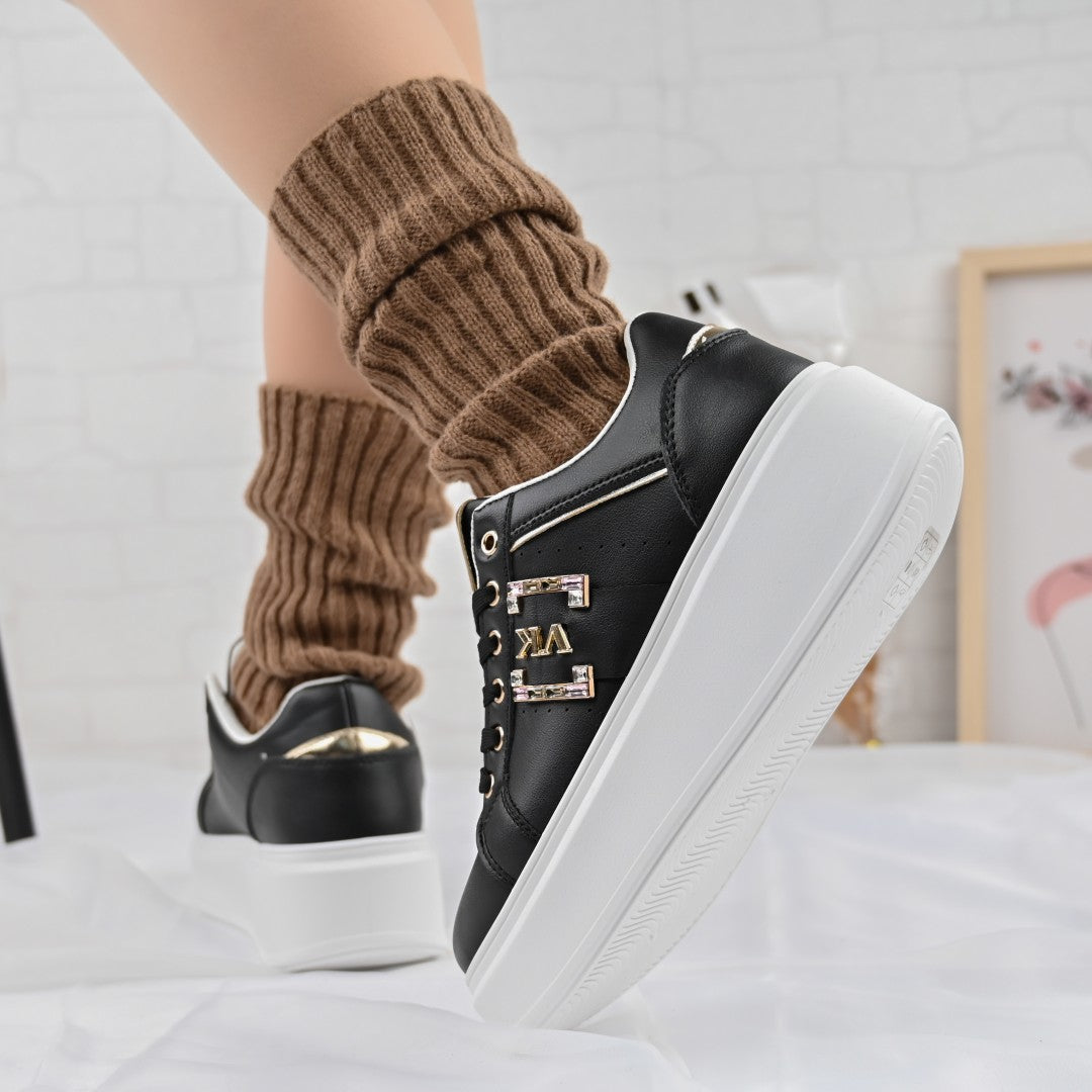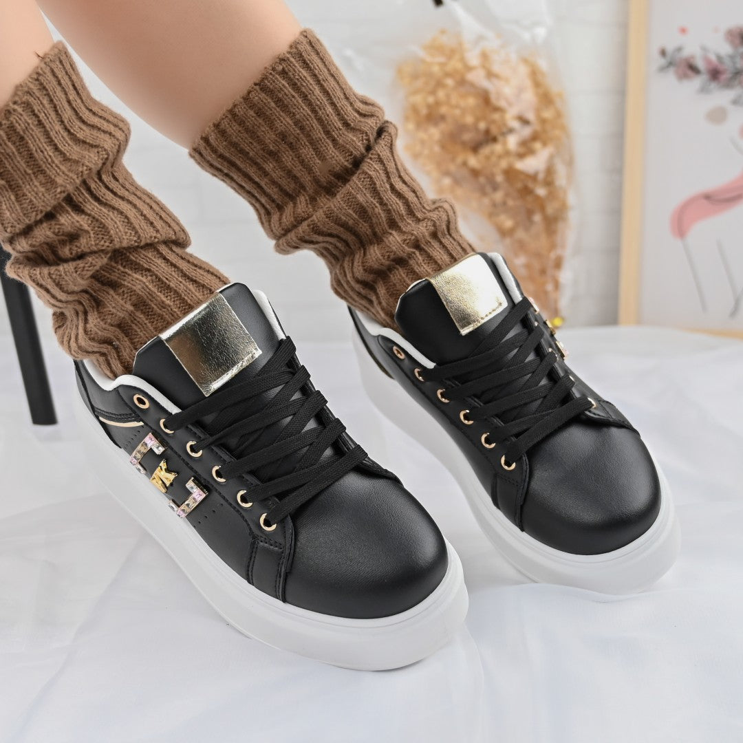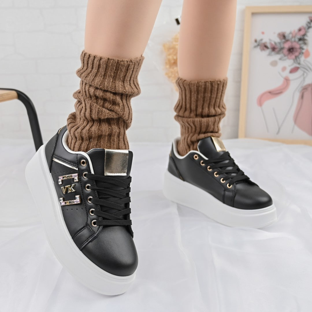 Дамски спортни обувки, изработени от екокожа, с камъни, D1368, черни