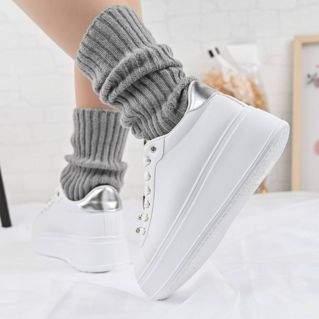 Открийте дамски маратонки, изработени от екокожа, с модерен дизайн в бяло и сребристо. Удобни и елегантни, идеални за пролетно-есенния сезон....