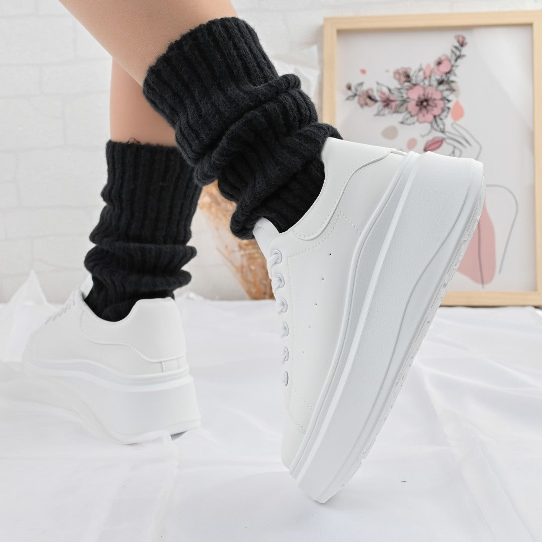 Дамски спортни обувки, Изработени от екокожа, D1329, Бели