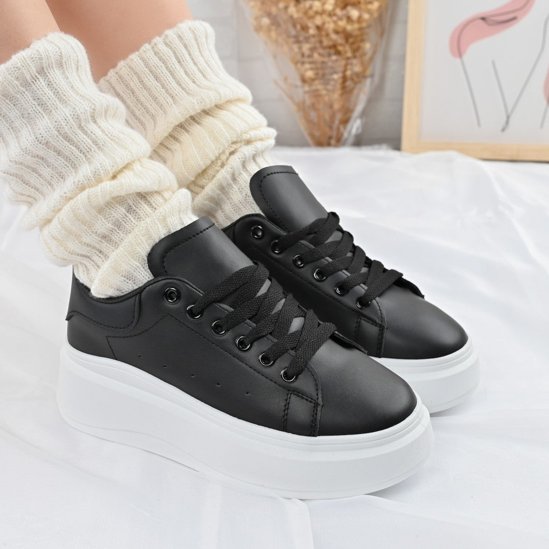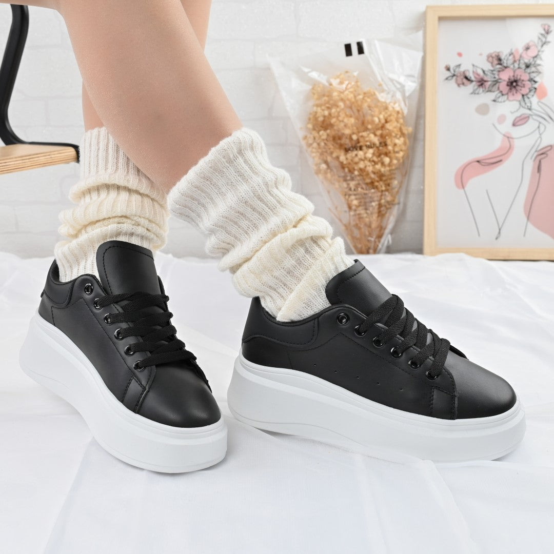 Дамски спортни обувки D1329, изработени от екокожа, са идеални за пролетта, лятото и есента. Елегантен дизайн в черно, с клиновидна...