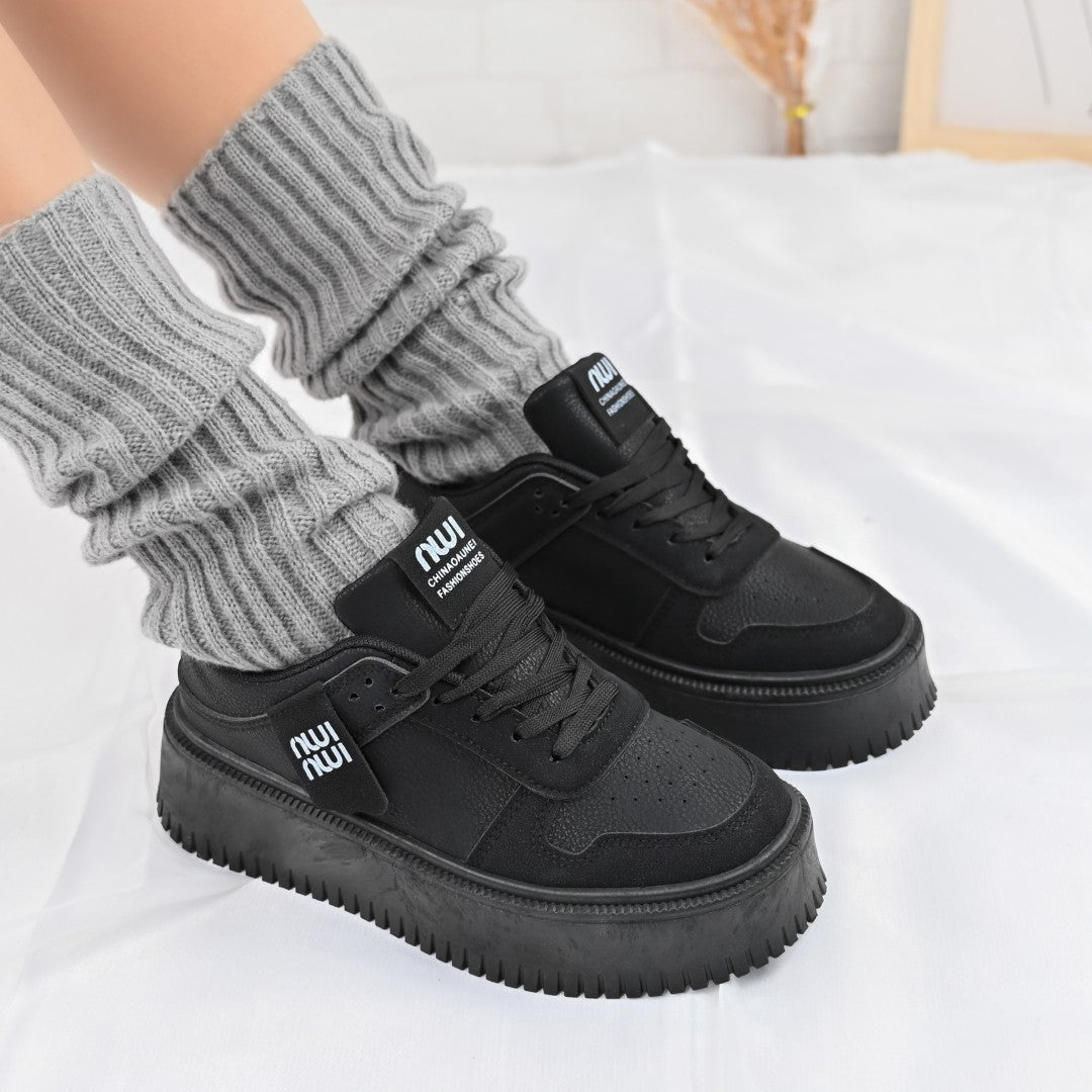 Дамски маратонки от еко кожа D1366, черни, съчетават комфорт и модерен стил. С лек дизайн и TPU подметка, те са...