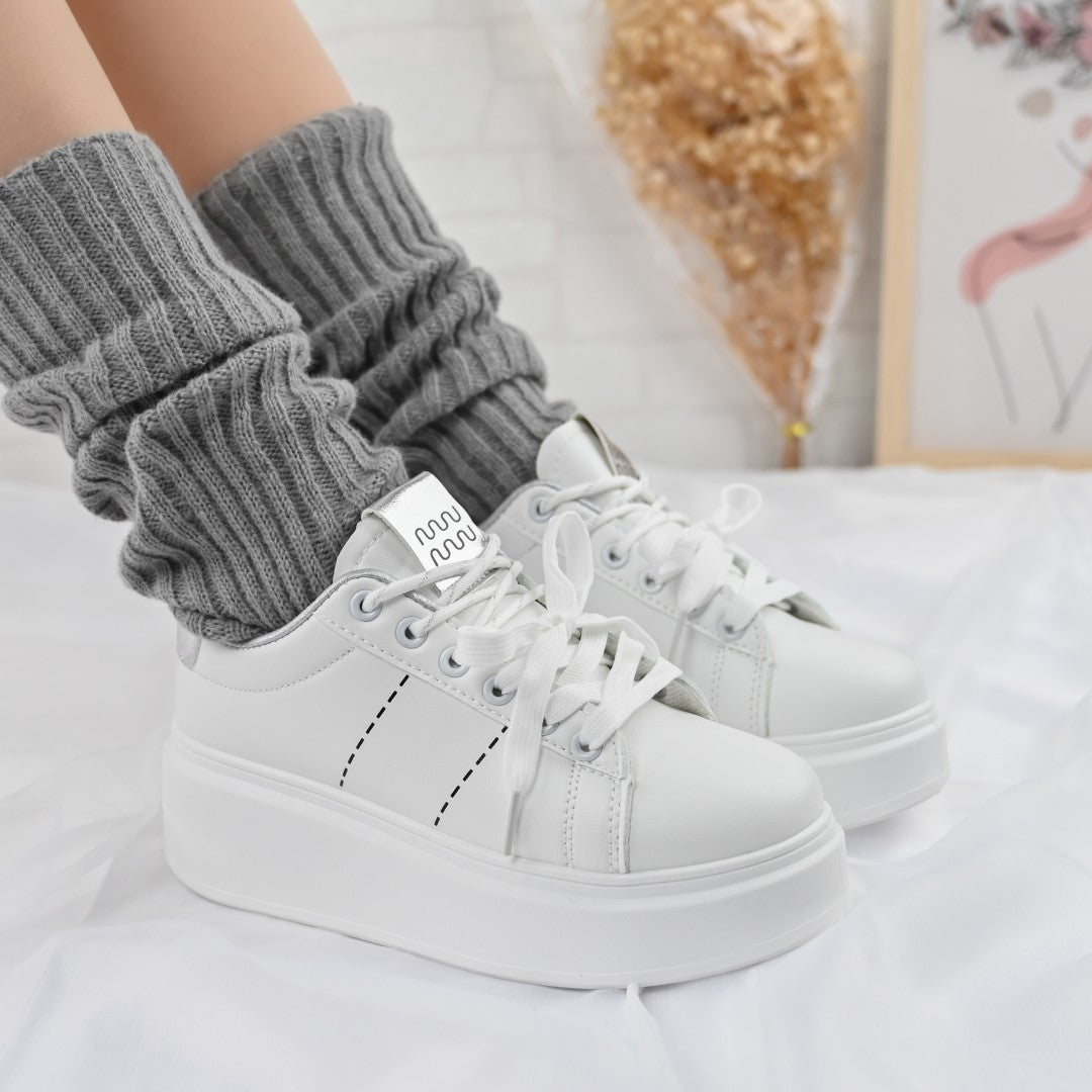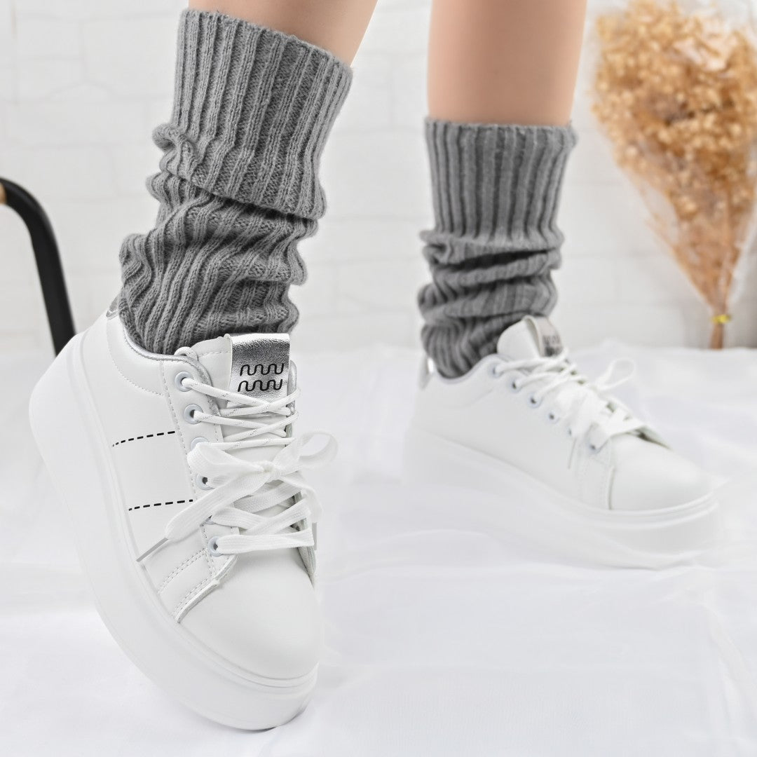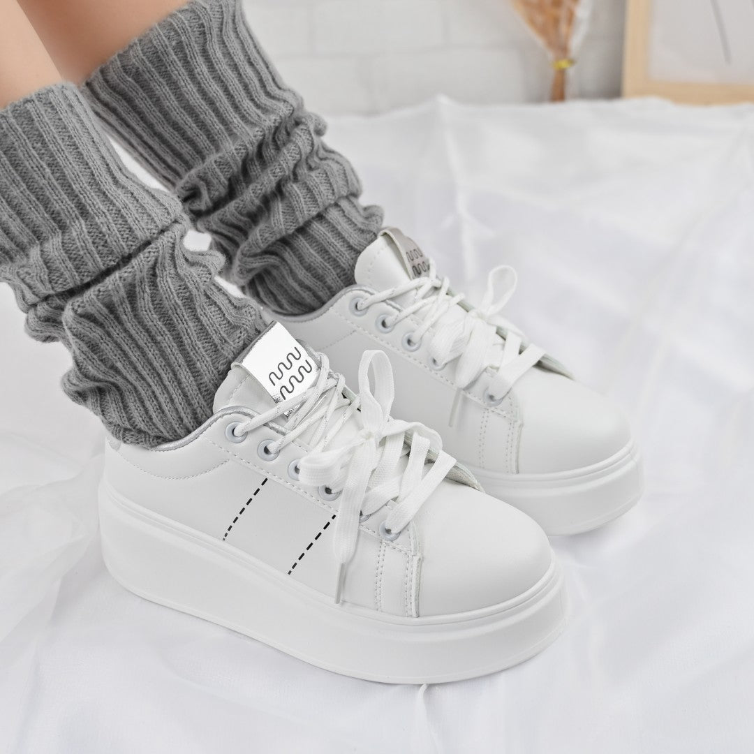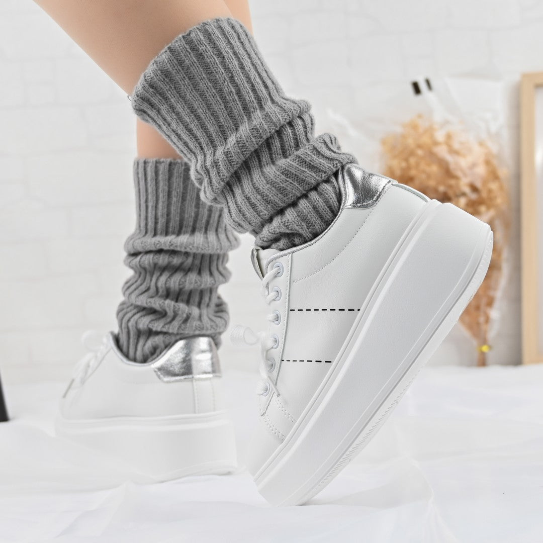 Открийте комфорт и стил с дамските маратонки от еко кожа, D1373, в елегантно бяло със сребристо. Перфектни за пролет, лято...