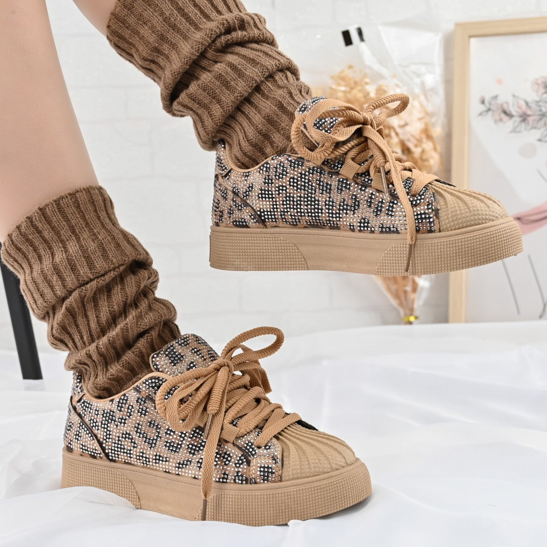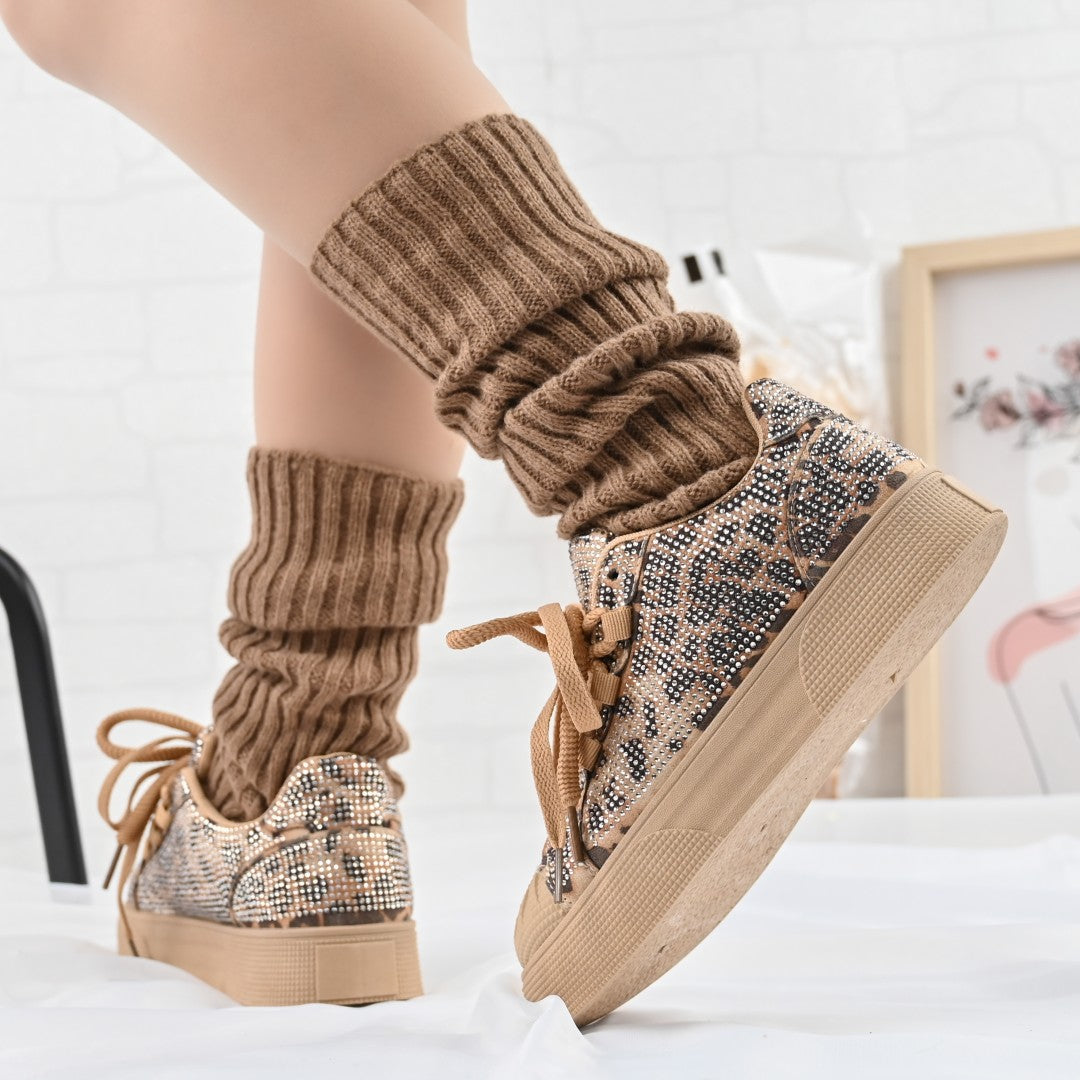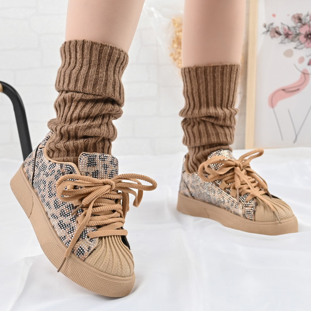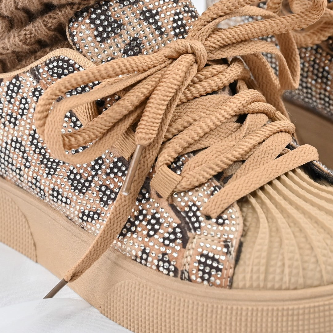 Дамски спортни обувки, изработени от еко-велур кожа, с кристали, D1395, леопард