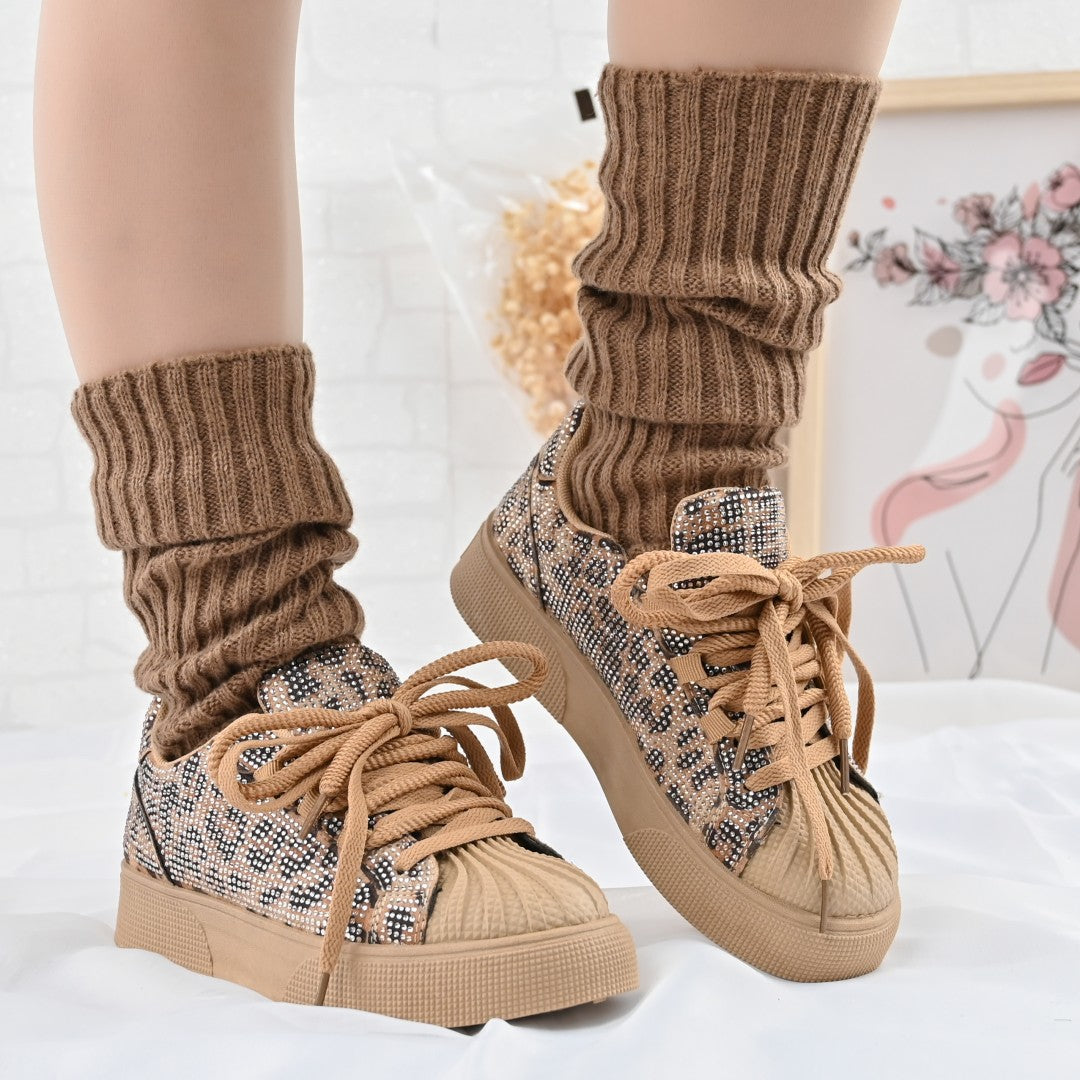 Дамски маратонки, изработени от еко-велур кожа, с елегантен леопардов принт и кристали, предлагат комфорт и стил. Идеални за пролет, лято...