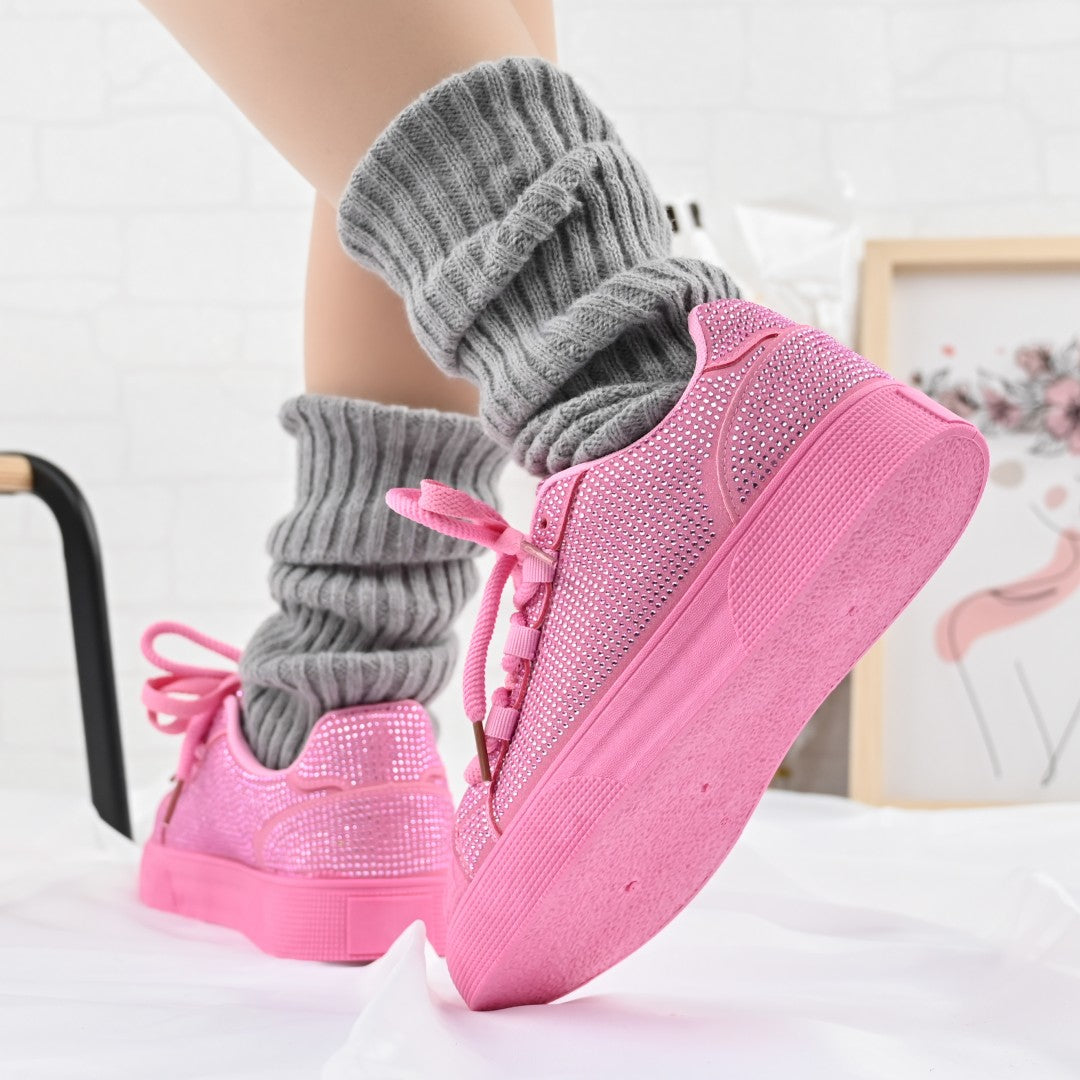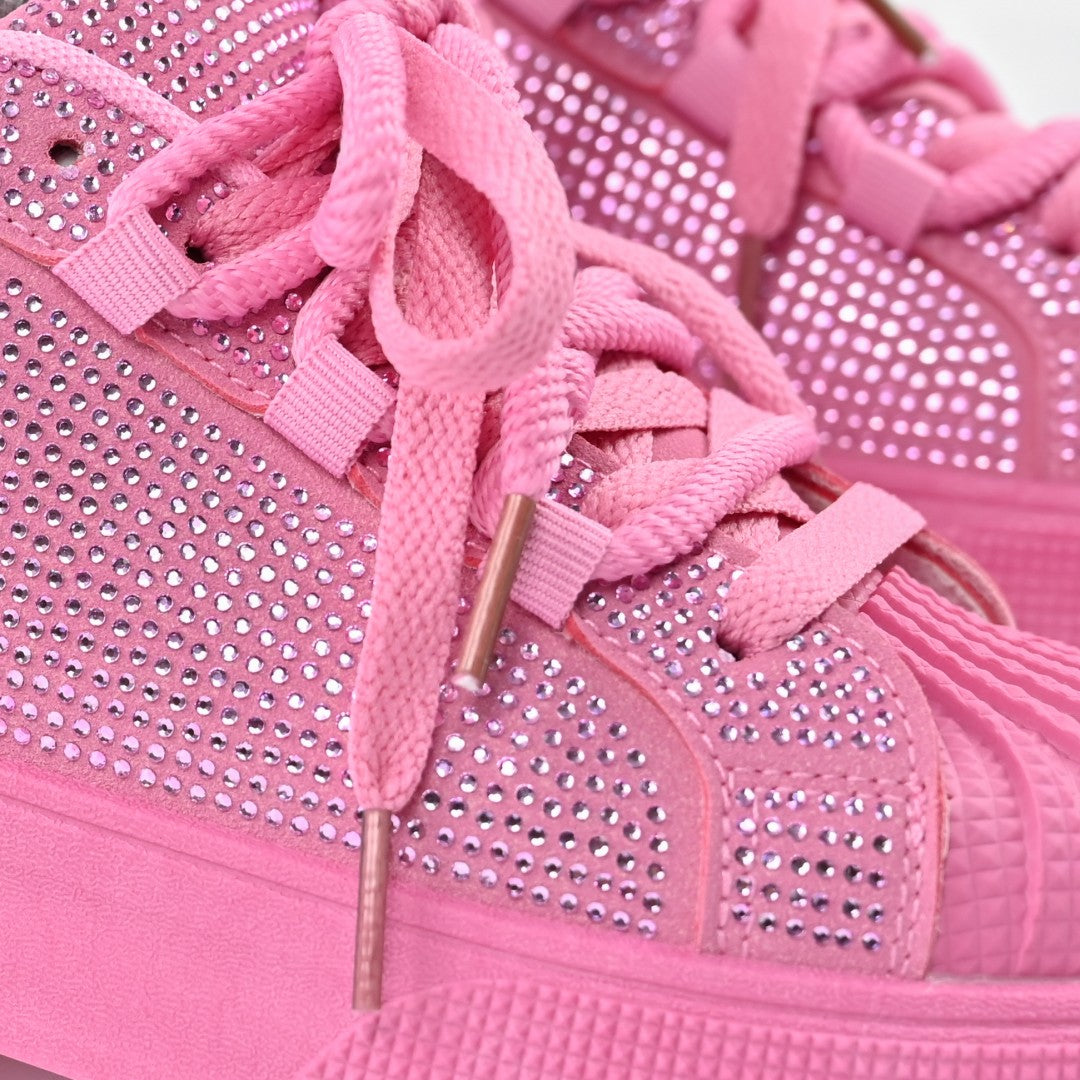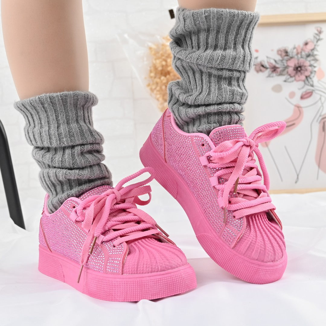 Дамски спортни обувки, изработени от еко-велур кожа, с кристали, D1395, розови