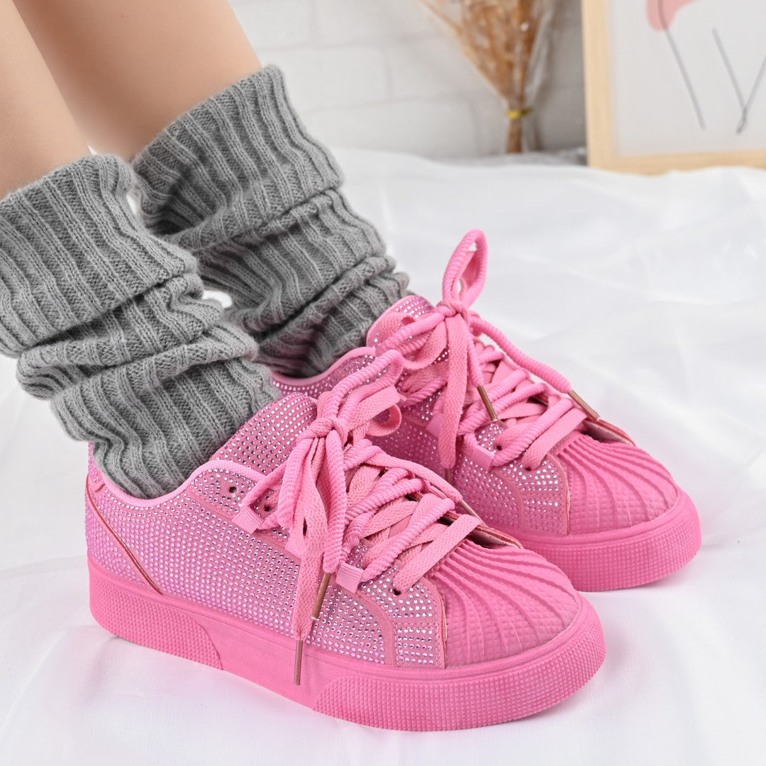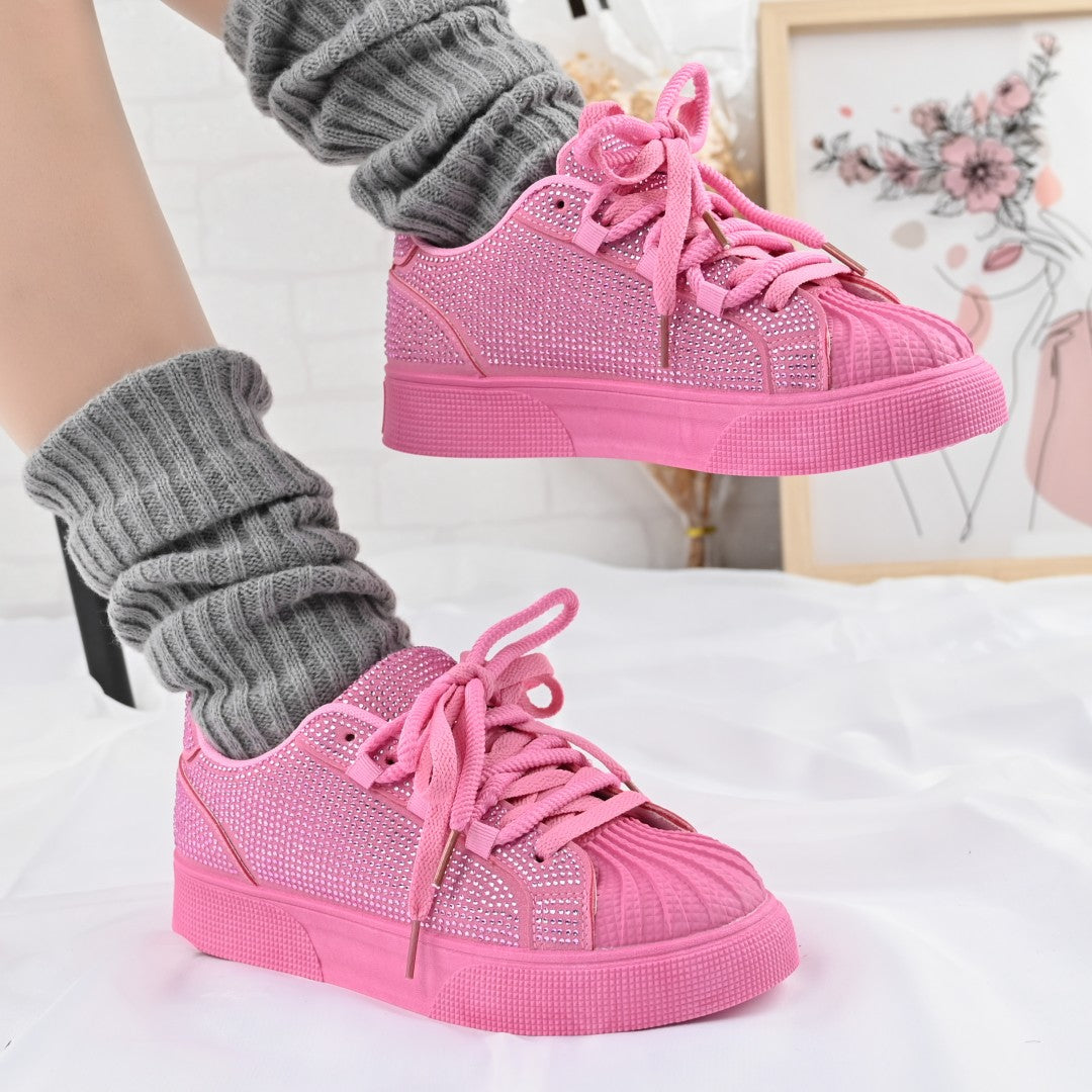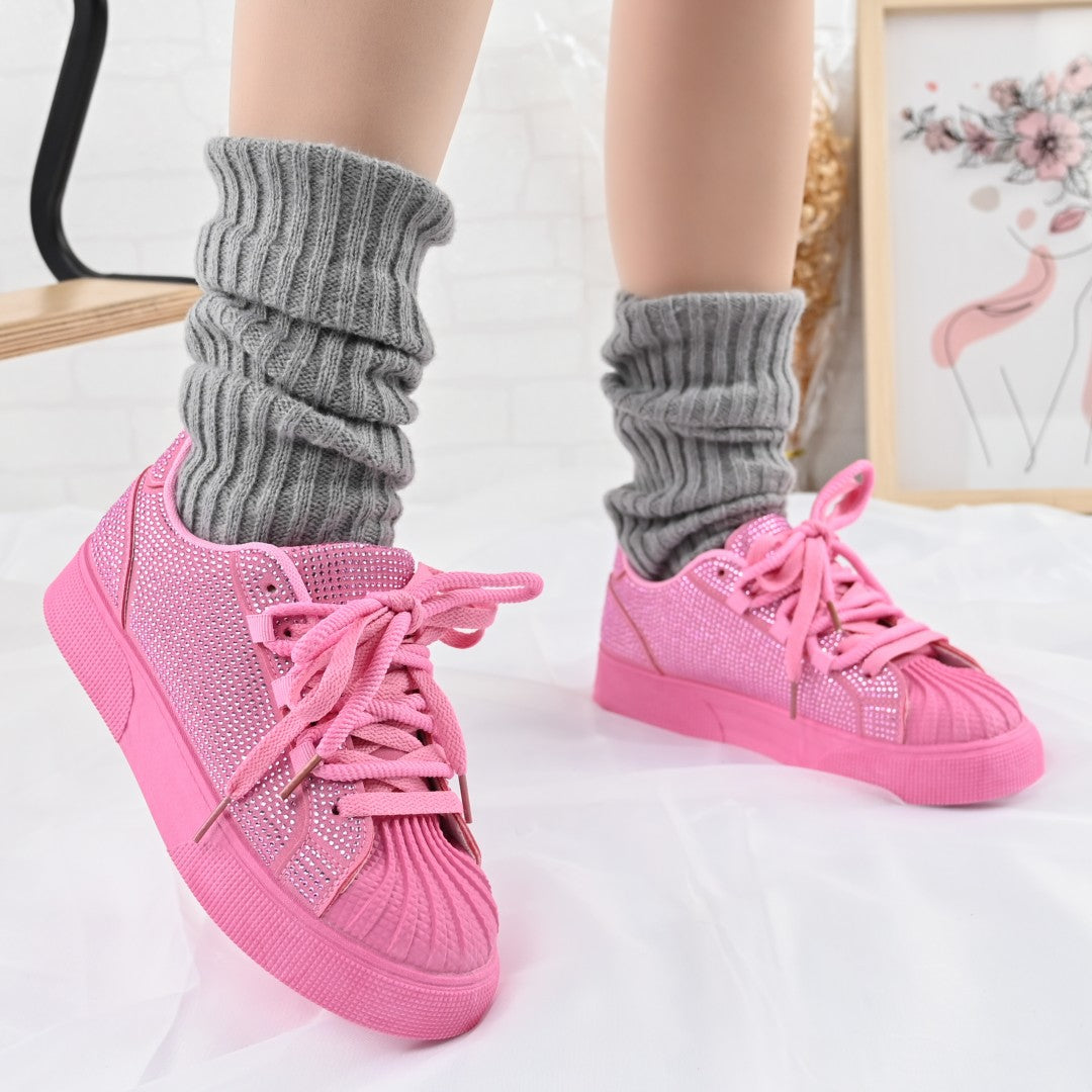 Дамски спортни обувки, изработени от еко-велур кожа, с кристали, D1395, розови