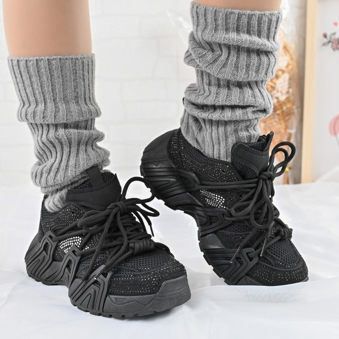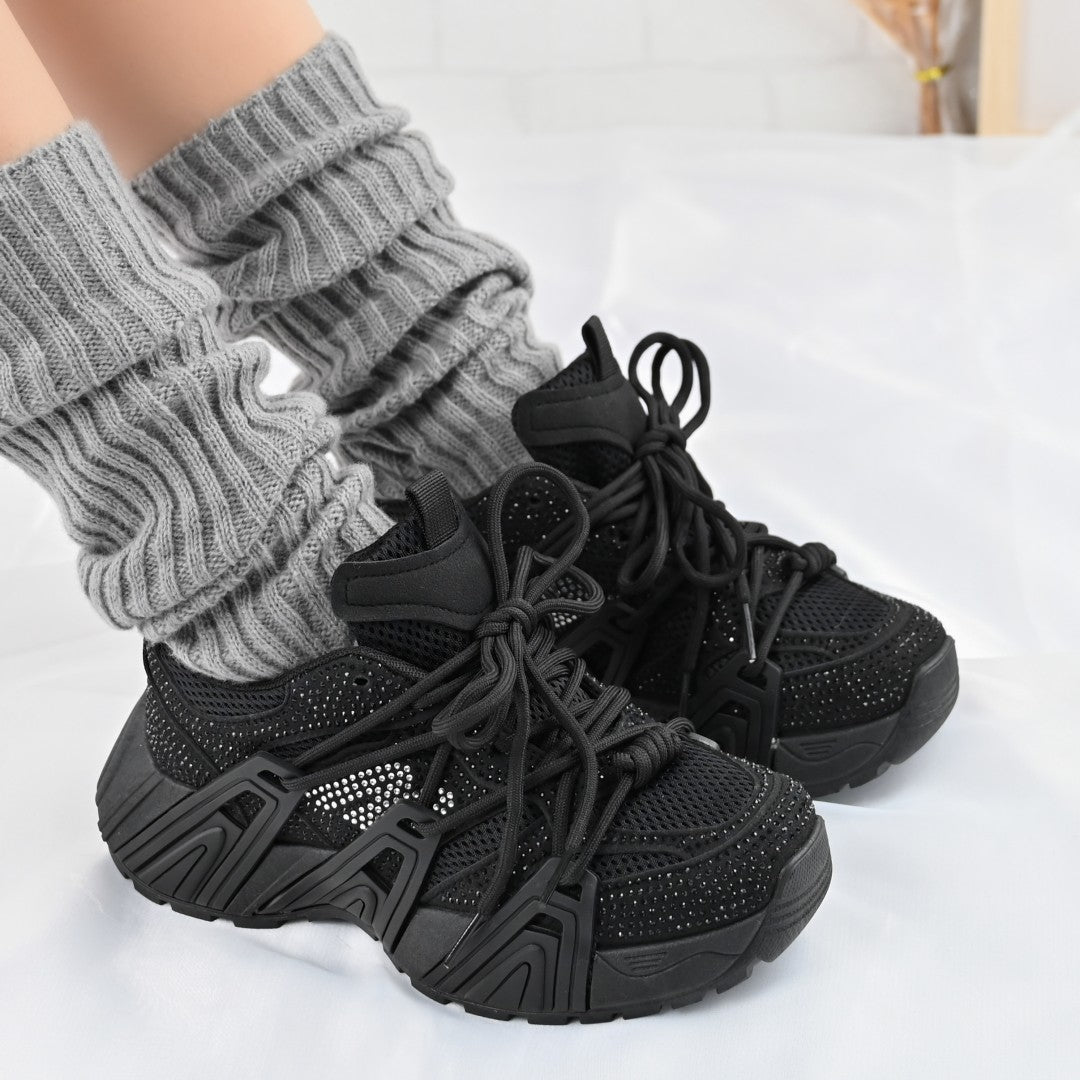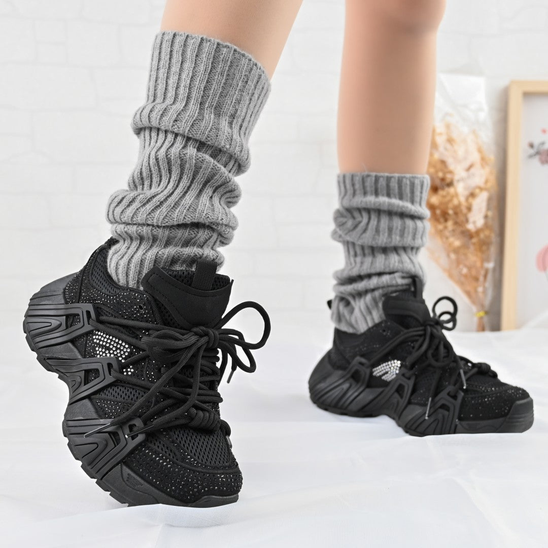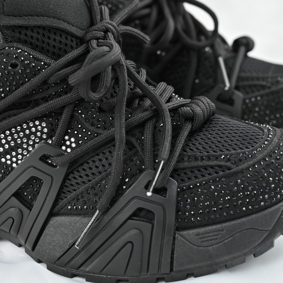 Дамски спортни обувки, изработени от еко-велур кожа, с кристали, D1408, черни