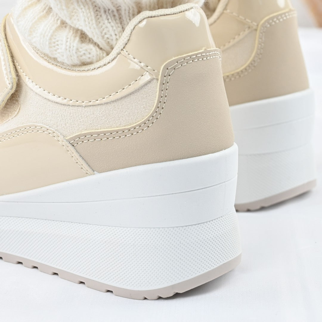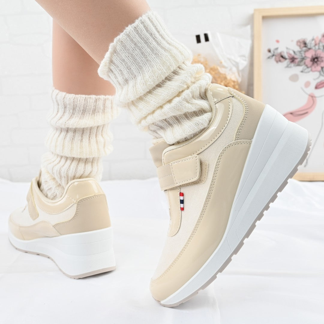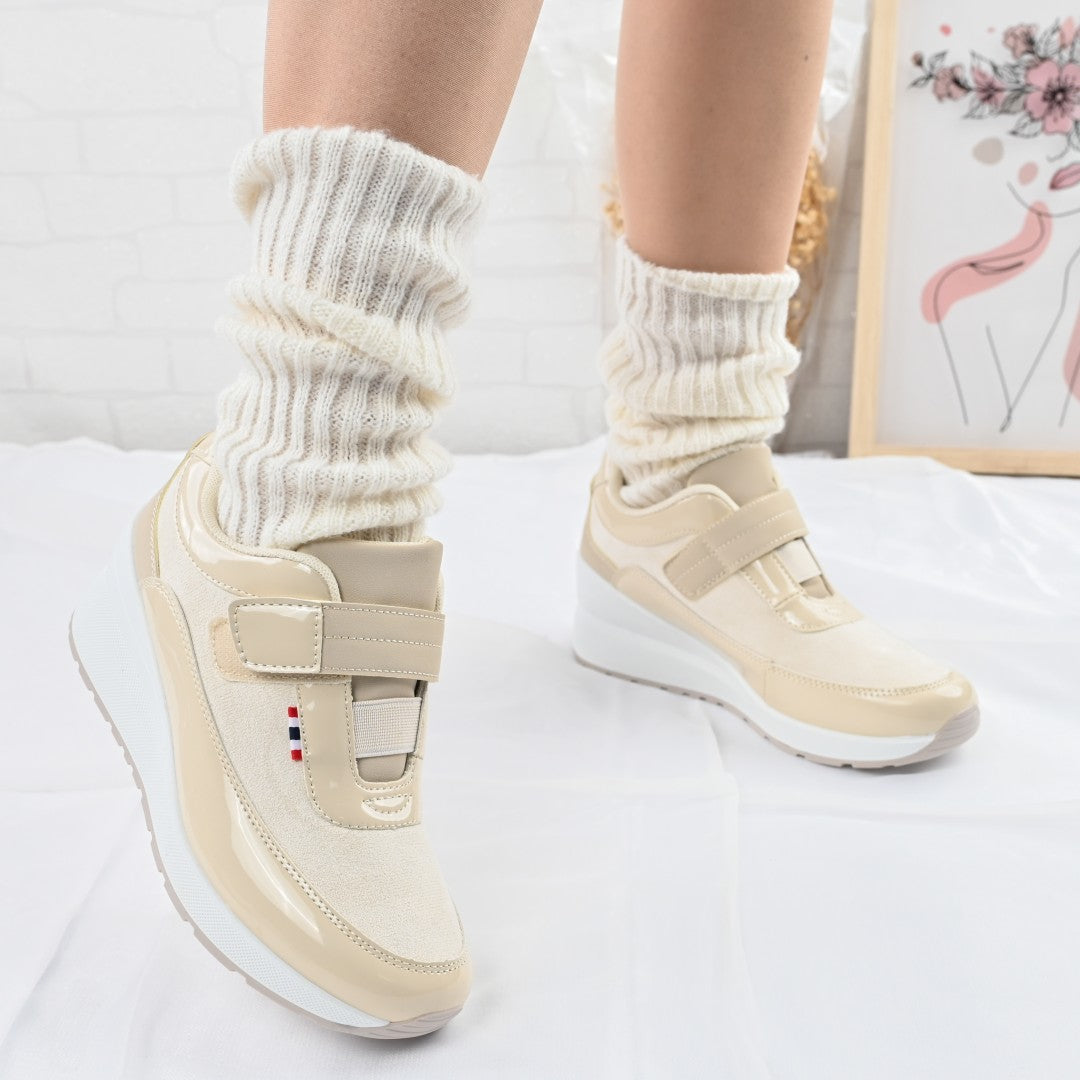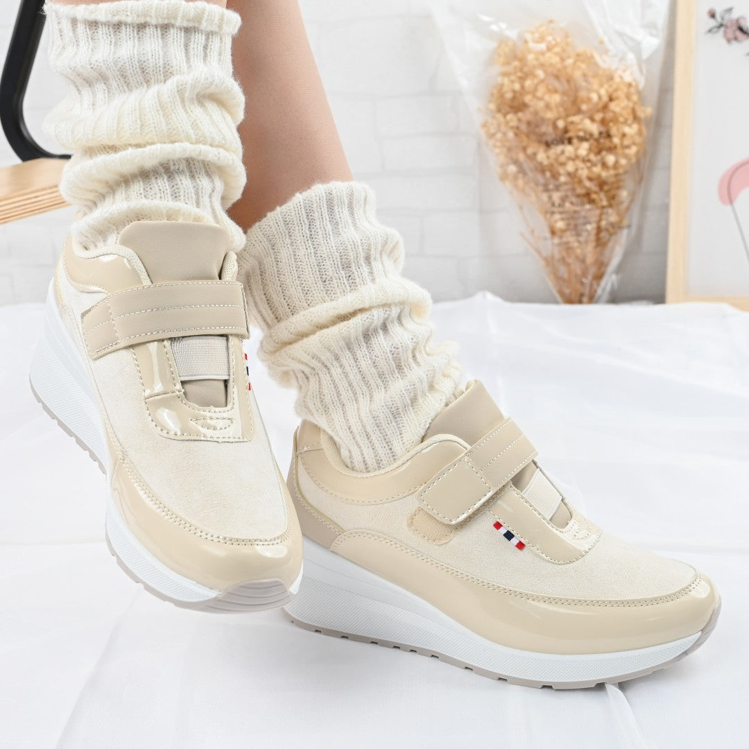 Дамски спортни обувки, Изработени от еко кожа, С платформа подметка, D1331, Бежов