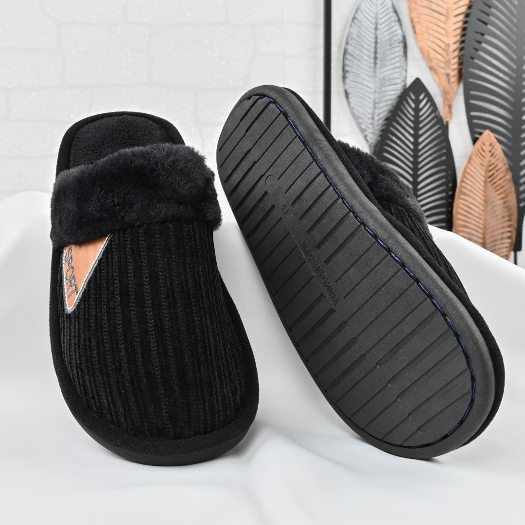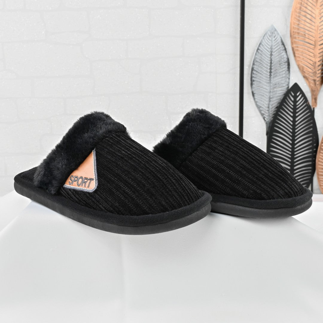 Papucii de casă pentru bărbați PB2025, de culoare neagră, sunt realizați din blană artificială și oferă un interior călduros. Ideal...