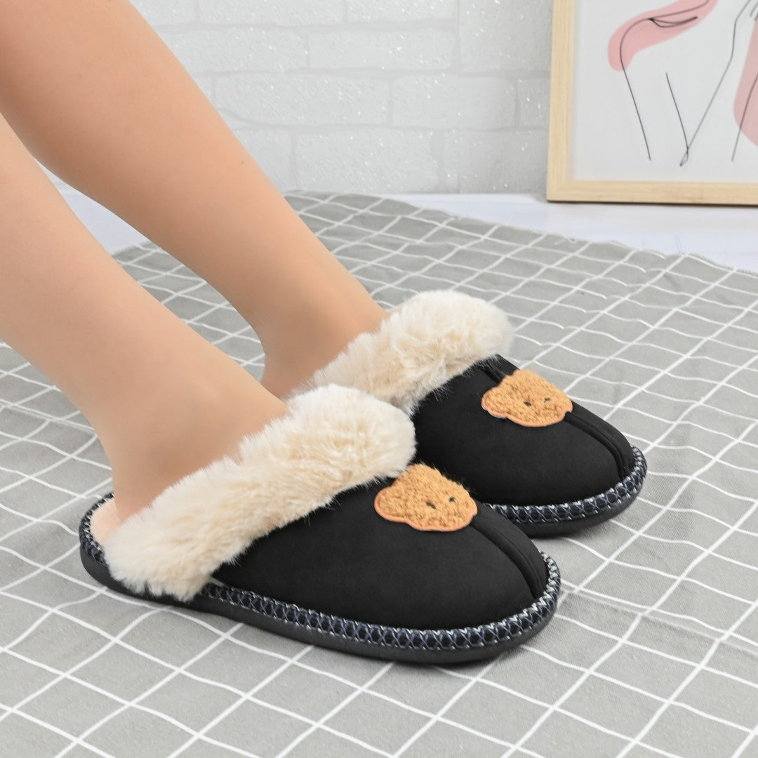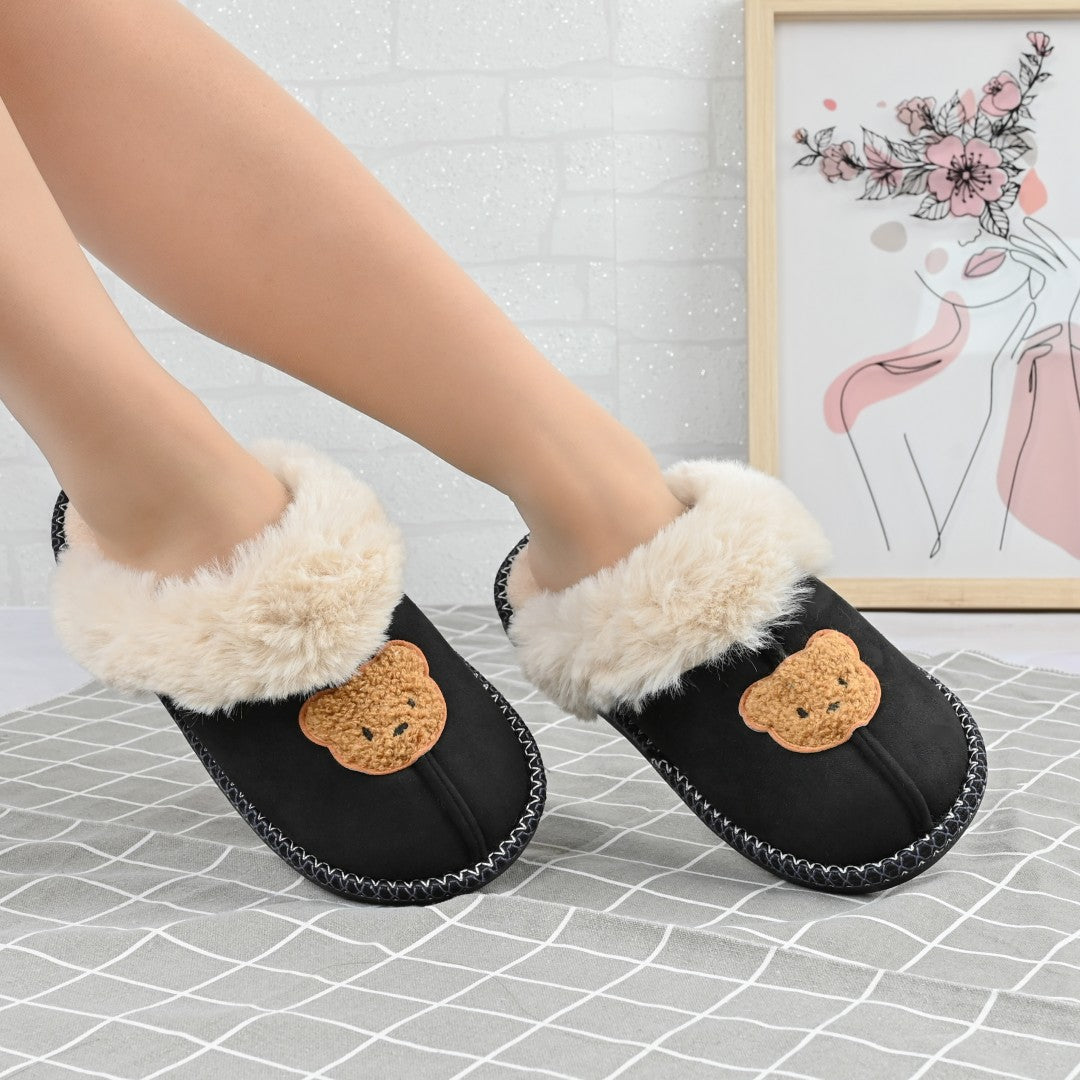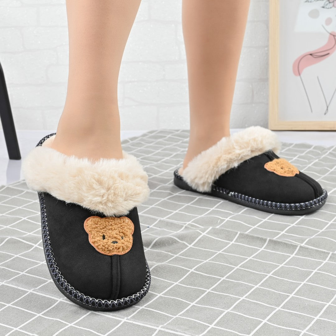 Papuci de casa Dama ,cu ursulet,Cu Imblaniti,PD1073,Negru