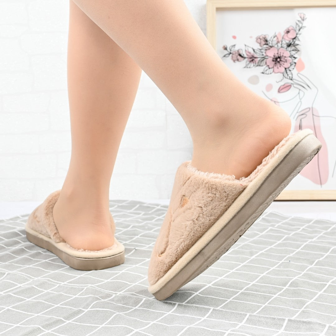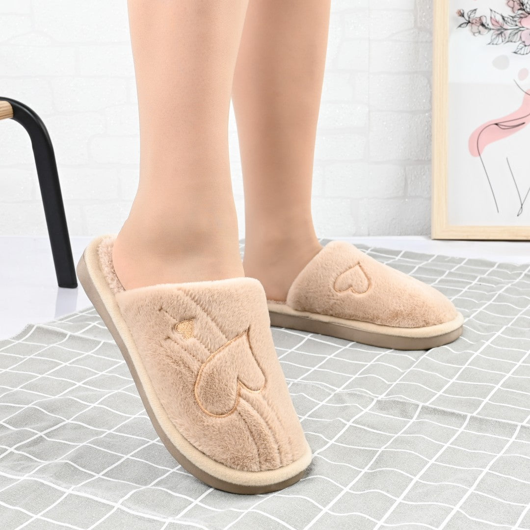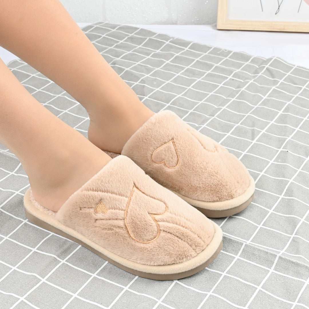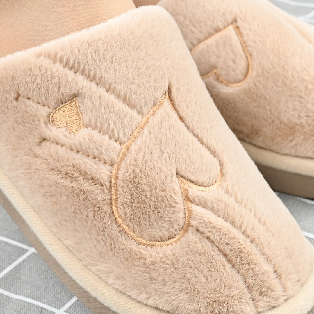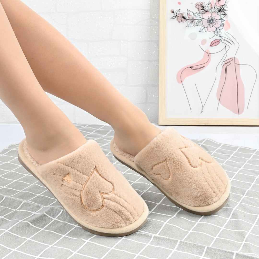 Papuci de casa Dama pufosi,Cu inimă,Cu Imblaniti,PD1071,Bej