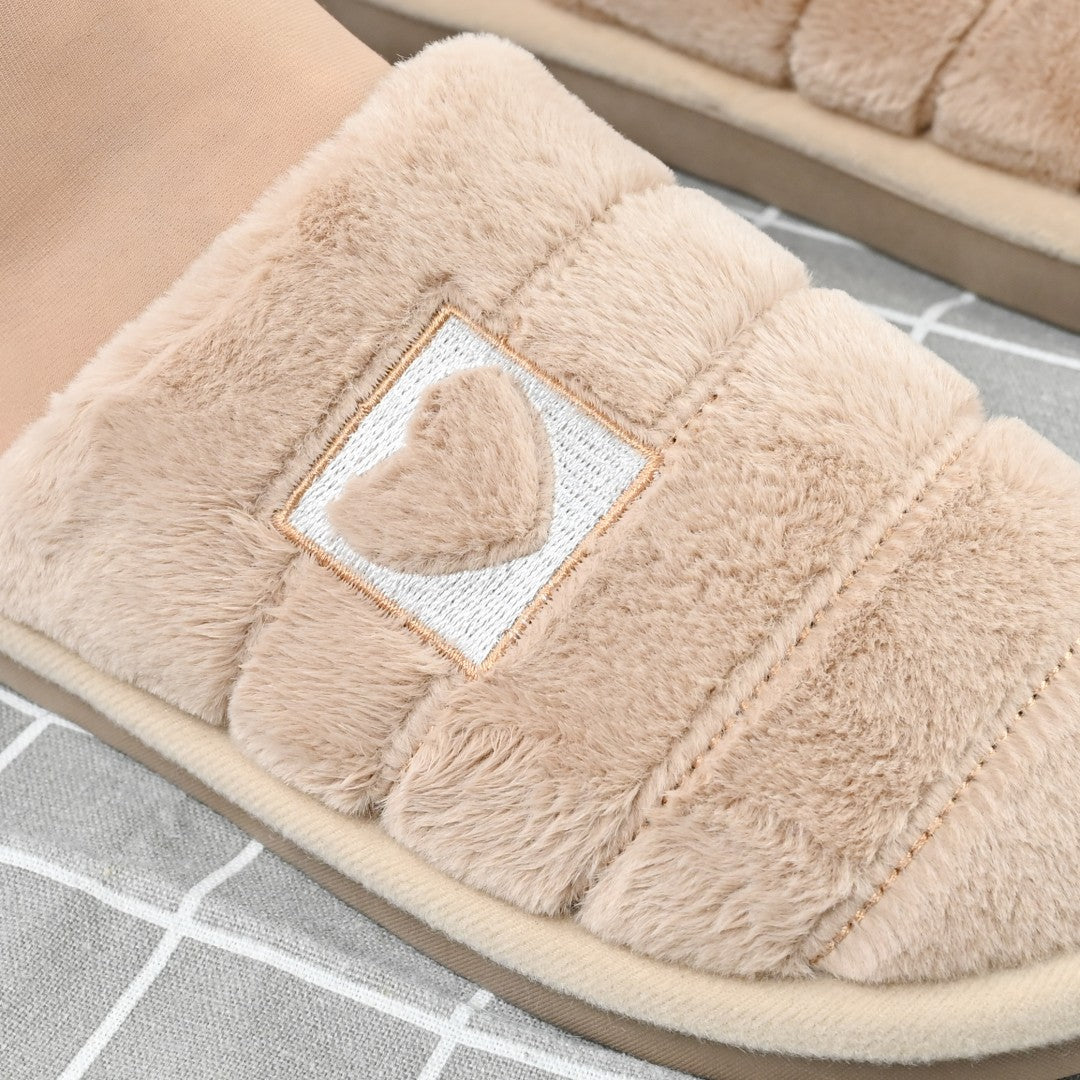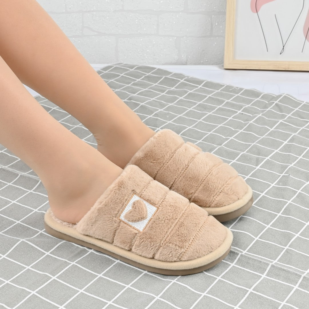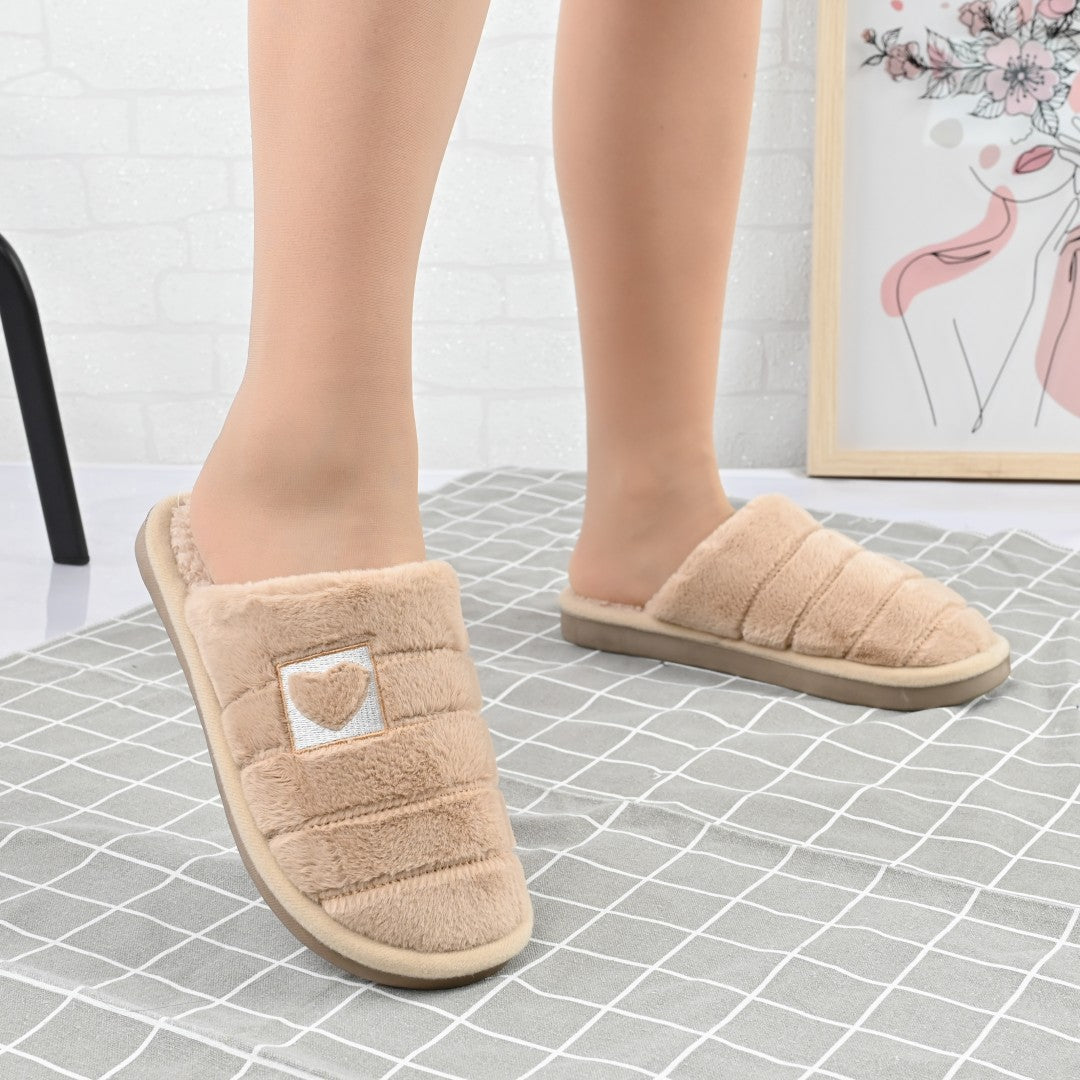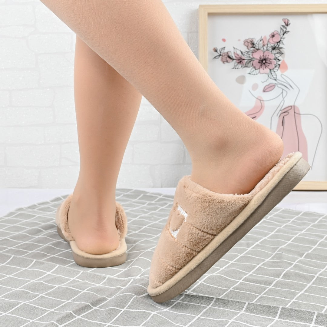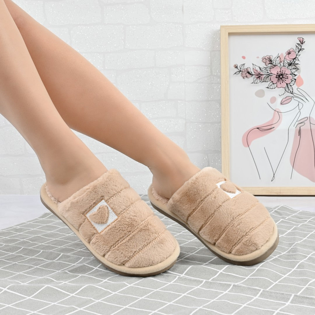 Papuci de casa Dama pufosi,Cu inimă,Cu Imblaniti,PD1072,Bej
