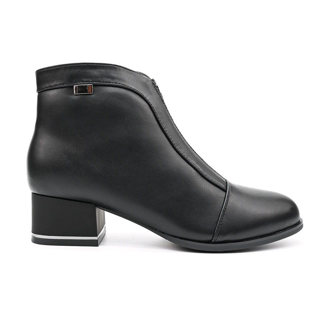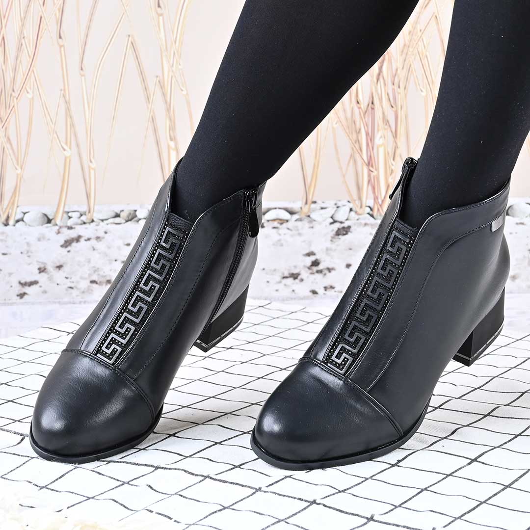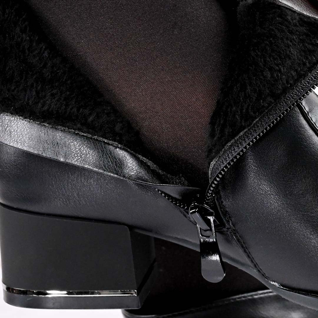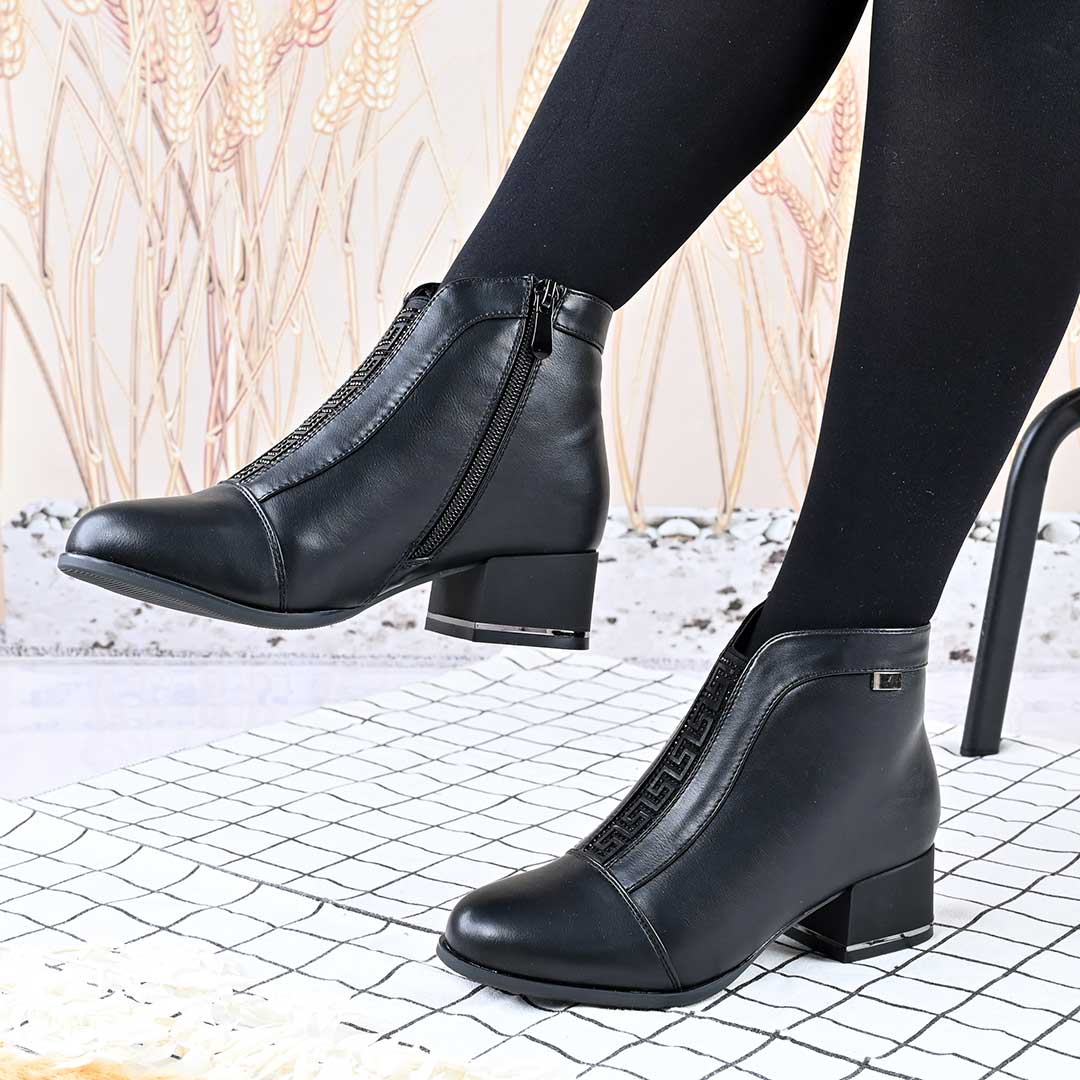 Botine de dama,Din piele ecologica, cu interior imblanit,BD1013,Negru