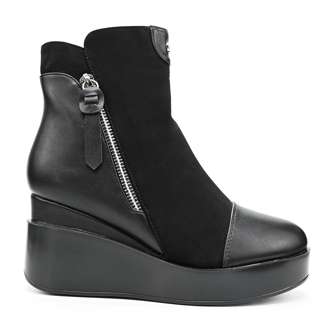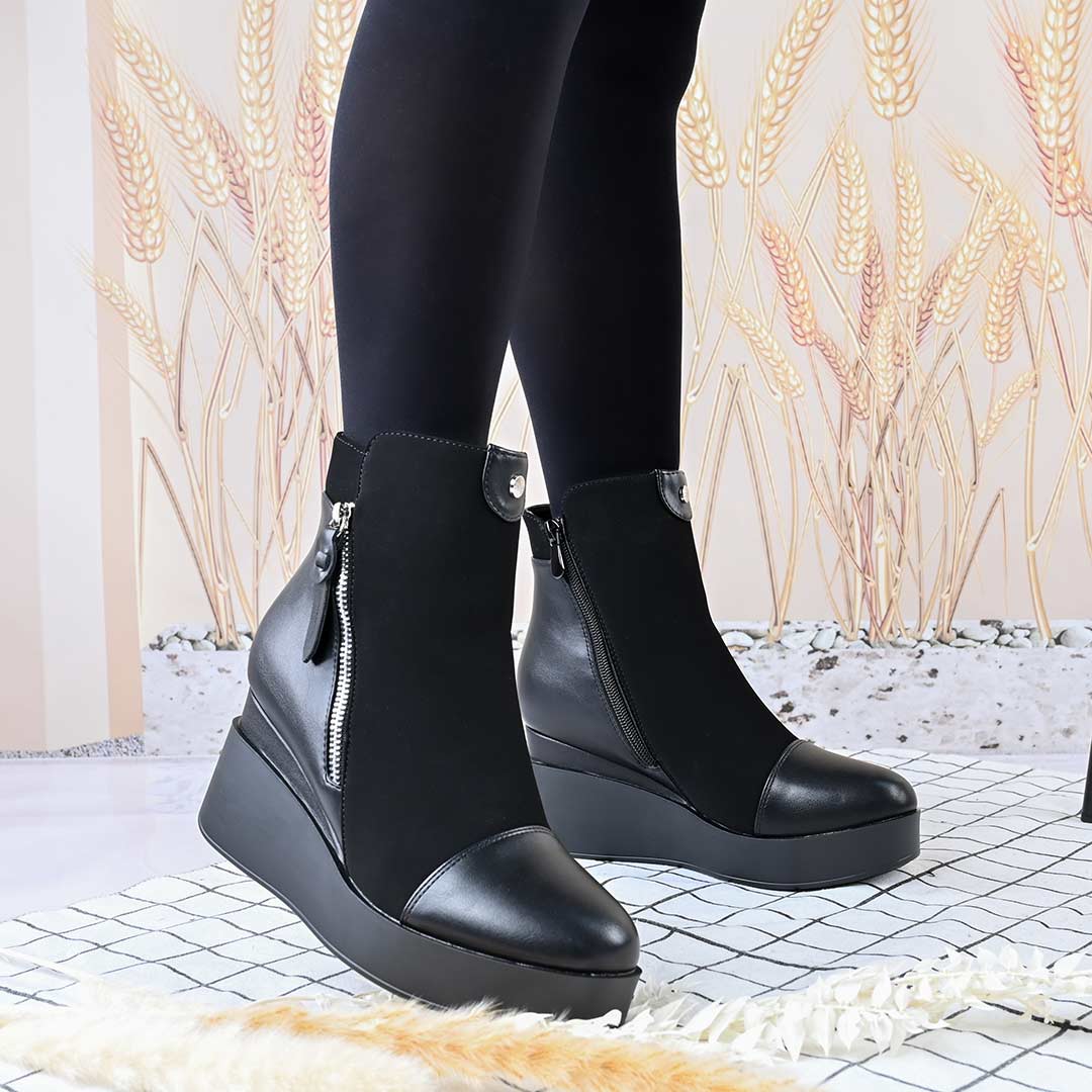 Botine de dama,Din piele ecologica Cu platforma,interior imblanit,BD1015,Negre