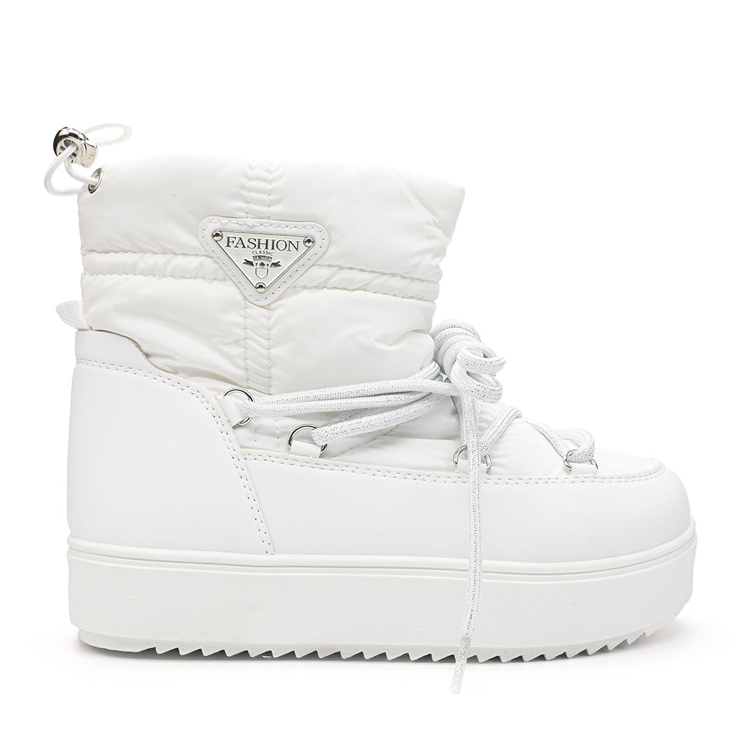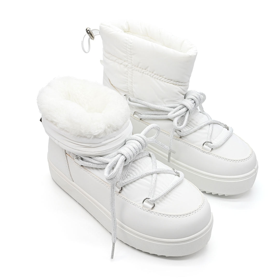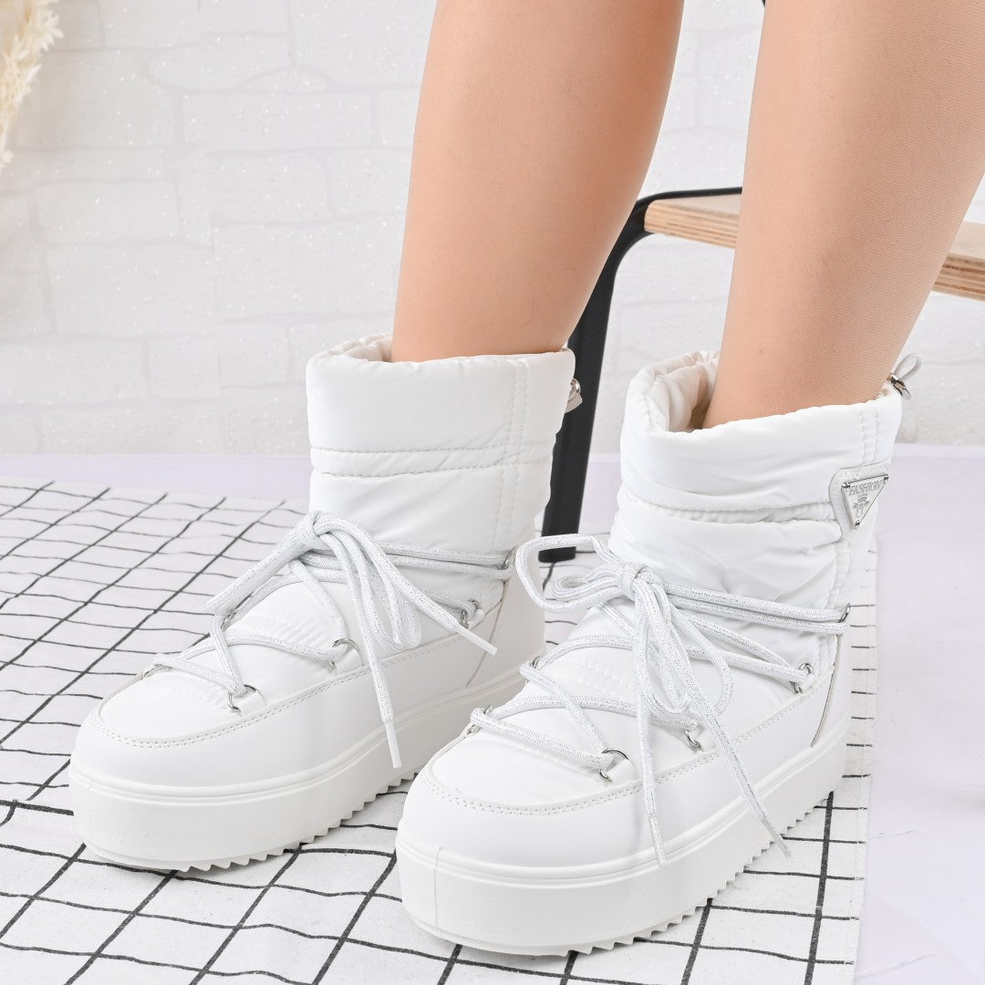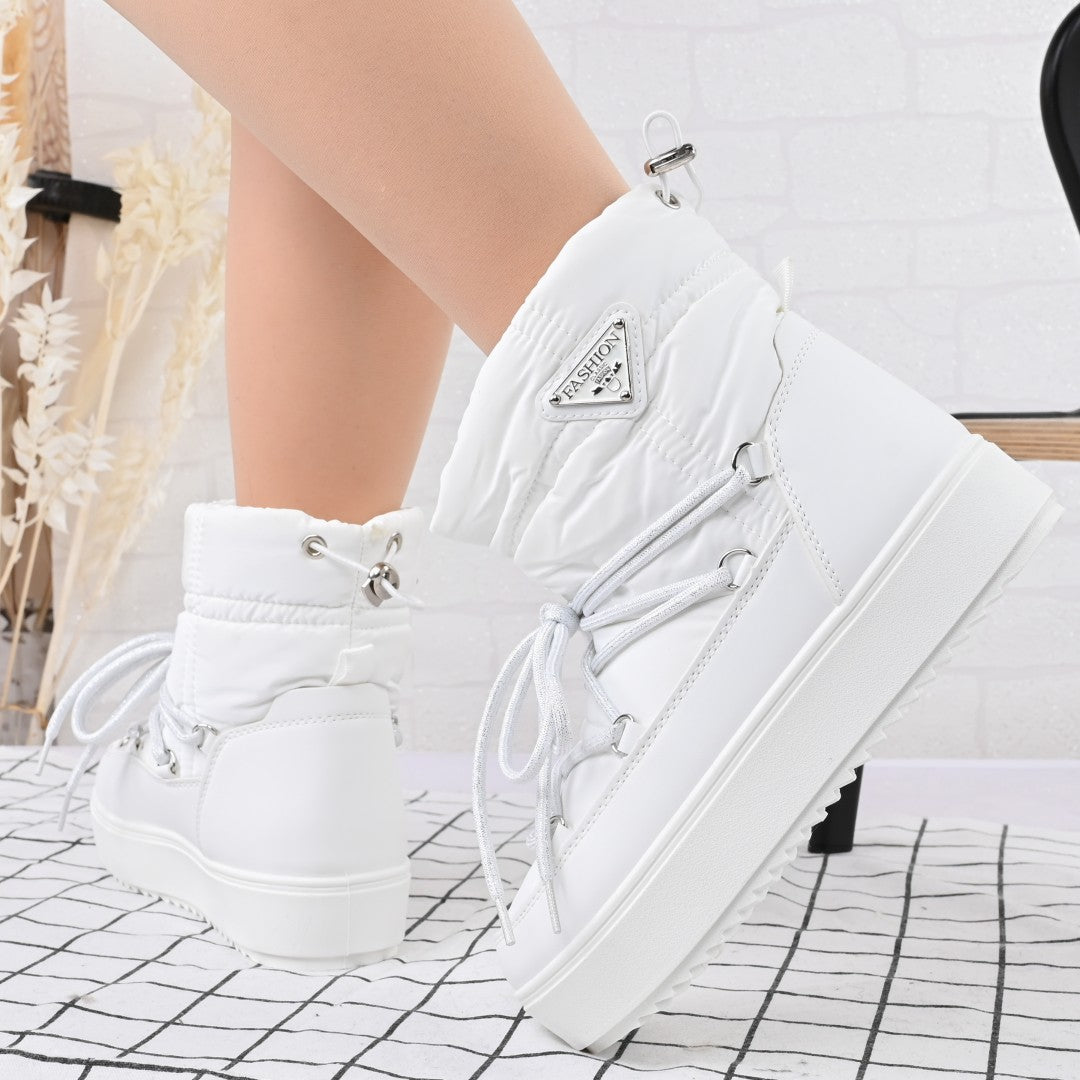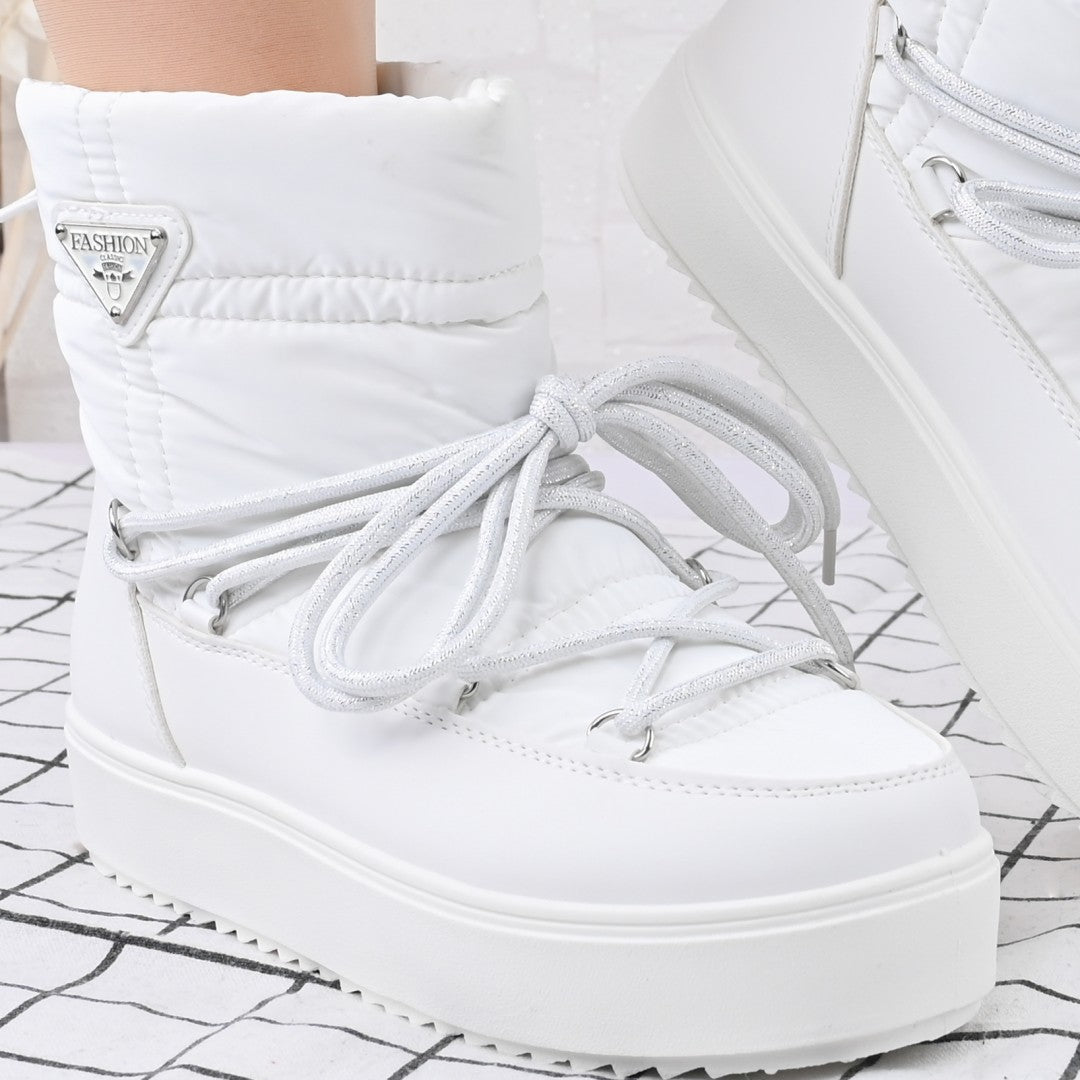 Cizmele scurte din material textil alb, cu interior imblanit, oferă confort și stil în sezonul toamnă-iarnă. Ușor de încălțat, cu...