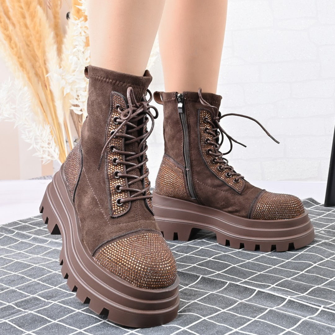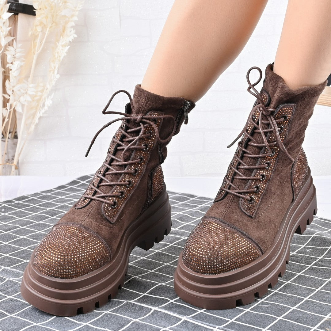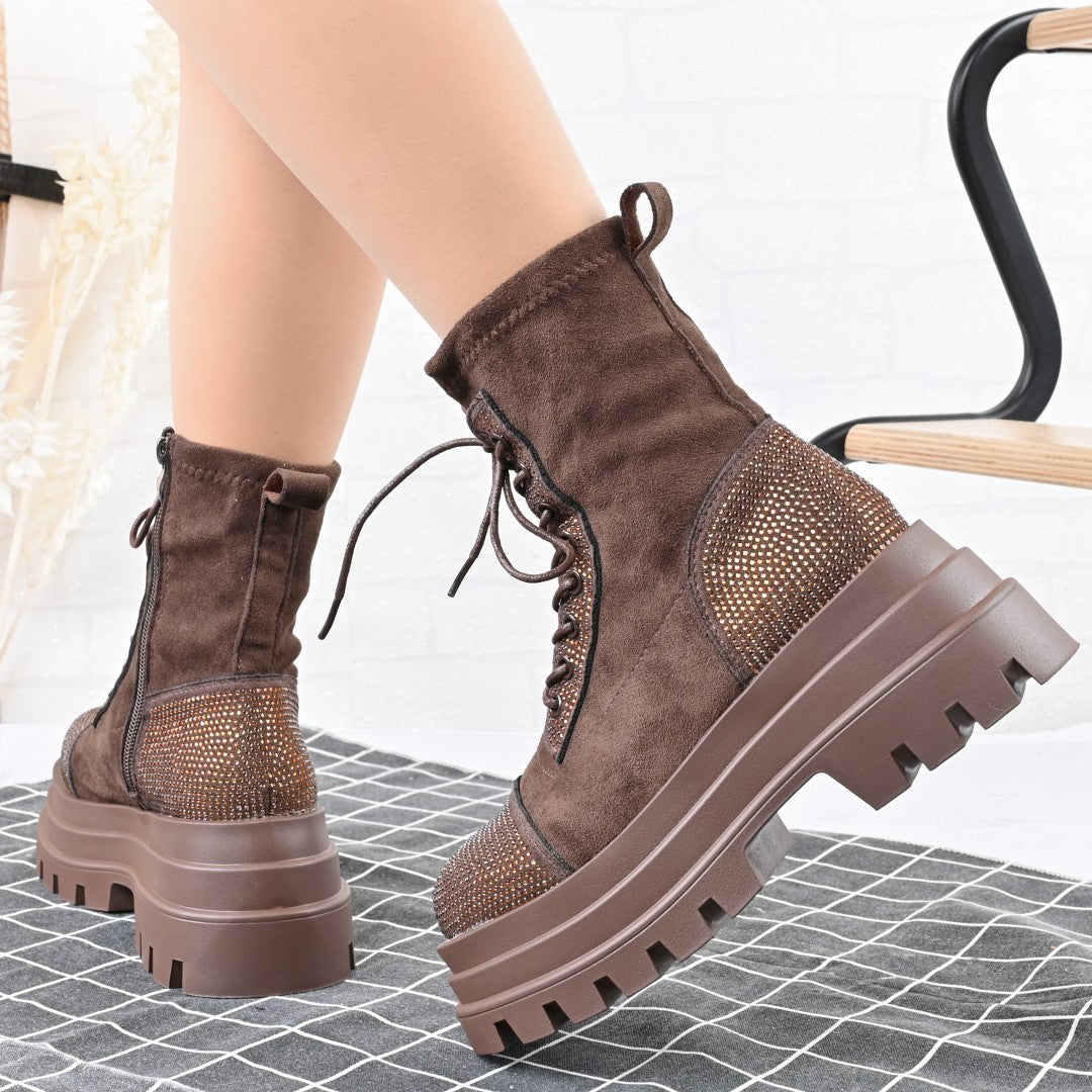 Ghete de dama,Din piele ecologica cu interior imblanit,GD1114,Maro