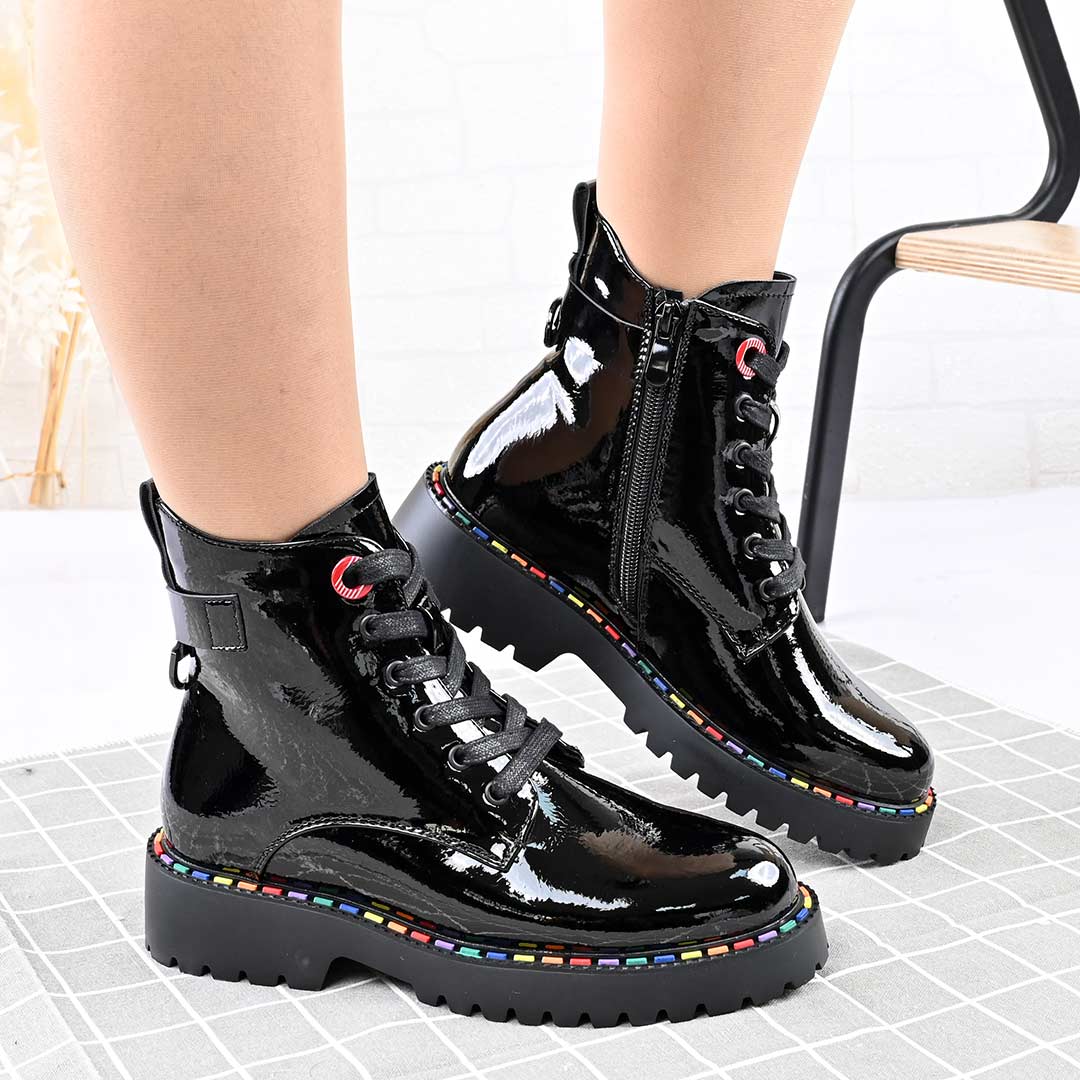 Cizme scurte din piele ecologică, cu interior imblănit, ideale pentru sezonul toamnă-iarnă. Design casual, fermoar practic, talpă joasă de 4...