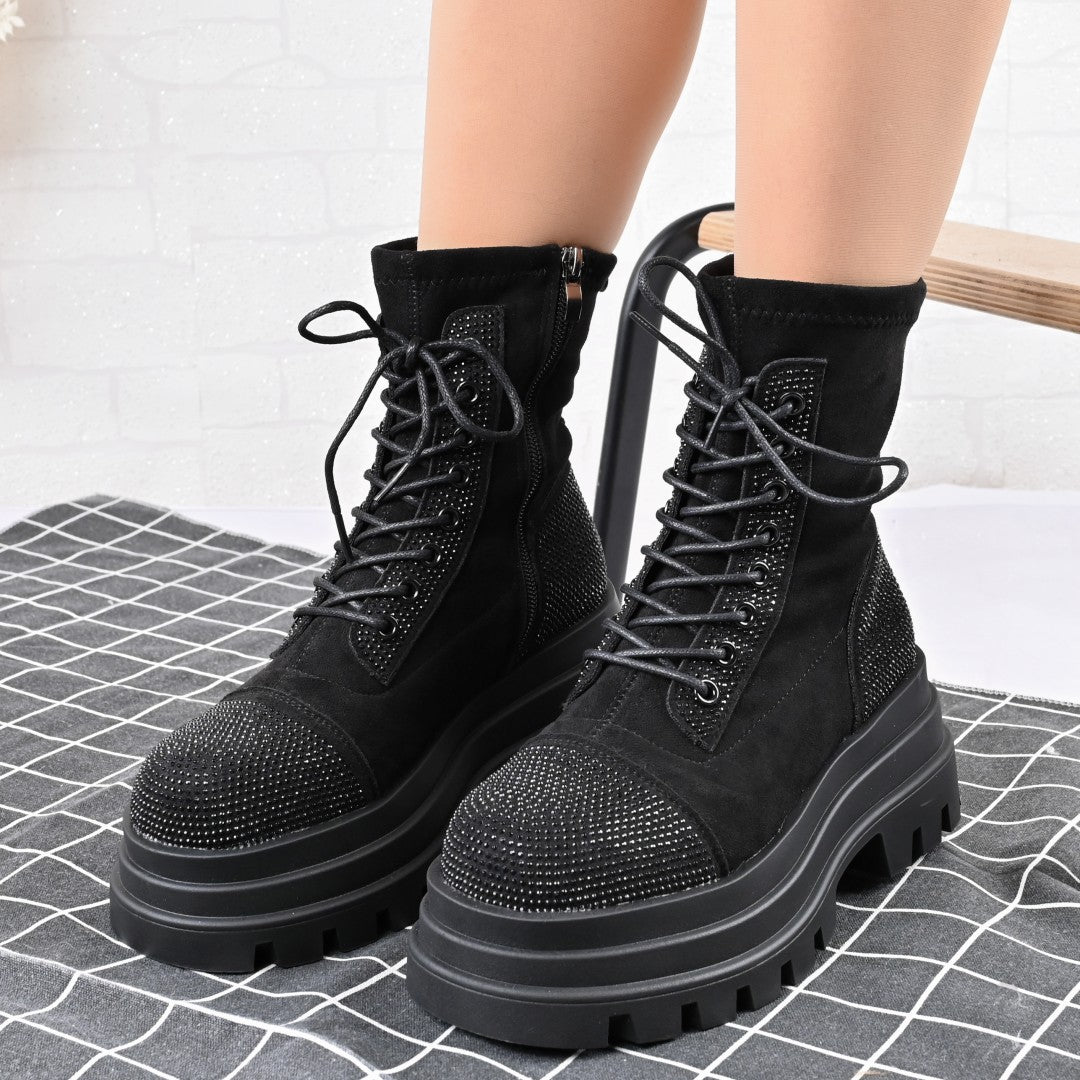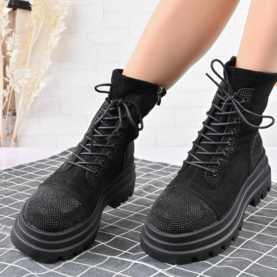 Ghete de dama,Din piele ecologica cu interior imblanit,GD1114,Negru