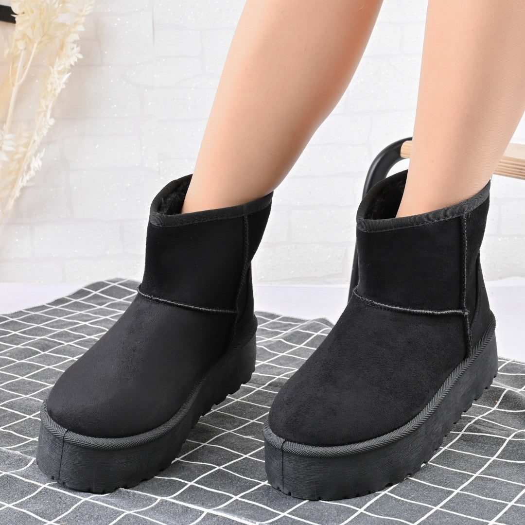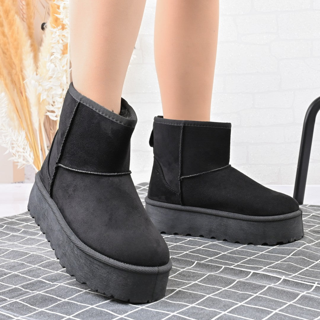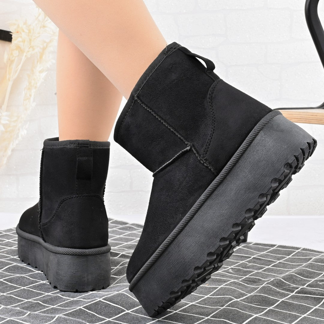 Cizmele de dama tip Ugg, din piele intoarsa neagra, imblanite, oferă confort și stil în sezonul rece. Cu fermoar și...