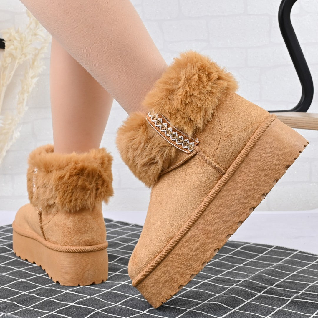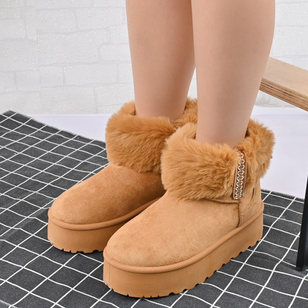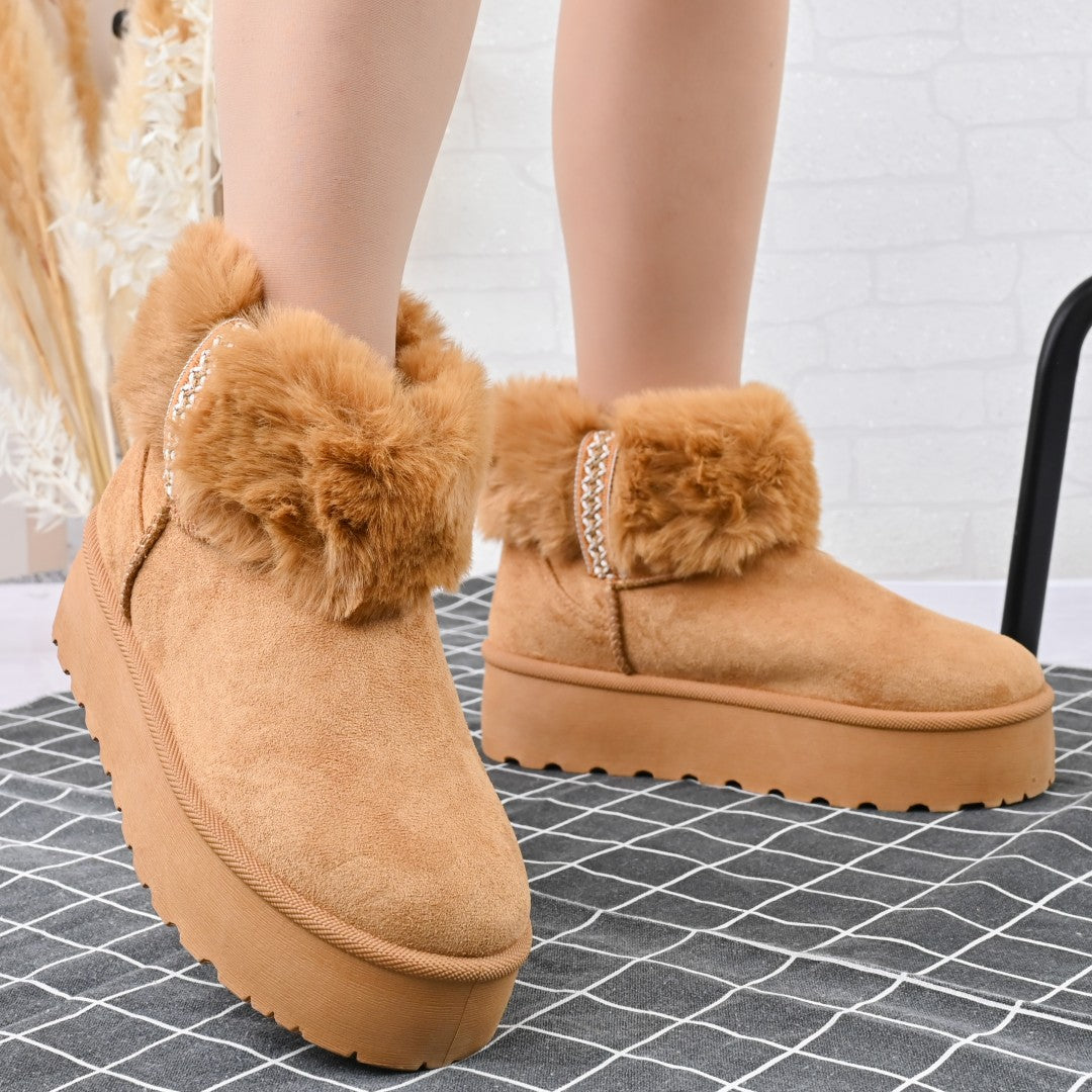 Cizme de dama,tip Ugg,Din Piele ecologica,imblanite,CD1040,Camel