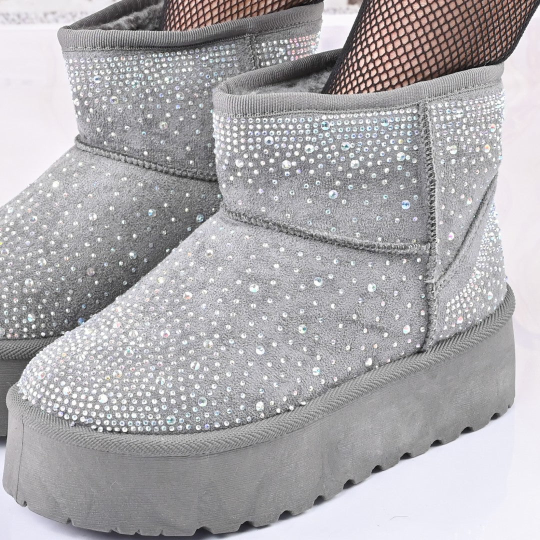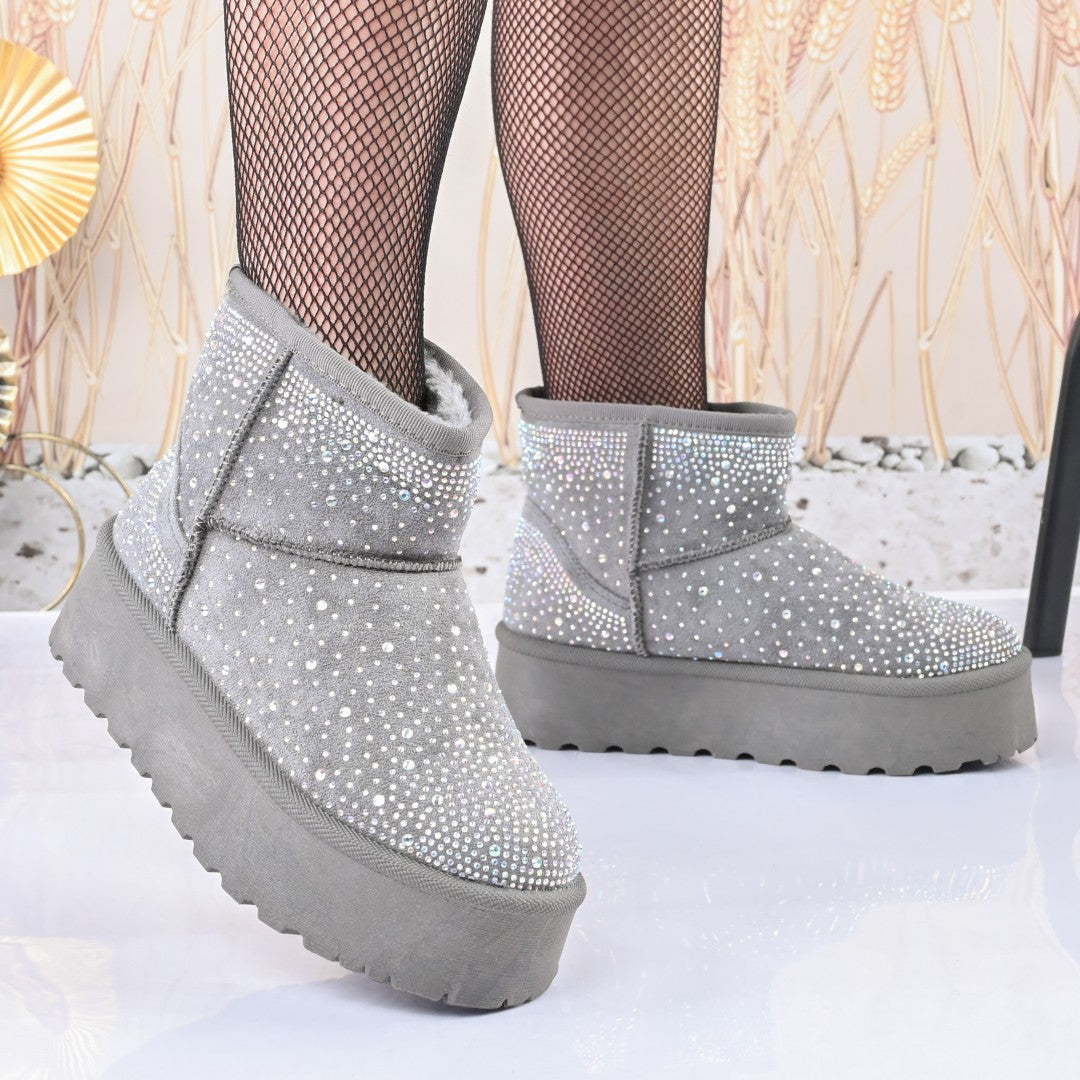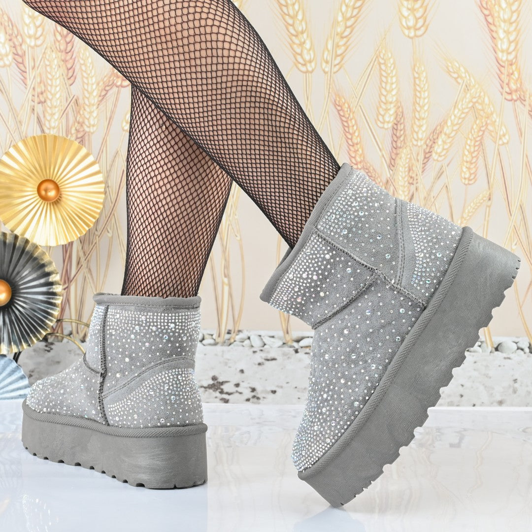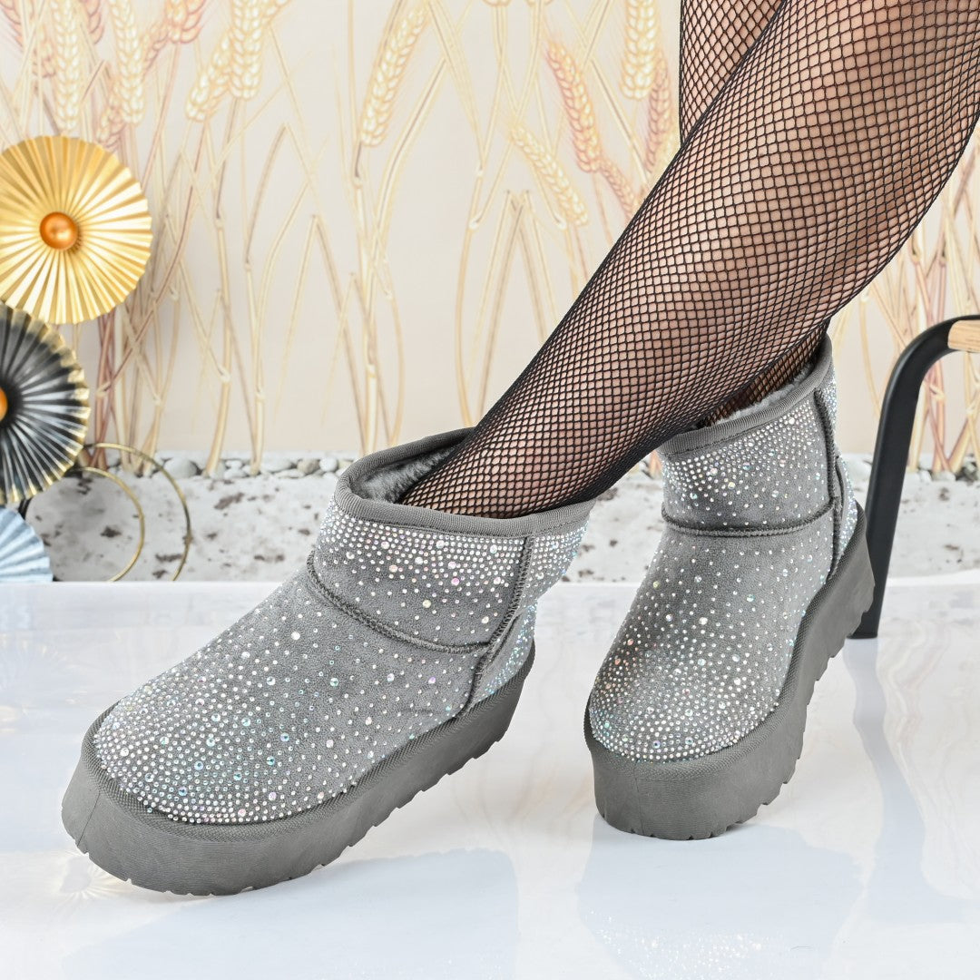 Cizme de dama,tip Ugg,Din piele ecologica intoarsa,imblanite,CD1051,Gri
